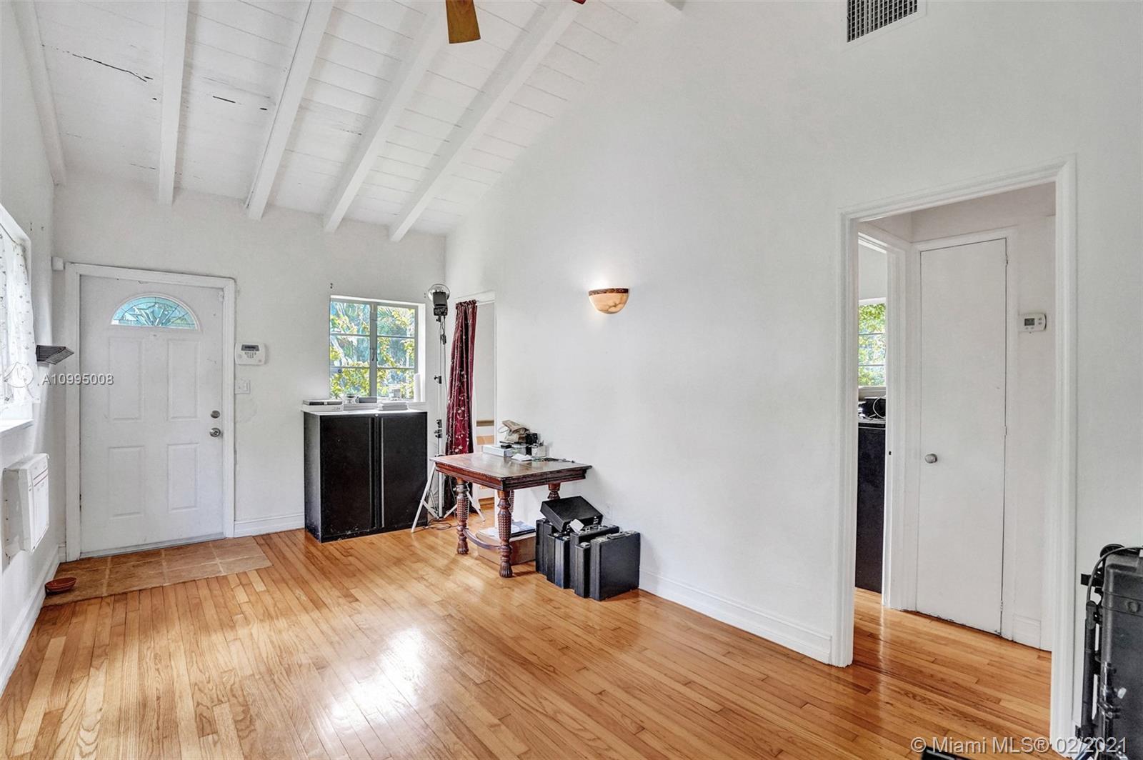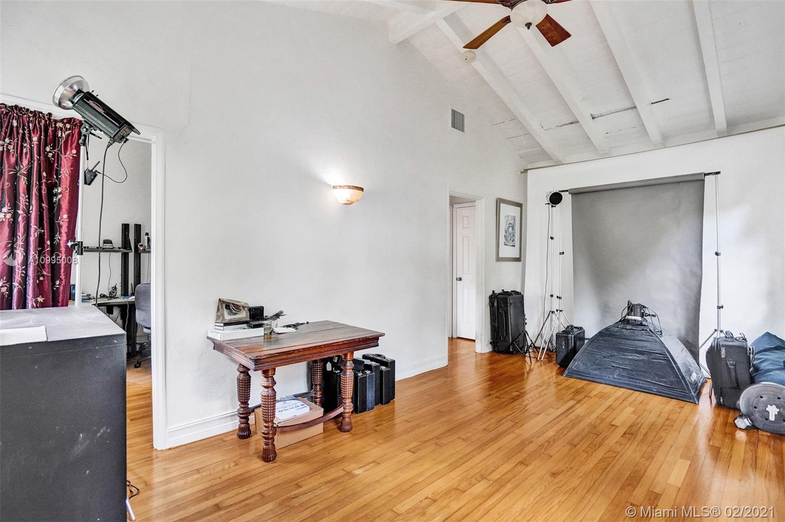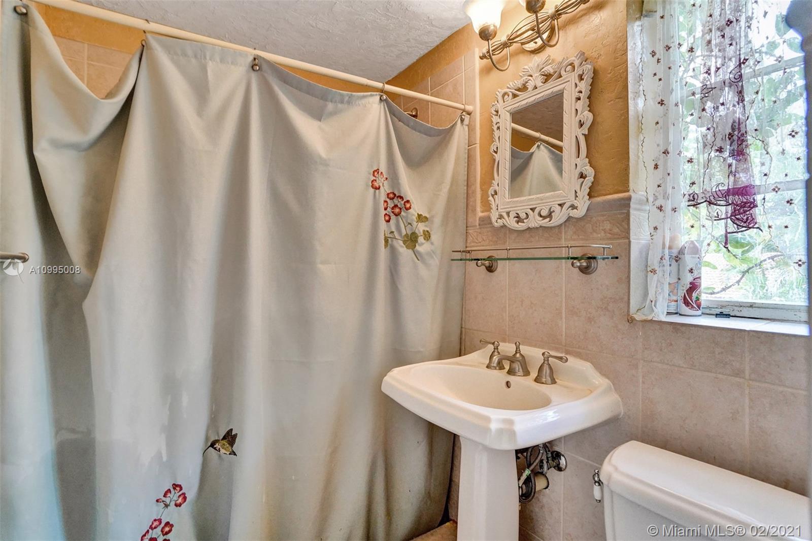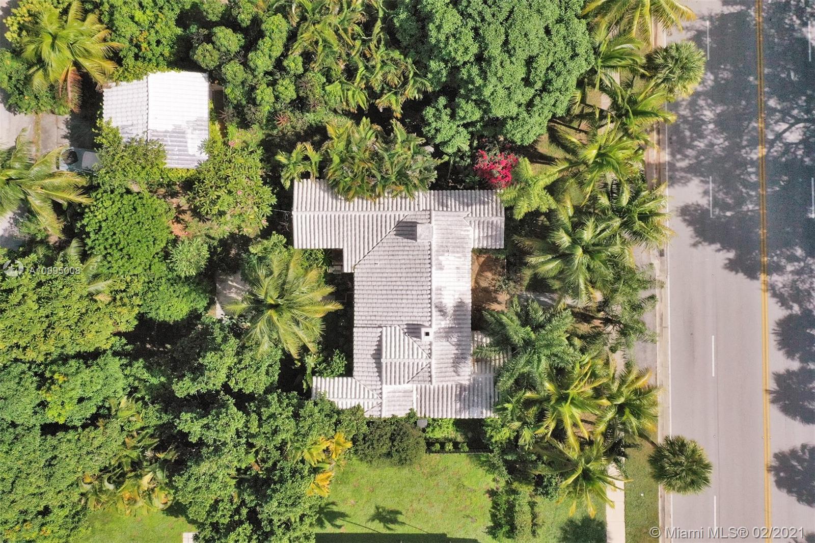 Extraordinary 1930's home with tons of beauty, sitting on an oversized lot of 14,300 sq ft. Located in the very desirable Miami Shores, this home features 3 bedrooms and 2 bathrooms in the main house, and a separate 1/1 living Guest House that is detached, and filled with charm. The main house offers original oak floors, spacious floor plan with a large family room and sun room, volume ceilings, wood burning fireplace, and much more. Very ideal detached guest house, with a 2 car garage on the first floor and a very comfortable 1/1 on the second floor, with an office. Guest house is currently vacant. Fenced yard with an abundance of trees, flowers and butterfly garden. Fruit trees include:avocado, mango, lychee, papaya, mamey and banana trees. Update plumbing and Electrical.