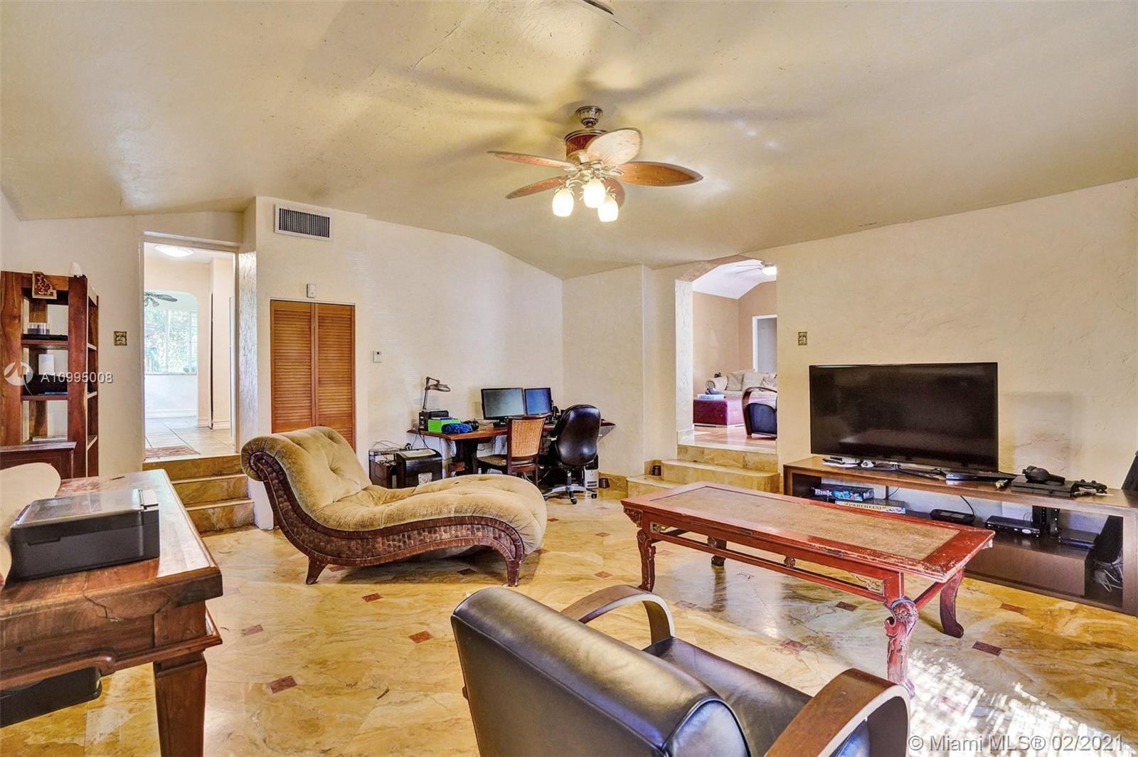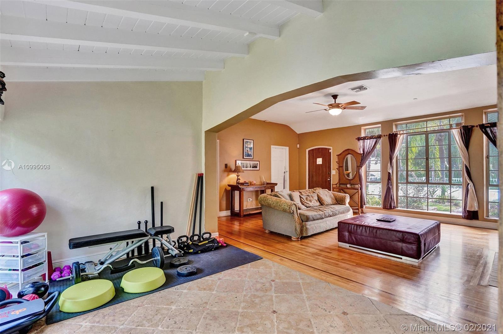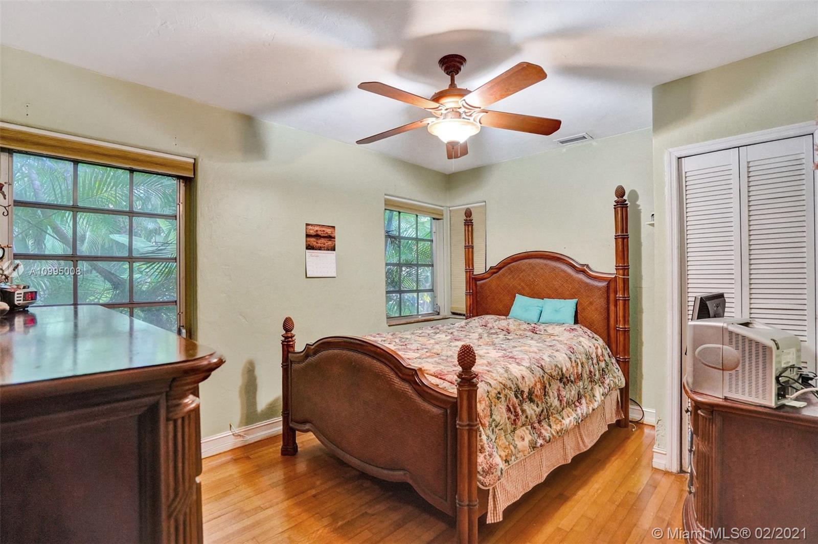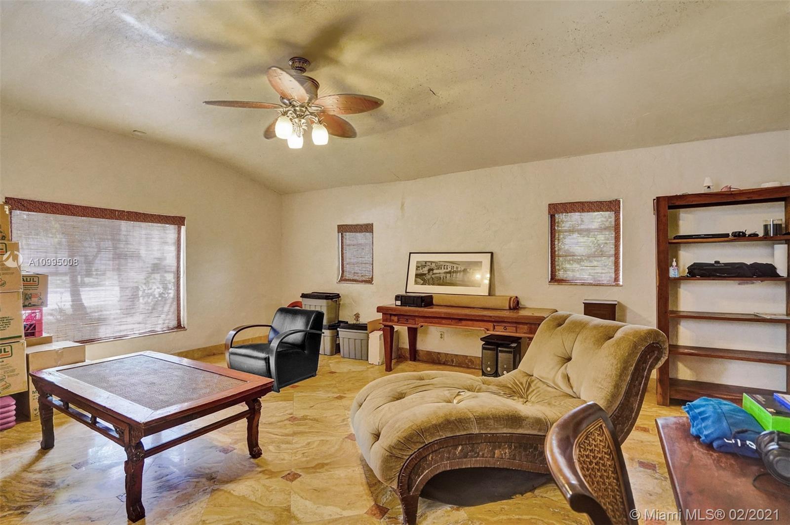 Extraordinary 1930's home with tons of beauty, sitting on an oversized lot of 14,300 sq ft. Located in the very desirable Miami Shores, this home features 3 bedrooms and 2 bathrooms in the main house, and a separate 1/1 living Guest House that is detached, and filled with charm. The main house offers original oak floors, spacious floor plan with a large family room and sun room, volume ceilings, wood burning fireplace, and much more. Very ideal detached guest house, with a 2 car garage on the first floor and a very comfortable 1/1 on the second floor, with an office. Guest house is currently vacant. Fenced yard with an abundance of trees, flowers and butterfly garden. Fruit trees include:avocado, mango, lychee, papaya, mamey and banana trees. Update plumbing and Electrical.