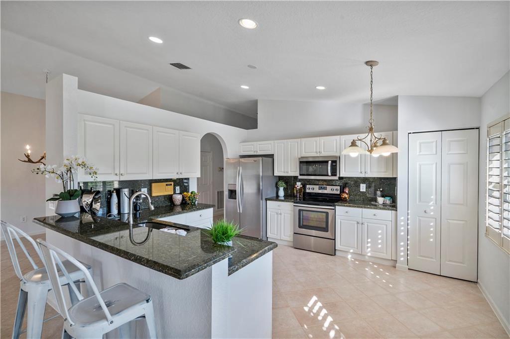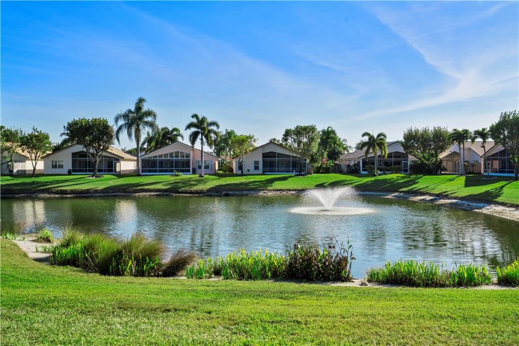 Stunning waterfront views from this unique home located on a private end lot in the gated community of Crescent Lakes in Boca Raton. Light, bright, open floor plan, freshly painted, split bedrooms, Plantation shutters & enclosed Florida room/patio w/ windows that open to enjoy the fresh breeze off the water. Kitchen features granite, stainless steel appliances & large snack bar. Vaulted ceilings with knockdown, accordion hurricane shutters, tile & new laminate floors, inside laundry room, wired for security system & generator switch. Master suite with dual sinks, roman tub, seamless glass shower & his/her walk-in closets. HOA inc. pool, lawn, irrigation, cable w/ HBO, gated entry, gym & tennis. A Schools & great location.