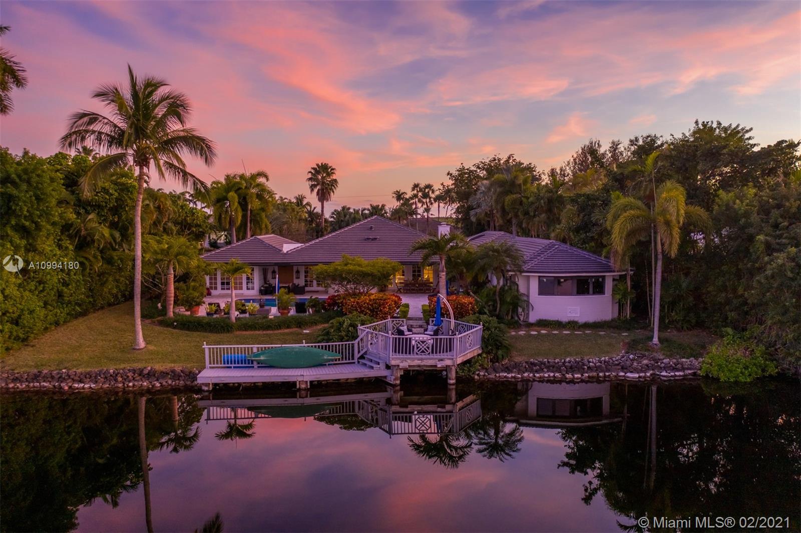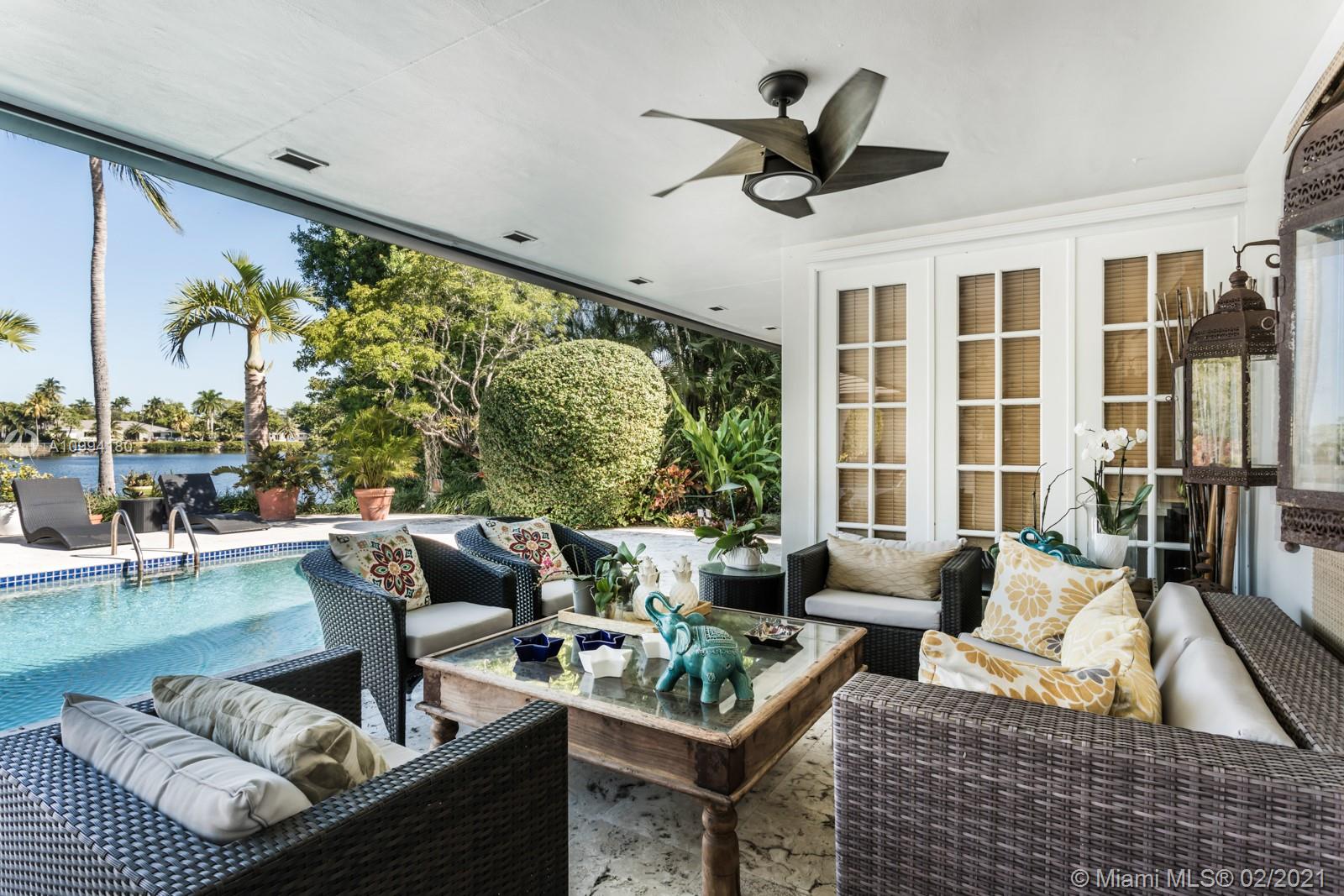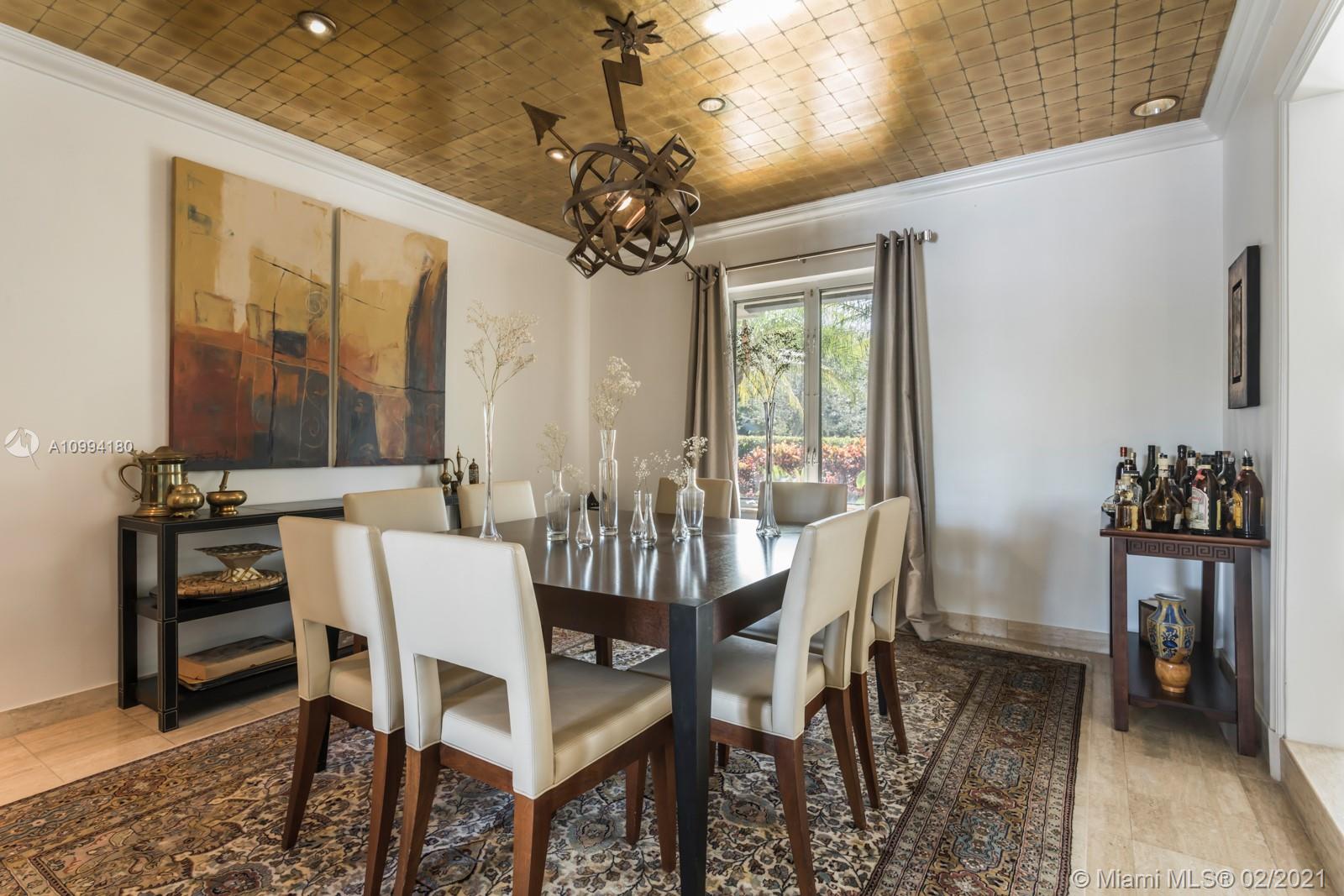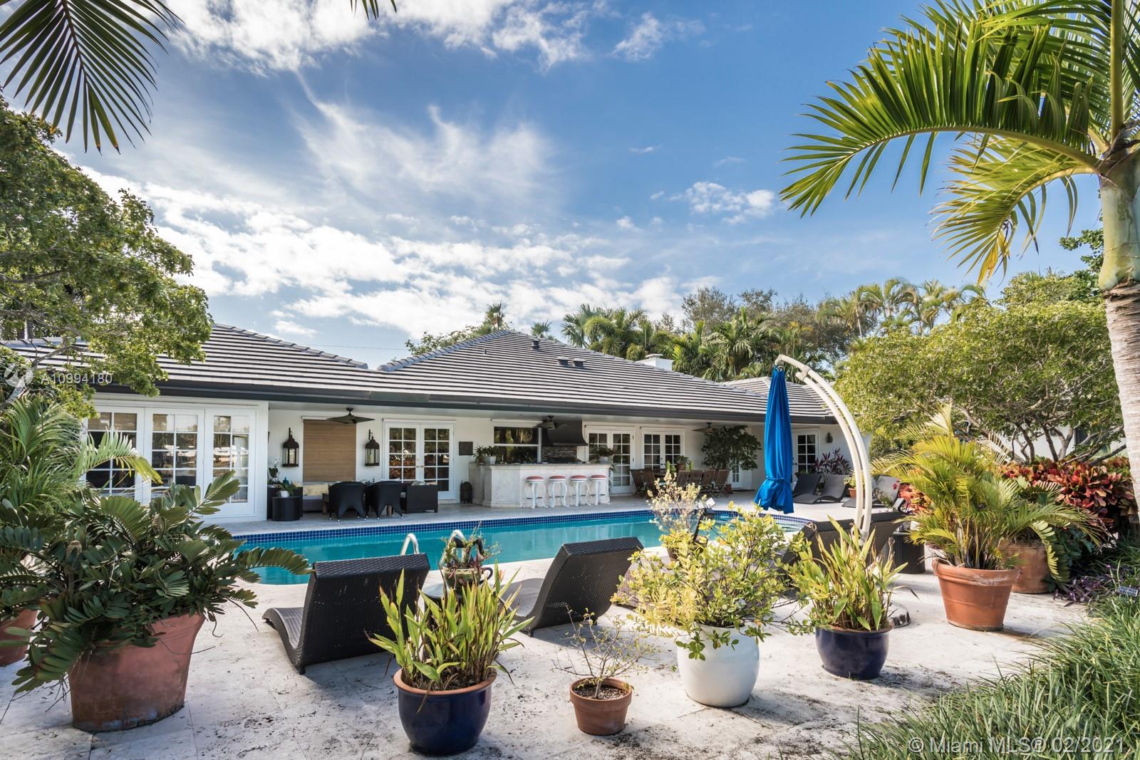 Beautiful home in the peaceful and scenic Hammock Oaks guard-gated Coral Gables community. This 5,136 Sq. Ft. residence, with a casual yet elegant style, has 4 bedrooms and 3.5 bathrooms, living room with fireplace, formal dining room, chef’s kitchen with breakfast area, billiard room, and a spacious main suite with a luxurious bathroom. The spectacular patio, complete with an alfresco dining area, summer kitchen, bar and pool, makes the home ideal for relaxing and entertaining. The residence is surrounded by lush, mature landscaping, and the French windows and pocket doors bring in tranquil and beautiful views. Conveniently located only minutes away from schools, shopping, dining and entertainment.