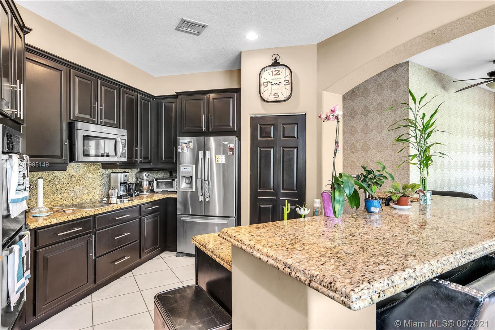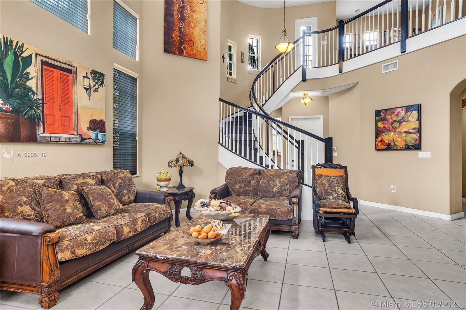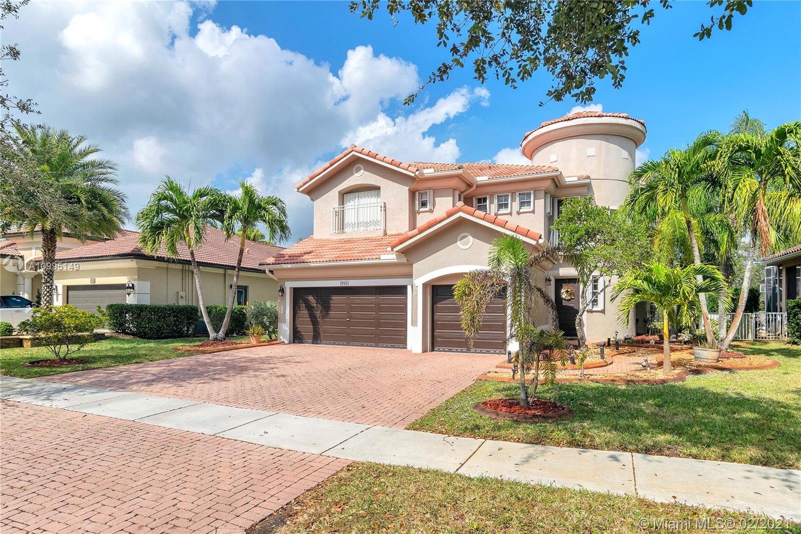 Stunning home@Sunset Lakes exclusive community to the West of Miramar Parkway. Over 12,674 sq ft lot, garden view. Your dream home is located just before a cul de sac, with almost 3,000 sq ft under a/c, 4 beds 3.5 baths, vaulted high ceilings, spiral staircase, ceramic & wood floors, accordion shutters, security system & lighting, 2 master bedrooms (1st floor with private entrance) original master on the 2nd-floor, kitchen with granite countertops, eat-in area, stainless steel appliances, pool + garden. The community offers an awesome clubhouse 18600 Sunrise Ave. Includes room for events, tennis, basketball, gym, pool, playground. $219.00 p/m. No HOA pre-approval needed. By appointment-only/Listing Agent to open door. water heater 2109/AC 2019-2020.