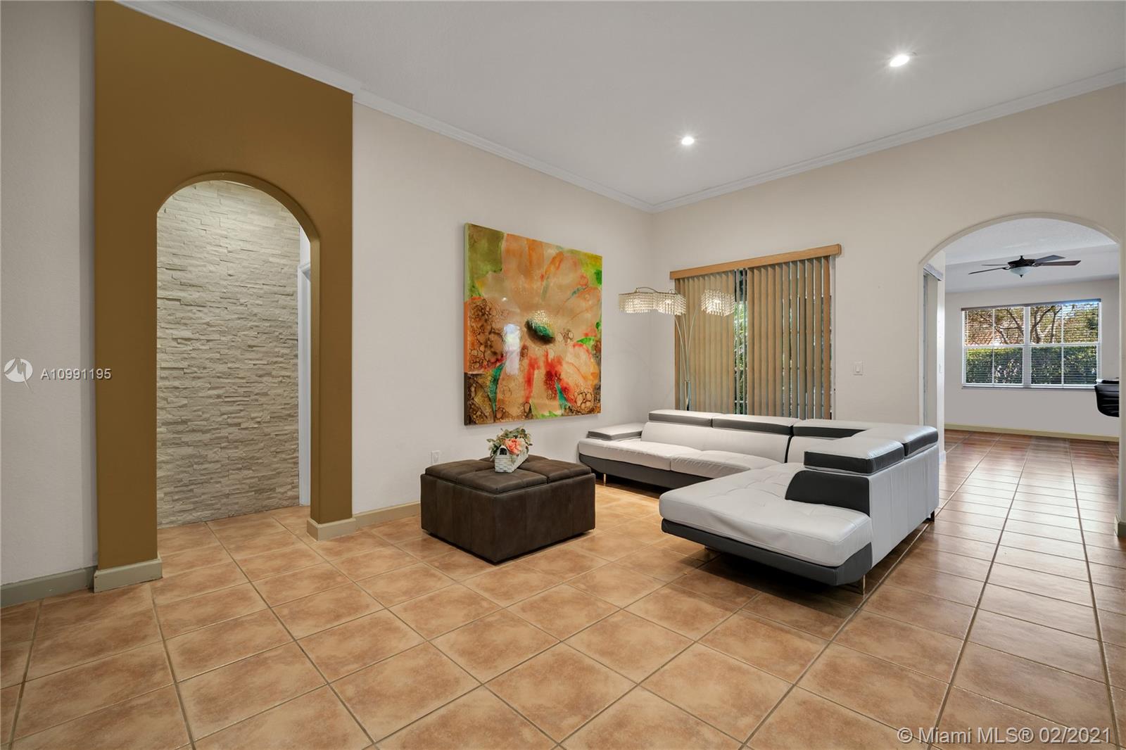 Beautiful 3/2.5 Home on Cul-de-sac. Formal Dining. Master Bathroom Shower Tub with double faucet. Bedroom w/French Door. Walk-in Closet. Open Kitchen with stainless steel appliances, mini-bar w/wine cooler & granite countertops, backsplash, kitchen island. Totally remodeled bathroom w/frameless glass showers enclosure & master bath w/jacuzzi. Crown moldings, elegant light fixtures, tile flooring, surround sound, LED hi-hats thru-out. Garage converted, used as 4th bed, that unit A/C is 2018. One in the main house & another one in the garage. Fenced backyard, stylish patio w/custom pergola & jacuzzi for 6 people, Keystone tile on the terrace, stone veneer on columns/walls & professional landscaping, perfect for entertaining. Great location, close to Shopping Plazas, Restaurants, Highways.