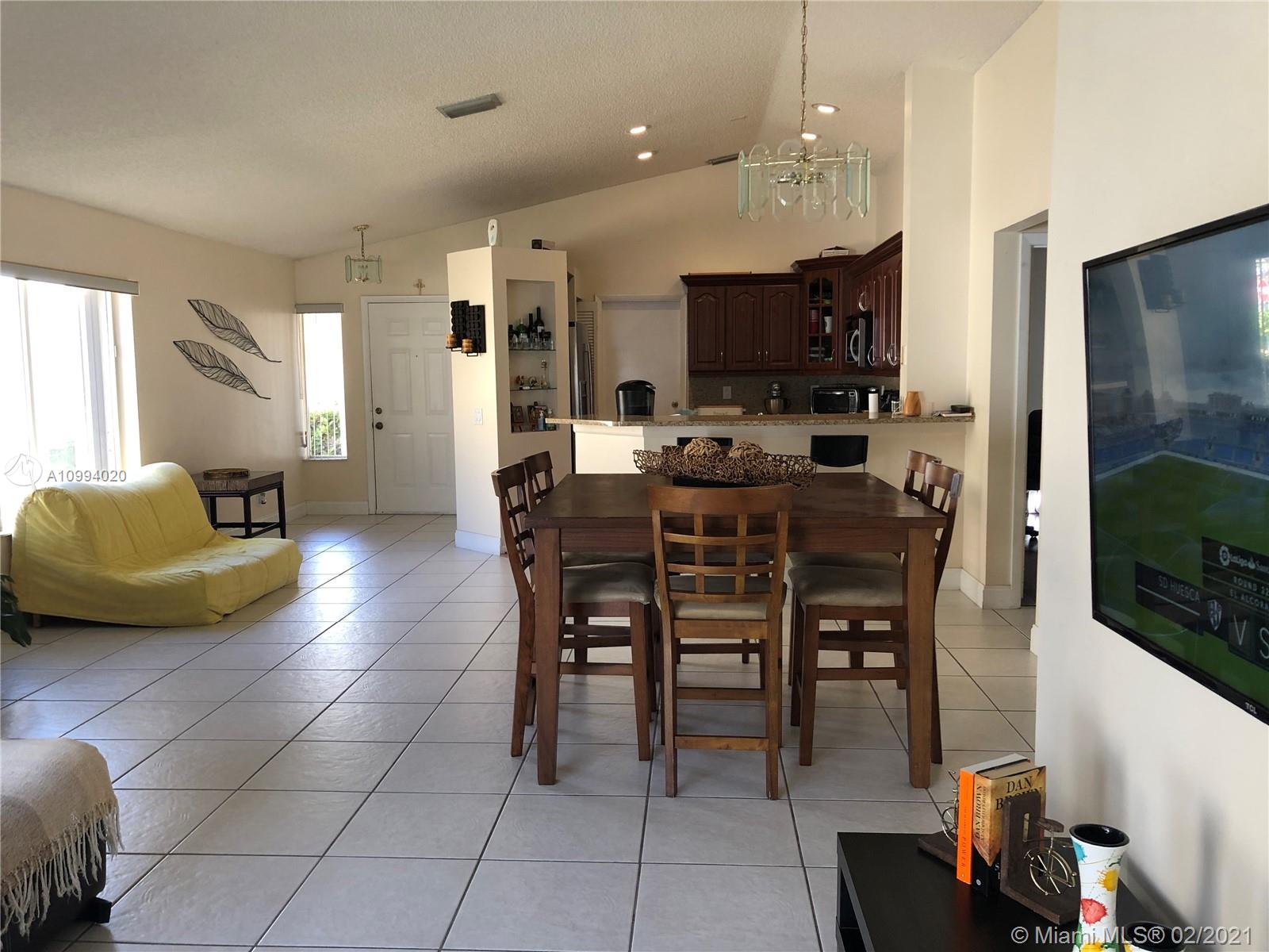 Great single family home in the gated community of San Remo ... just minutes from access to I-75 and I-595. Updated kitchen has newer cabinets and appliance and opens to living area. Open, roomy floor plan with vaulted ceilings. Ceramic tile in living areas with newer wood laminate in bedrooms. Both bathrooms have been renovated. Full size washer/dryer. A/C and water heater only a year old. New accordion shutters all around. 2 car garage. EXCELLENT SCHOOLS. Family friendly neighborhood with park and community pool right across the street. Equal housing opportunity.