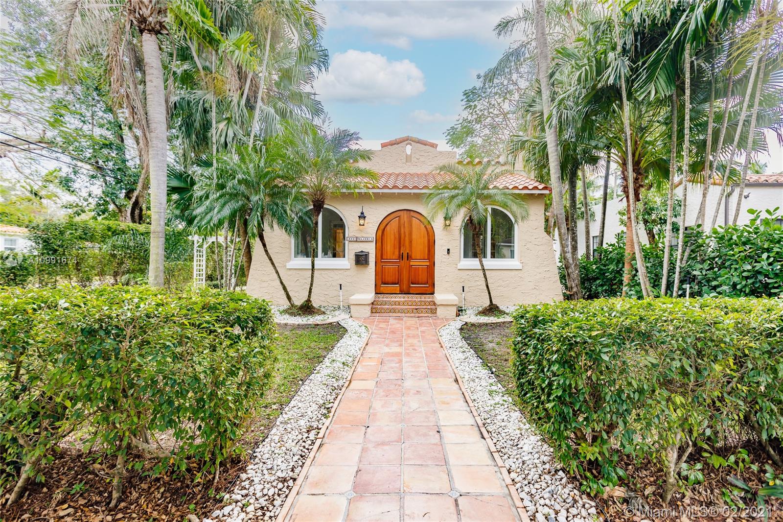 Beautifully renovated Old Spanish Home near Miracle Mile & Granada Golf Course. Impeccably remodeled to include a new roof, impact windows&doors, new AC, tank-less water heater and newly refinished hardwood floors. Owner has maintained historical details that blend in with the modern upgrades to keep the nostalgia of the era. A spacious Foyer Entry leads into the living room with a wood burning Fireplace and a formal dining room. The Kitchen is fully renovated with beautiful wood cabinets and New Appliances to include a 155 bottle Wine Cooler and a large granite top Counter area which is ideal for family dining or entertaining guests. Spacious Kitchen with plenty of storage space leads out to a covered patio area. Detached garage is suitable for the in-laws with a private full bath.