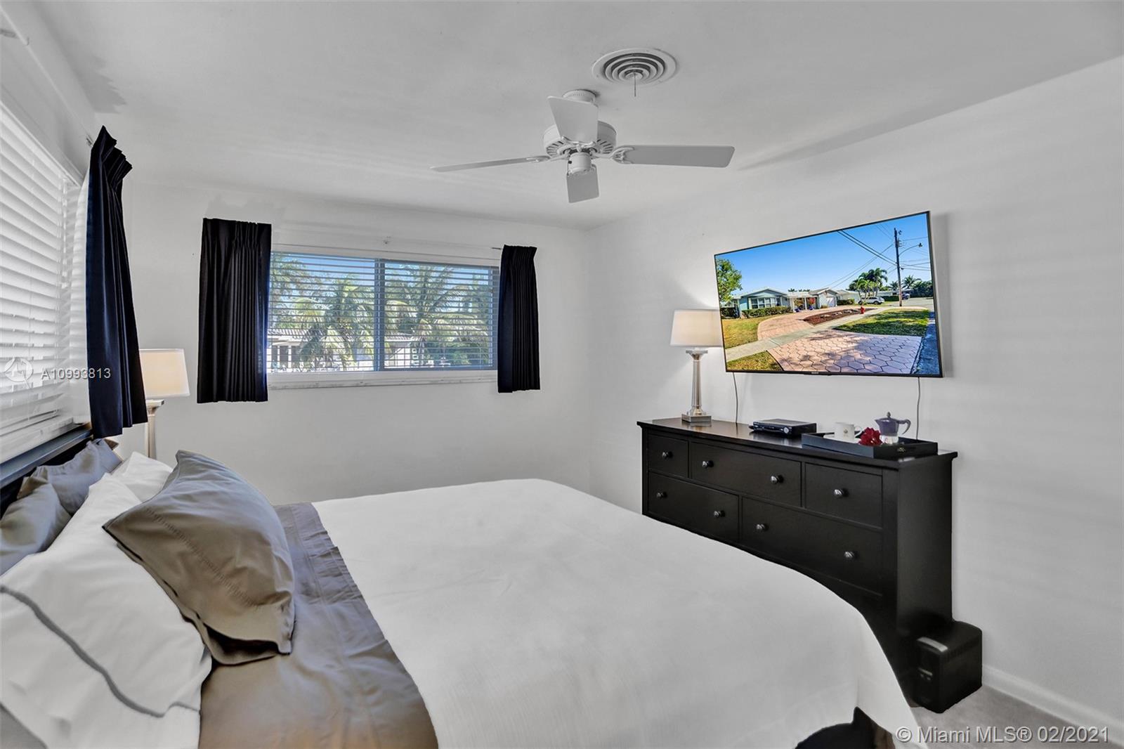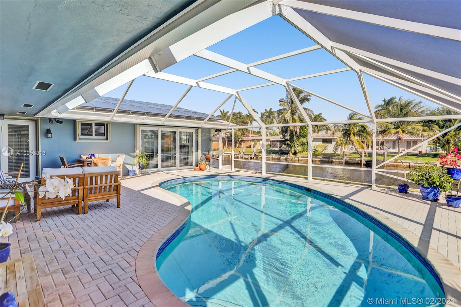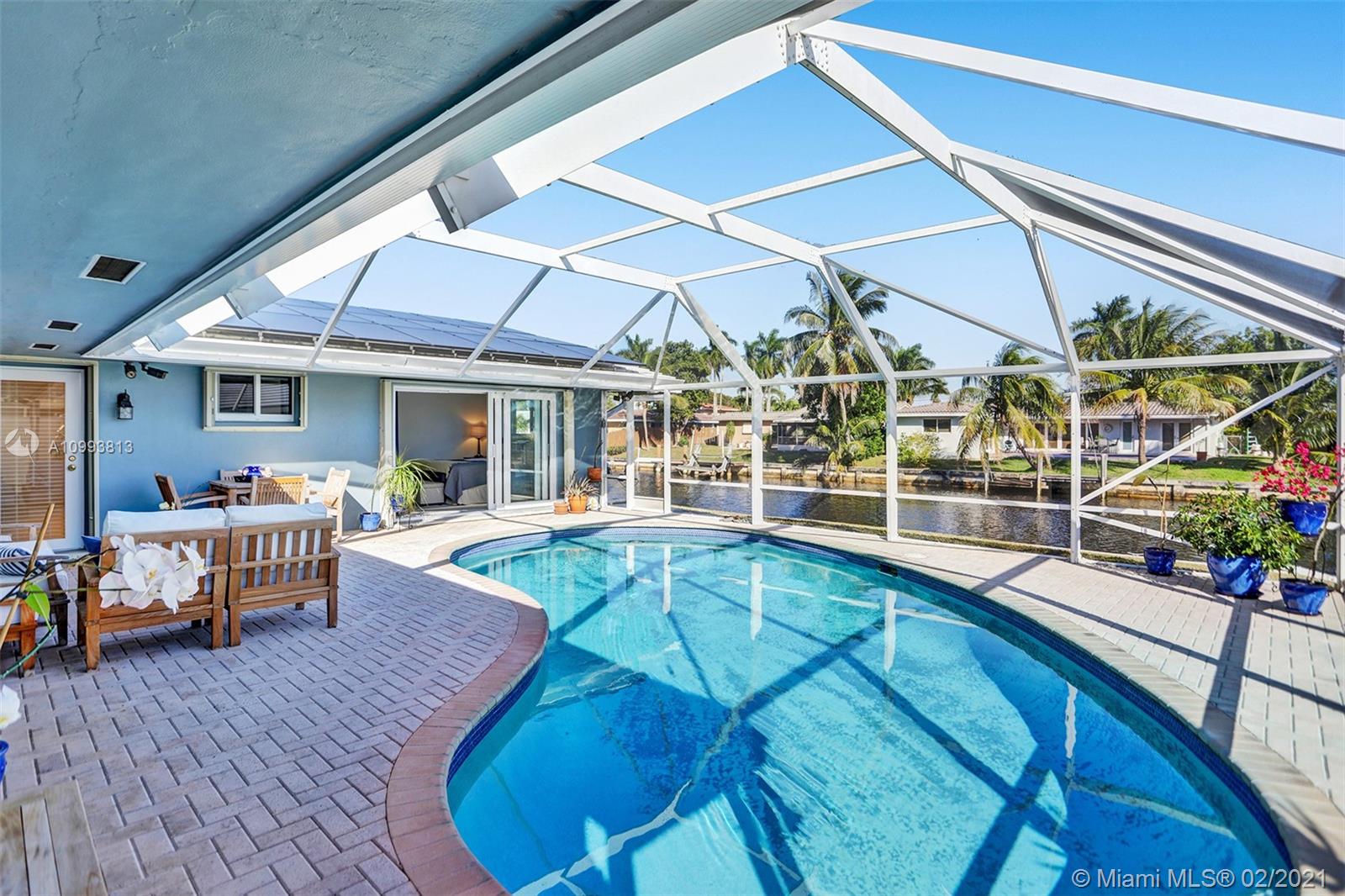 Captivating & spacious waterfront, pool home in highly desired Coral Ridge Isles. Ocean access in minutes, 4 fixed bridges. Boasting 75ft of waterfront this impeccable cul' de sac home has it all. Bright, spacious & open living concept floor plan, 2 large bedrooms, 2 baths & bonus (office/den space), inviting crystal clear pool & waterfront views from almost every room in the house & 1 car attached garage. All Miami Dade rated impact windows & doors, accordion shutters for additional protection, environmentally conscious EcoSmarte Ozone pool system (C02 +UV Sterilizer). Tech upgrade to whole house surge suppressor system, ultra low loss coax + CAT6 in bedrooms/living room, 16 channel security system w/ DVR, 14 night vision cameras with infrared LED's. 40 Panel solar grid system (optional)