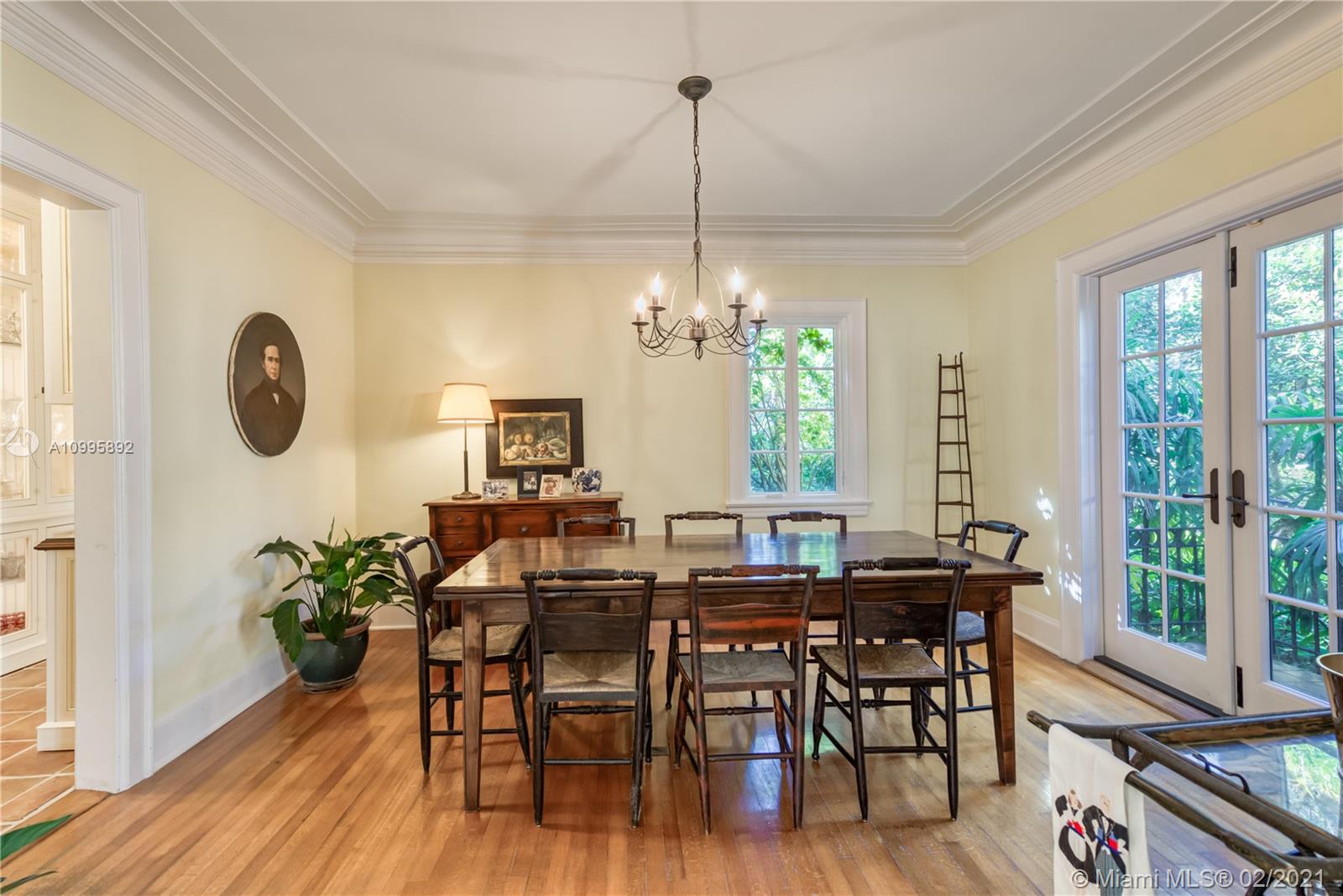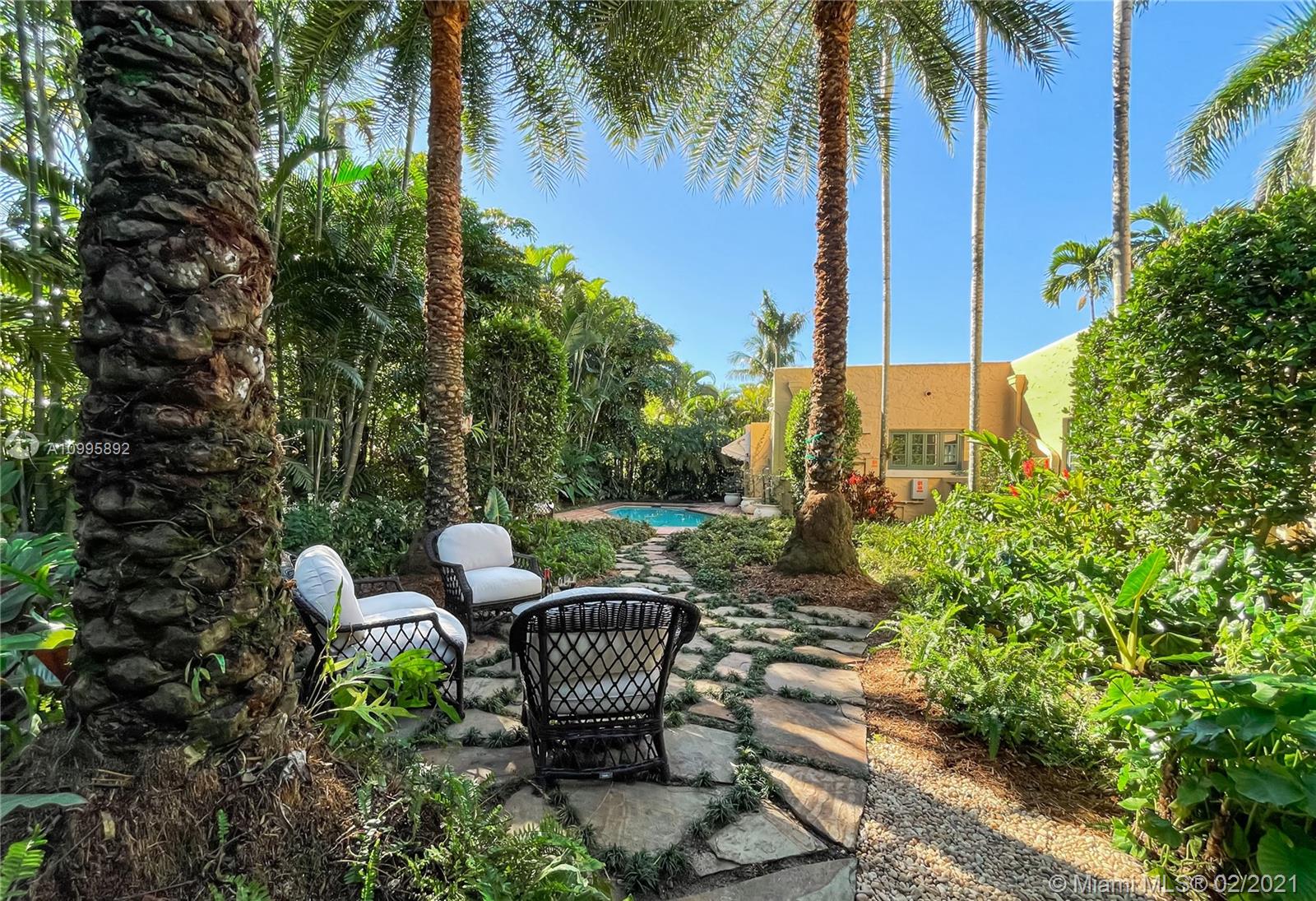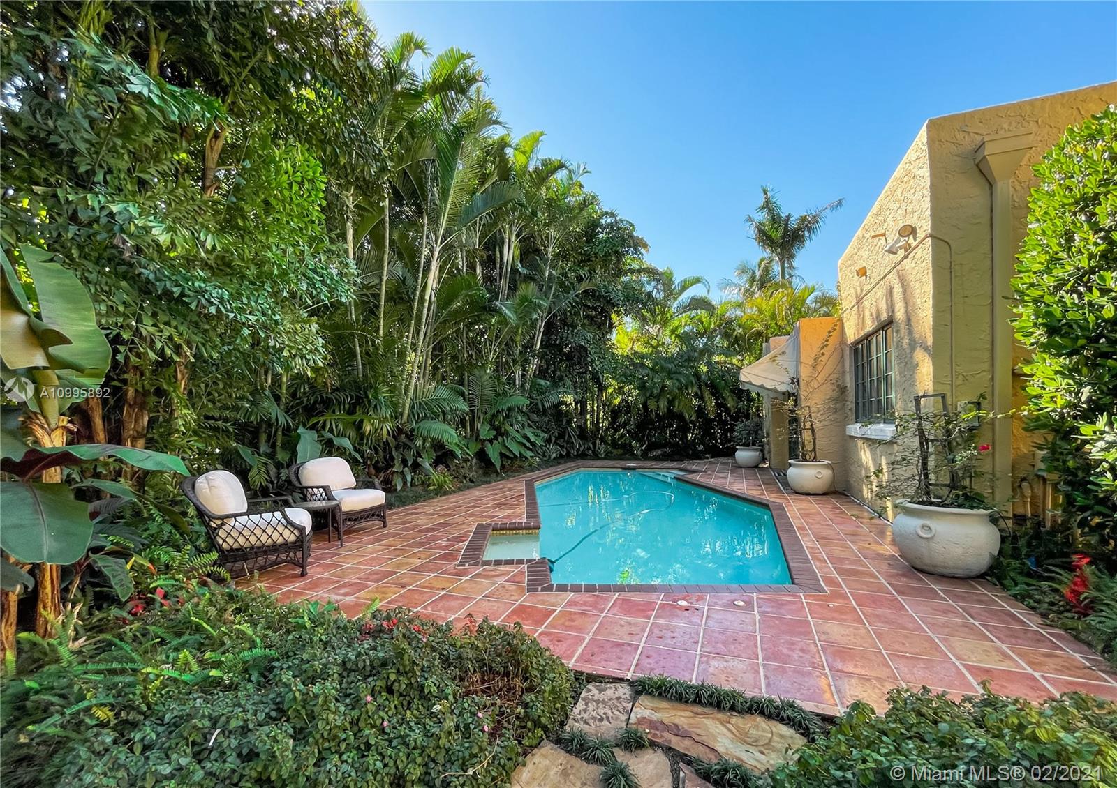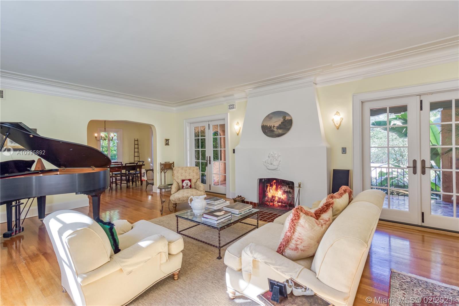 One of a kind, stunning, restored and updated Old Spanish home designed by architect H. George Fink in 1923. Large veranda entry reveals authentic architectural integrity, crown moldings, archways, hardwood floors, a grand living rm with fireplace, gracious formal dining room with adjacent butler's pantry. All-white eat-in kitchen with a gas stove opens to a cozy family room. Modern elements include advanced 2019 solar technology, hurricane impact glass & custom wood clad French doors. The floor plan boasts two bedrooms on the first floor plus a home office w/ built-in cabinetry, & two bedrooms upstairs. 12,500 sq' lot presents a peaceful, secluded tropical garden paradise, saline swimming pool & the ultimate "in private al fresco living". Generator ready with portable generator included.