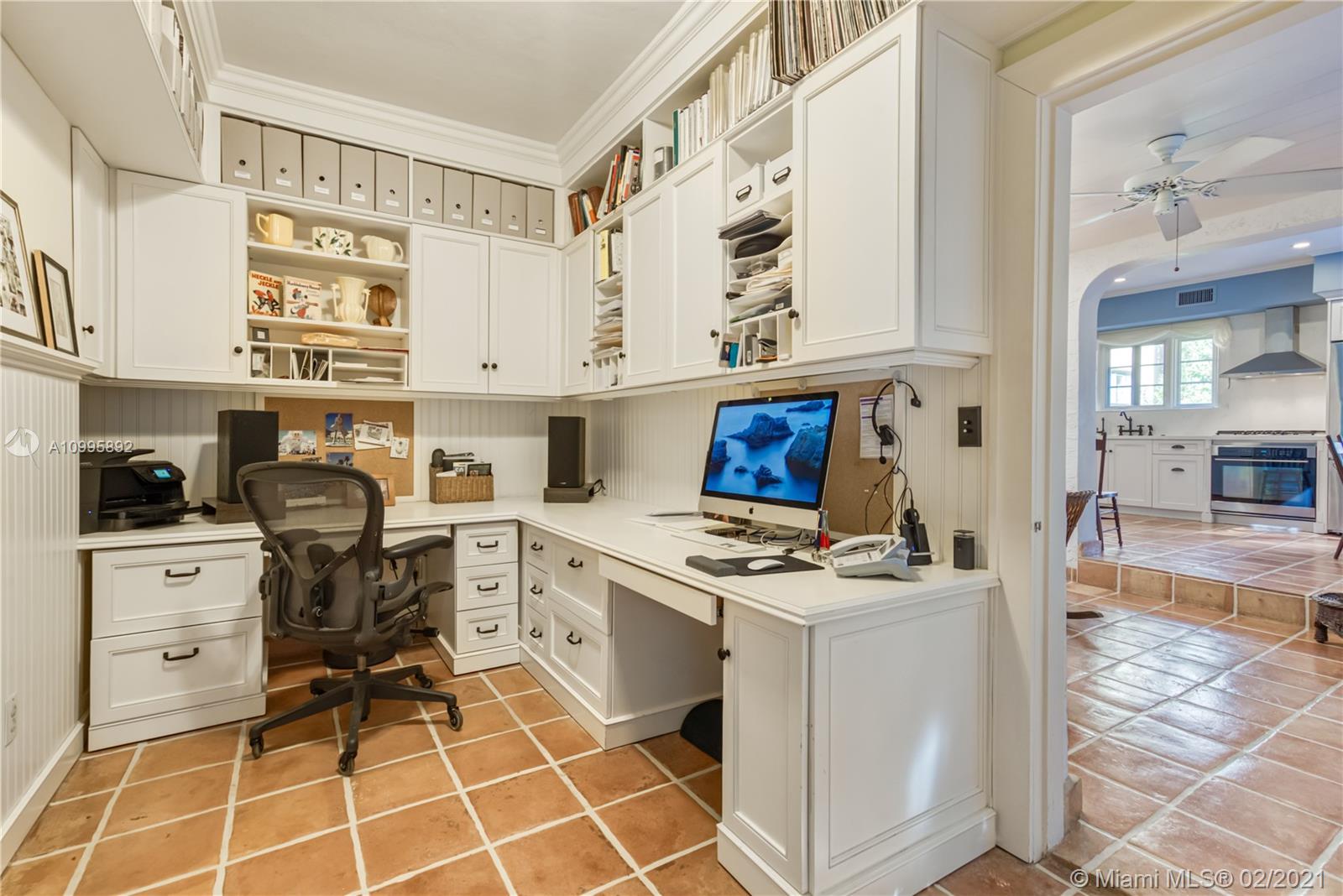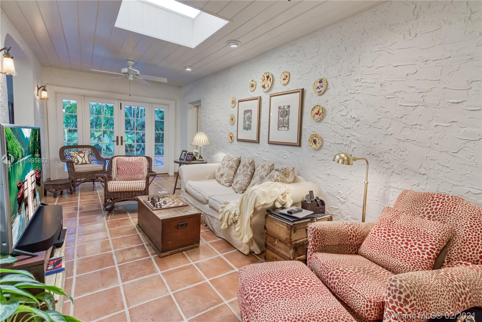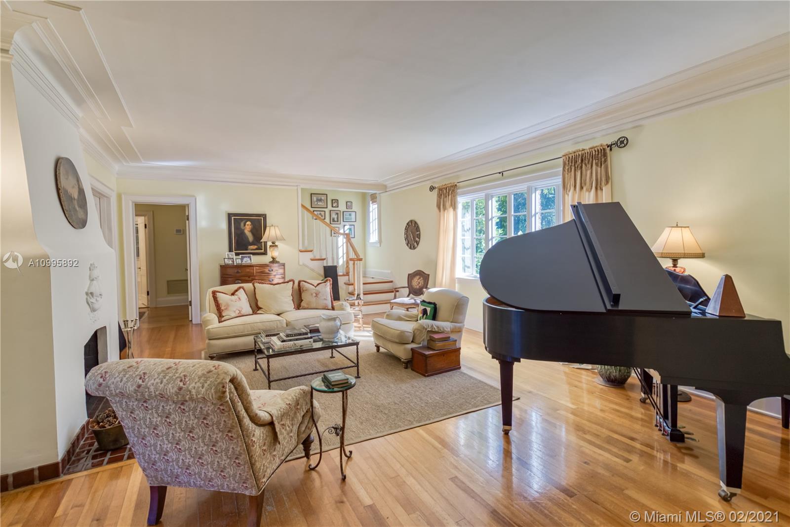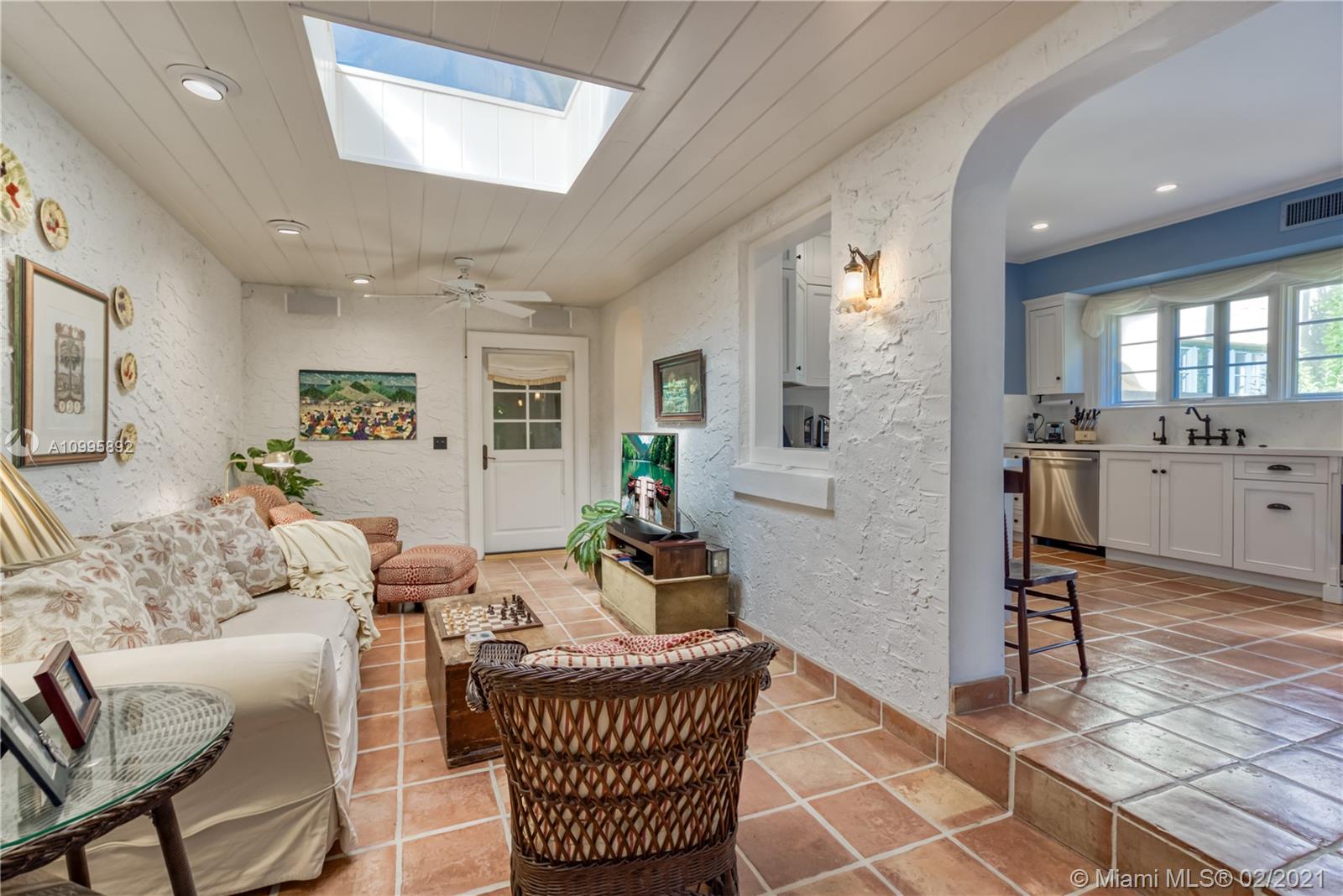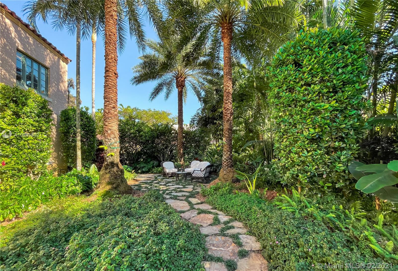 One of a kind, stunning, restored and updated Old Spanish home designed by architect H. George Fink in 1923. Large veranda entry reveals authentic architectural integrity, crown moldings, archways, hardwood floors, a grand living rm with fireplace, gracious formal dining room with adjacent butler's pantry. All-white eat-in kitchen with a gas stove opens to a cozy family room. Modern elements include advanced 2019 solar technology, hurricane impact glass & custom wood clad French doors. The floor plan boasts two bedrooms on the first floor plus a home office w/ built-in cabinetry, & two bedrooms upstairs. 12,500 sq' lot presents a peaceful, secluded tropical garden paradise, saline swimming pool & the ultimate "in private al fresco living". Generator ready with portable generator included.