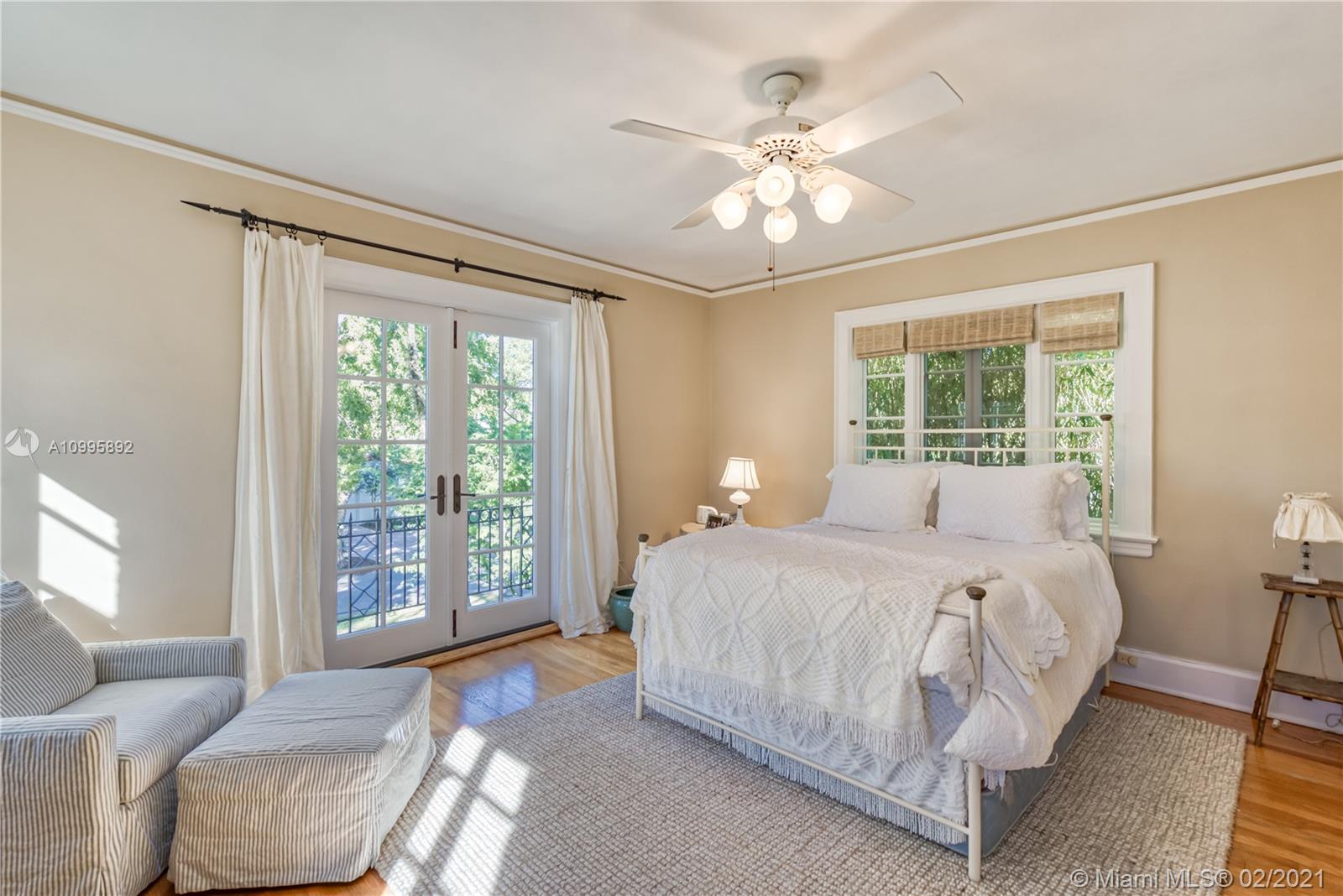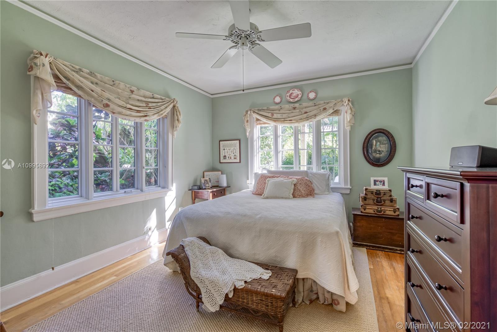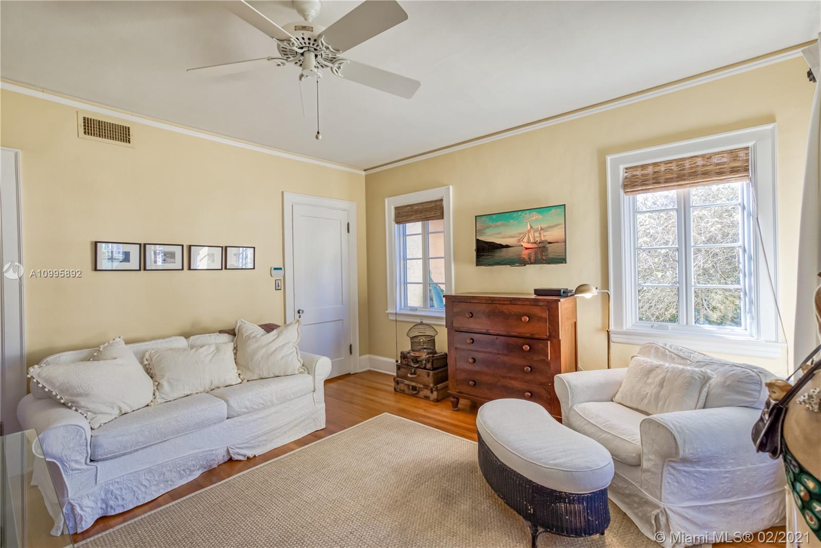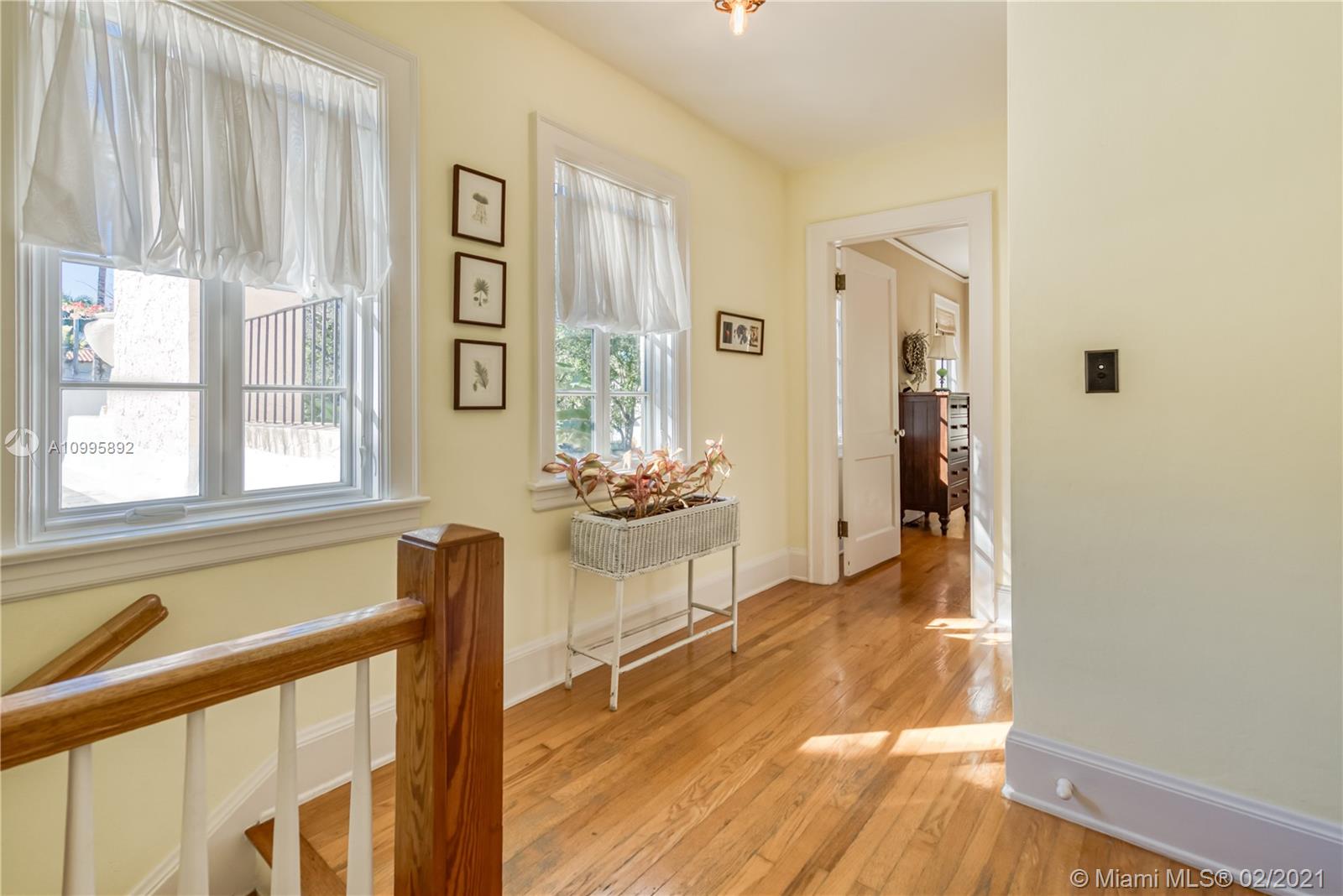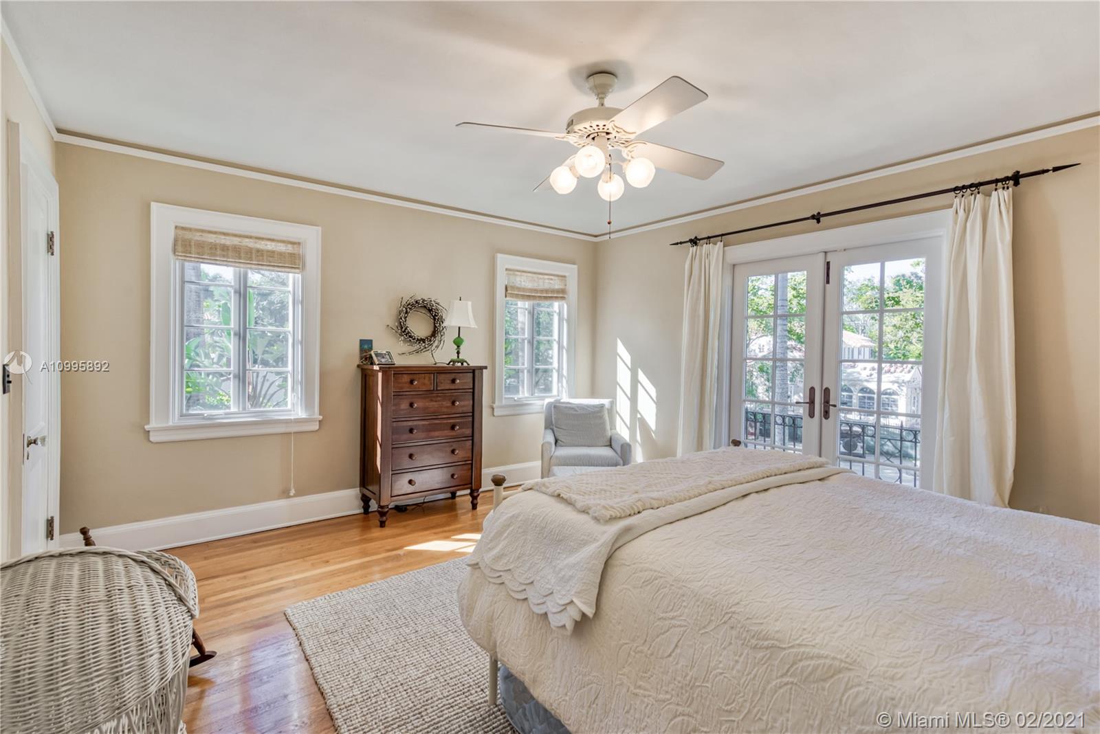One of a kind, stunning, restored and updated Old Spanish home designed by architect H. George Fink in 1923. Large veranda entry reveals authentic architectural integrity, crown moldings, archways, hardwood floors, a grand living rm with fireplace, gracious formal dining room with adjacent butler's pantry. All-white eat-in kitchen with a gas stove opens to a cozy family room. Modern elements include advanced 2019 solar technology, hurricane impact glass & custom wood clad French doors. The floor plan boasts two bedrooms on the first floor plus a home office w/ built-in cabinetry, & two bedrooms upstairs. 12,500 sq' lot presents a peaceful, secluded tropical garden paradise, saline swimming pool & the ultimate "in private al fresco living". Generator ready with portable generator included.