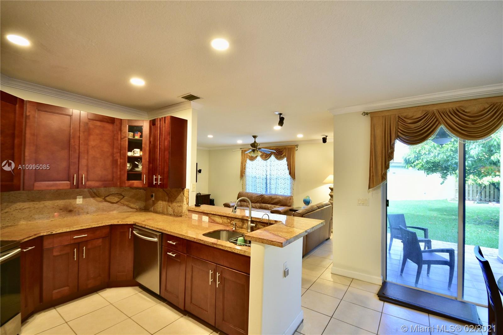 Spacious & Beautiful home in the desirable Gated community of GOLVUE ESTATES. Located on a private a Cul de Sac. 4 Bedroom & 3.5 Bathroom, with a huge and private backyard with a lot of Fruit trees and an Outside kitchen area. SPACE FOR POOL. Nice & remodeled kitchen, with granite counter tops & back splash, Stainless Steel Appliances, spacious Breakfast area, Big Pantry. Small Desk downstairs. Comfortable and spacious Master bedroom upstairs. California closets. 2 bedrooms sharing a Jack & Jill Bathroom and the 4th bedroom has their own bathroom (guest Room) Accordion Shutters all over the house. Gate Gard and Security 24 hs, Community Pool, Kids Playground. Walking distance to Schools, Starbucks, Publix, Walgreens & easy access to major highways.