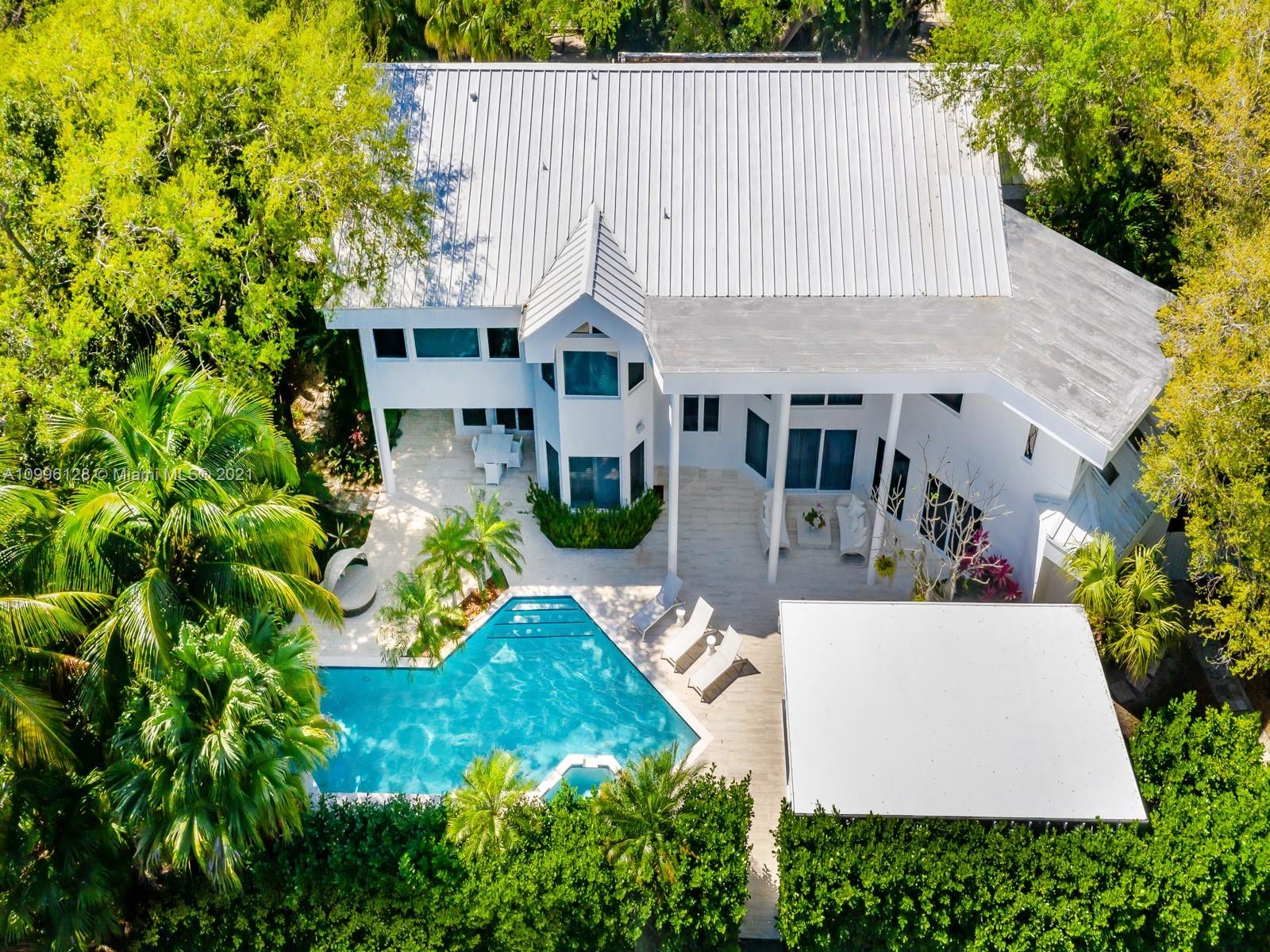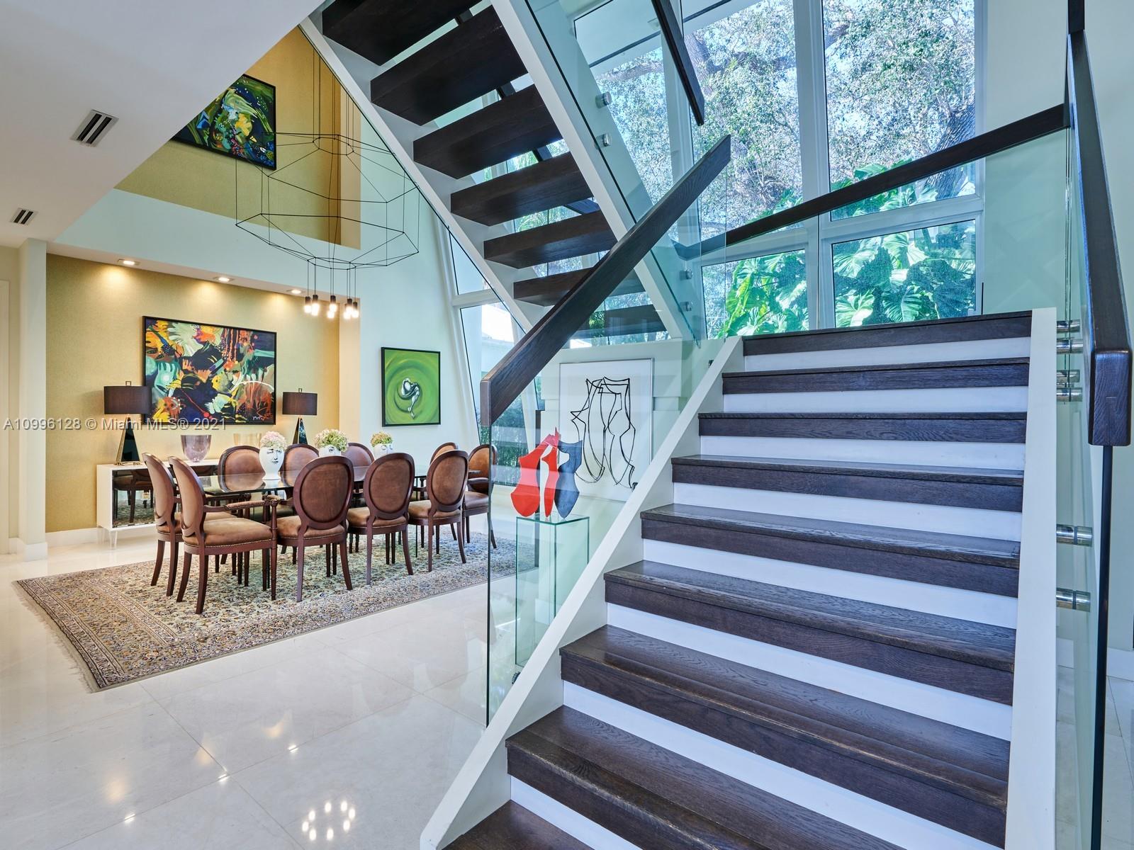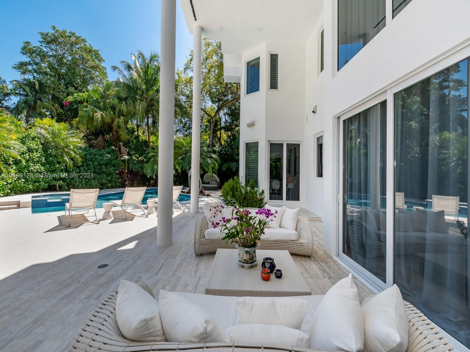 This MODERN Gem sits on nearly on a 38,161SF LOT nestled in a quiet enclave in CORAL GABLES.Take advantage of this unique opportunity to own a completely updated home featuring a tennis/basketball Ct,summer kitchen,pool+expansive garden made for entertaining.This beautiful home features 6 Bds,7 bths inside of its 8196 SF Total,w flr to ceiling windows which provide ample light throughout the house.On the 1st floor offers formal living+dinning room,completely updated kitchen w top of the line wolf appliances+built in Nespresso Machine,office,guest suite,family room.Upstairs offers master suite w oversized his+her closets,+3 adtl bedrooms.Equipped with tin roof,generator,2 car garage+2 carports,impact windows throughout,surround sound+security system,this gated home is a family’s dream!