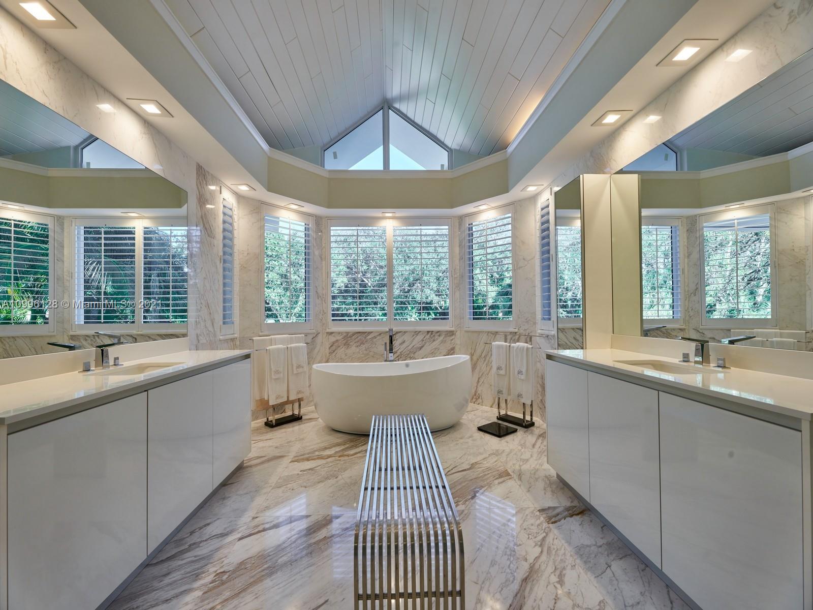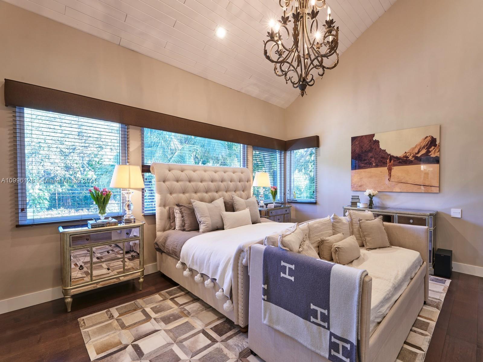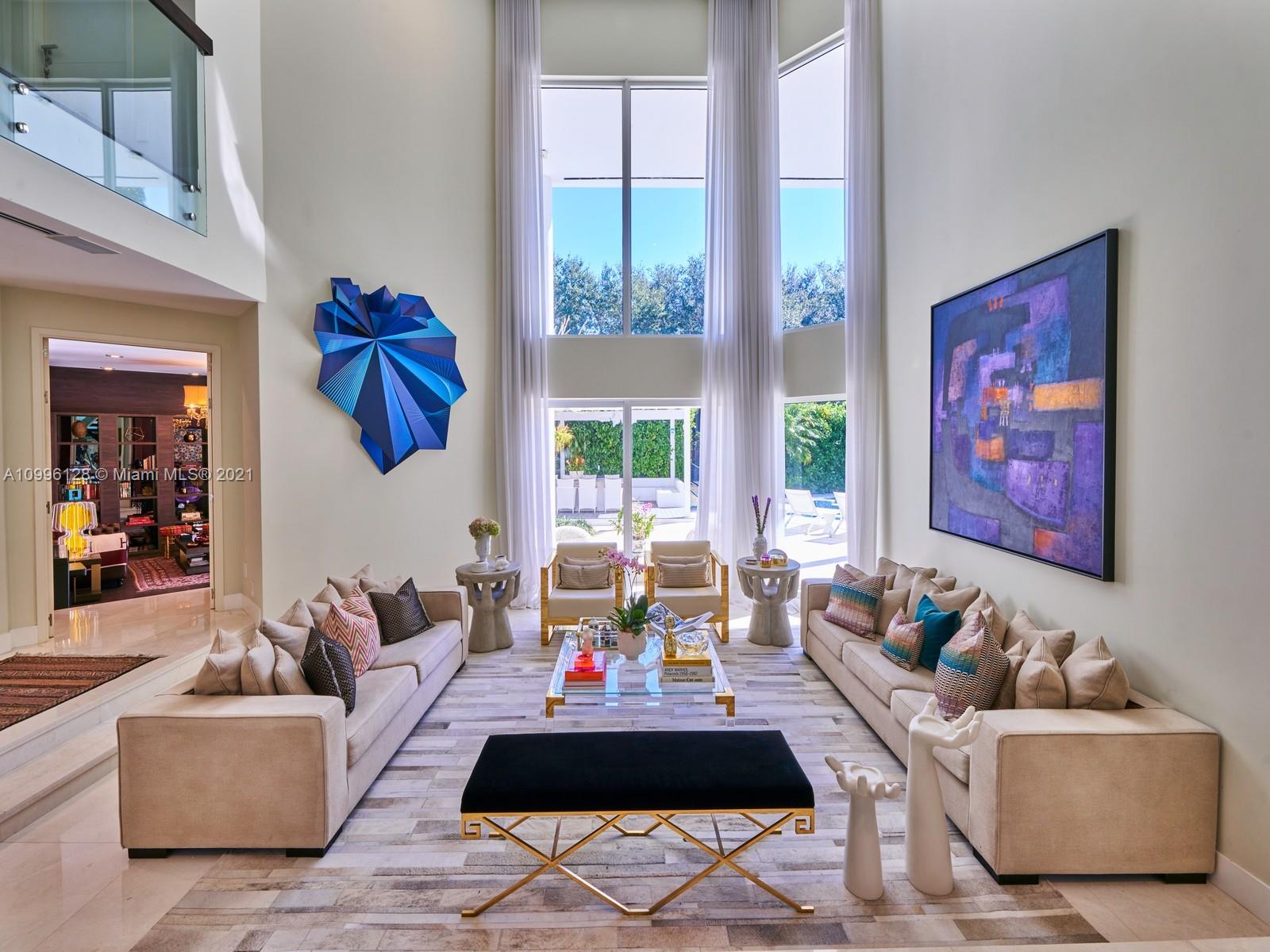 This MODERN Gem sits on nearly on a 38,161SF LOT nestled in a quiet enclave in CORAL GABLES.Take advantage of this unique opportunity to own a completely updated home featuring a tennis/basketball Ct,summer kitchen,pool+expansive garden made for entertaining.This beautiful home features 6 Bds,7 bths inside of its 8196 SF Total,w flr to ceiling windows which provide ample light throughout the house.On the 1st floor offers formal living+dinning room,completely updated kitchen w top of the line wolf appliances+built in Nespresso Machine,office,guest suite,family room.Upstairs offers master suite w oversized his+her closets,+3 adtl bedrooms.Equipped with tin roof,generator,2 car garage+2 carports,impact windows throughout,surround sound+security system,this gated home is a family’s dream!