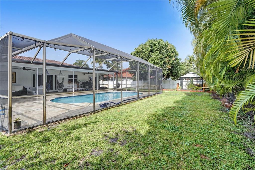 Come see this beautiful 2200 sqft home in Oak Wood. This home features a beautifully remodeled kitchen and bathrooms. Impact windows and doors throughout. Spacious living room, family room and dinning area. Floors in bedrooms have been updated. Backyard features enclosed pool and patio area, gazebo and five different types of fruit trees throughout the big backyard. Pool was recently remodel: diamond brite, new tile and travertine pavers. Highly sought after community is close to good schools, shops and malls. This home and community is a must see!