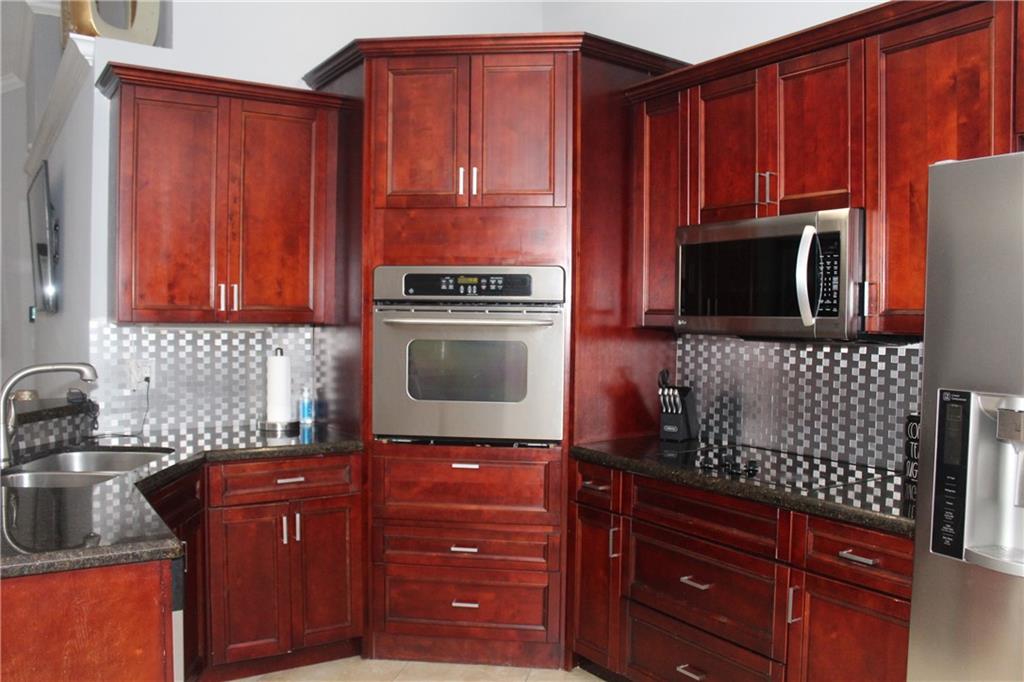 WOW!! Beautiful 3/2 home 1900sf under air with garage converted to a 4th BR in the desirable neighborhood of TRENDS Community boasting a fully remodeled home including kitchen and bathrooms, cherry wood cabinets new ss appliances w granite counter top. Open concept living area includes living room, dining area and family room crown molding throughout, vaulted ceilings, all impact windows including french doors, porcelain tiles throughout, double paved driveway and paved backyard throughout! This home is perfect for people who love to entertain. Professionally custom built BBQ grill 16x16 covered area w travertine pavers to be proud of and a huge completely private white PVC fenced back yard fun for the whole family.Definitely a rare opportunity, will not last!