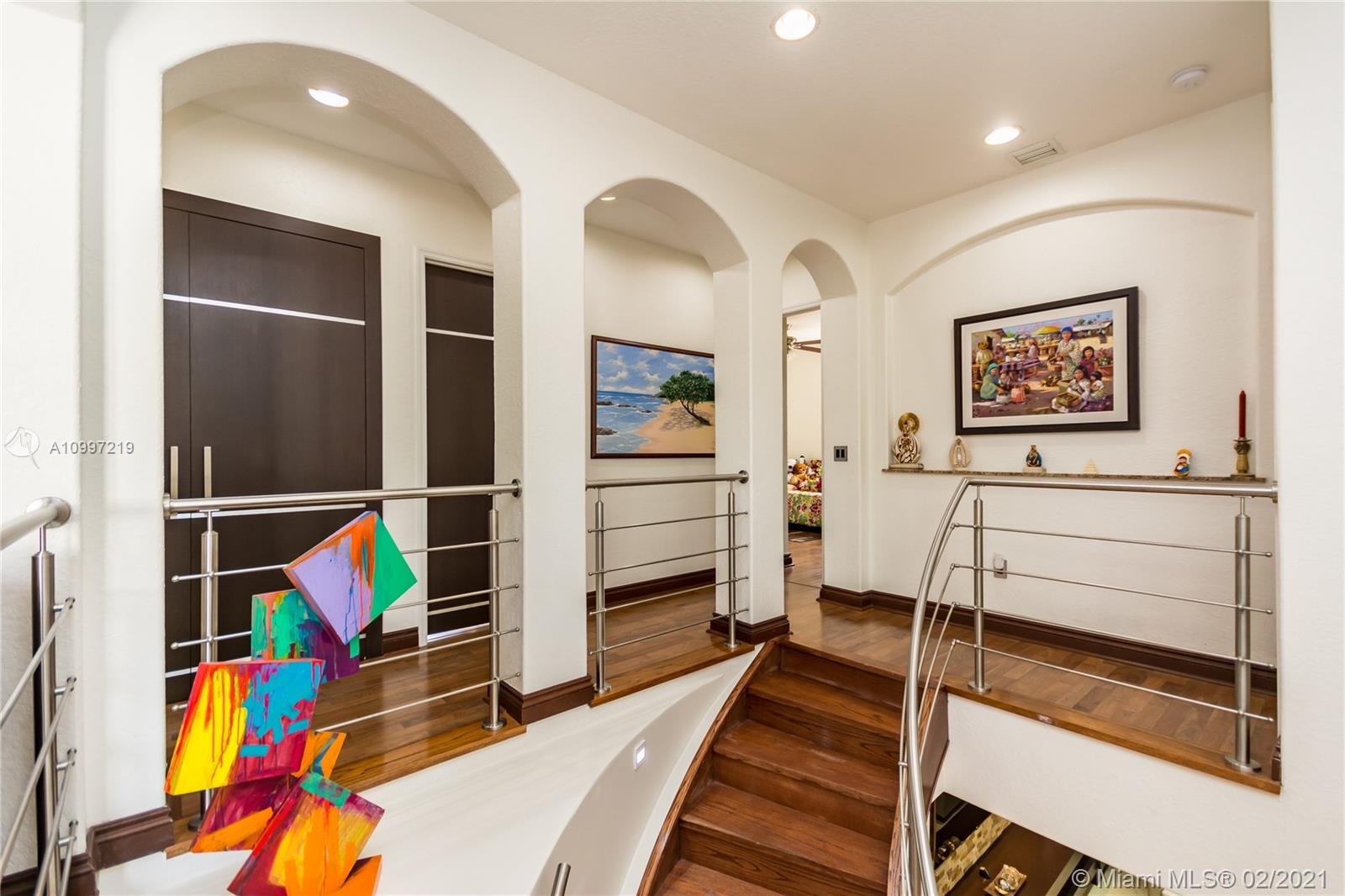 BEAUTIFUL SINGLE FAMILY HOME IN DORAL ISLES' MEDITERRANEA. CONTEMPORARY UPDATES INCLUDE: QUARTZ KITCHEN COUNTERTOP, BUILT-IN INTEGRATED REFRIGERATOR, WINE CELLAR, AND MIELE APPLIANCES. BUILT-IN ENTERTAINMENT CENTERS IN FAMILY ROOM AND BEDROOMS. MARBLE FLOORING ON 1ST FLOOR, WOOD FLOORING ON 2ND FLOOR. UPDATED BATHROOMS W/ FLOOR TO CEILING GLASS. TWO BEDROOMS CONVERTED INTO SINGLE LARGER ROOM, CAN BE EASILY REVERTED. LARGE WOOD AWNING IN BACKYARD, 3 CAR GARAGE, LED LIGHTING THROUGHOUT HOME, LOTS OF NATURAL LIGHT, ELECTRIC BLINDS IN BEDROOMS, ACCORDION SHUTTERS, ADDITIONAL LOFT WITH OFFICE ON 2ND FLOOR. AMENITIES INCLUDE: 2 POOLS, FULL GYM, BASKETBALL AND TENNIS COURTS, BEACH VOLLEYBALL, BALL ROOM, AND MORE. ONE OF DORAL'S MOST PRESTIGIOUS DEVELOPMENTS.