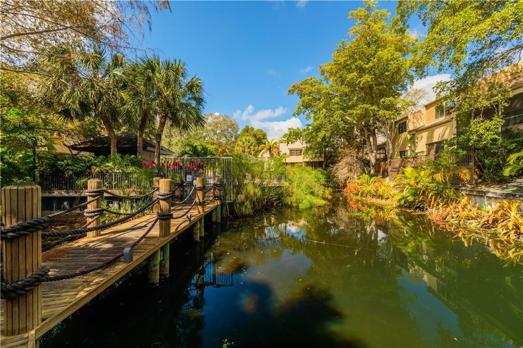 Welcome to Land Ends. Gorgeous fully updated and remodeled bright two-story move-in ready townhome with open floorplan. Located in a lovely neighborhood. Tall vaulted ceilings throughout. Wonderful end unit location with extra windows and a large/private new deck patio overlooking tropical lagoon. Working fireplace! 3 large upstairs bedrooms with high vaulted ceilings and specious closets. 2.5 baths. Remodeled kitchen featuring stainless steel appliances, granite countertops, custom wood cabinetry and new floors. Sliding glass doors surround the breakfast room, ready for indoor-out-living. Master bedroom with spacious tub and natural light, a walk-in closet, double sinks, & private balcony with water views. Large laundry room. Prime location in East Boca