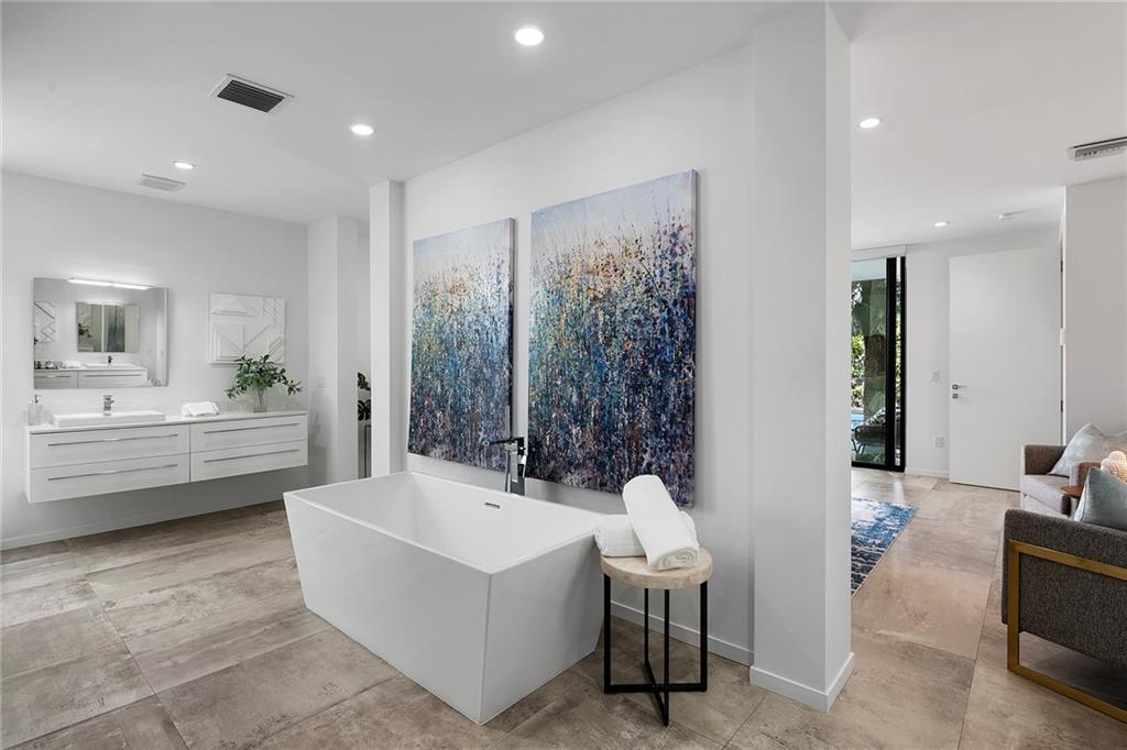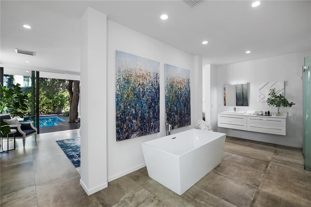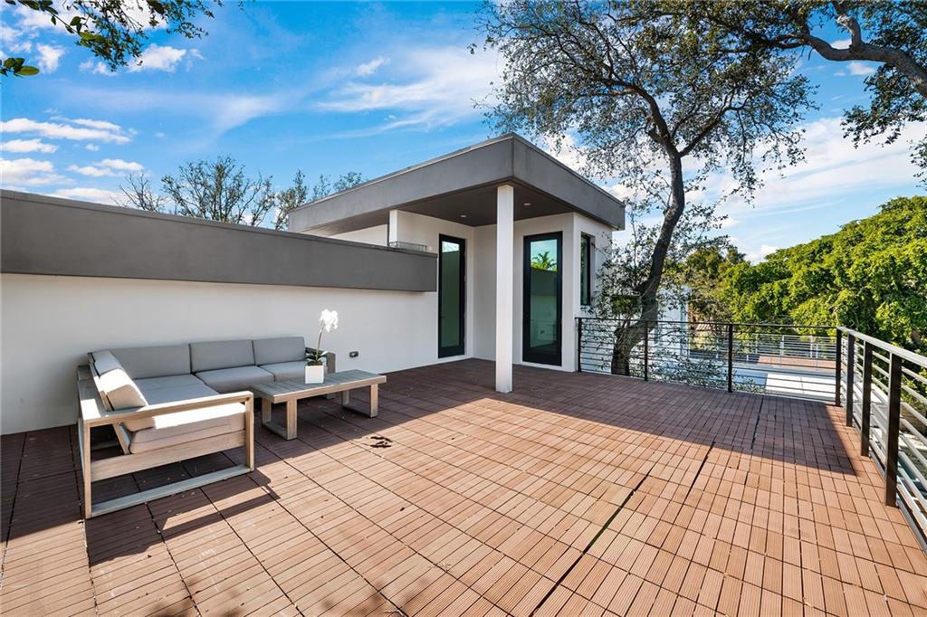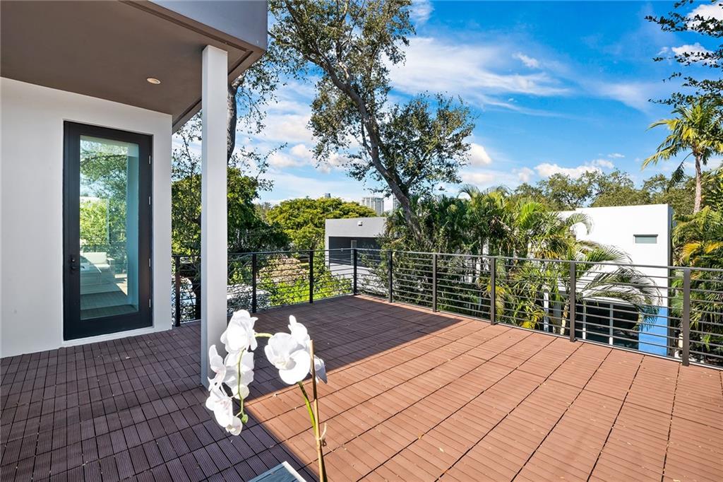 Located in the heart of Rio Vista! Fabulous contemporary style home (built in 2017) offering 5 bedrooms, 5 baths/2 half baths has walls of glass and soaring ceilings which allows for wonderful natural light creating a tranquil ambience throughout living areas. Sophisticated kitchen w/grand island, gas cooktop, top of the line Sub Zero/Wolf appliances. Sumptuous master bedroom has floor to ceiling sliders which open on to the beautiful patio/pool area with tree lined backyard and privacy fence. All guest bedrooms on second floor are ensuite. Laundry room on second floor along with a rooftop terrace perfect for private entertaining includes its own powder room. All impact windows and doors. Gorgeous cascading waterfall wall at front entry. A true pleasure to show this spectacular home.