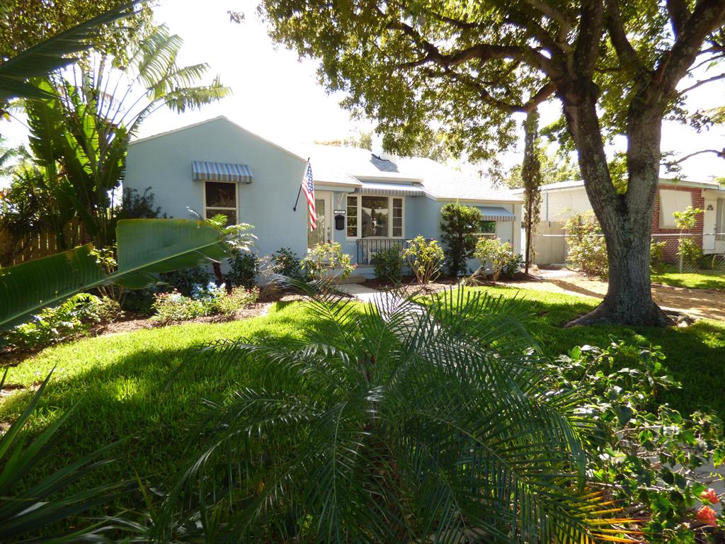 Incredible tropical cottage in Prospect Hills! This charming 1940 home has been beautifully and thoughtfully restored and is better than new! The old mixes perfectly with the new. Original Oak and Dade County Pine hardwoods throughout living area as well as 2 of the bedrooms and the kitchen. Beautiful new kitchen with Quartz counters, solid wood cabinets with crown molding and soft-close doors, farmhouse sink and brand new higher end GE appliances. All windows and doors have hurricane protection, impact or shutters, including two beautiful original big bay windows. Roof is brand new, as is the AC and water heater. AND THE YARD! The yard can't be replicated with it's amazing mature tropical trees.... Mahogany, Seagrape, Traveler Palms and so many more. Lots of outdoor living area.