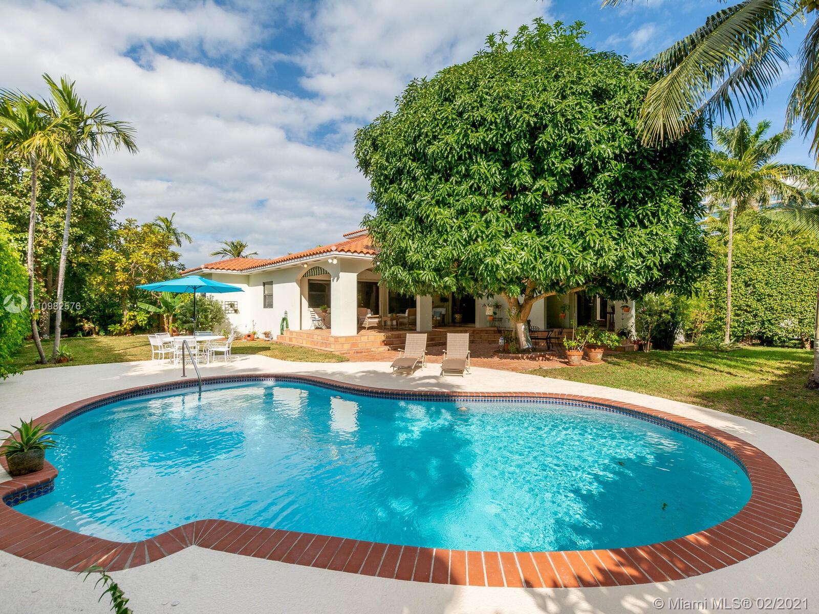 Rare opportunity to live close to the beach. House on 12,000 sf corner lot one block from the beach in prestigious Holiday Colony. Elevated home beautifully maintained/built by owner bright sunny rooms & lots of windows. Family room adjacent to large open kitchen leads to covered porch and large brick patio under mature mango tree. Fenced yard w/hedge for total privacy. Master Bedroom on first floor w/en suite bathroom both w/access to patio/pool. Additional bedroom/bath, separate laundry room on 1st floor. Upstairs master bedroom w/balcony, bathroom w/whirlpool, separate shower, large walk-in closet. Two ample bedrooms w/Jack & Jill bathroom on 2nd floor. Two car garage w/large storage closet. Impact windows. New roof 2018. Pool resurfaced 2020. 3705 sf under AC per owners appraisal.