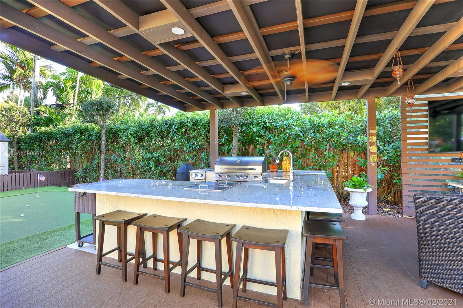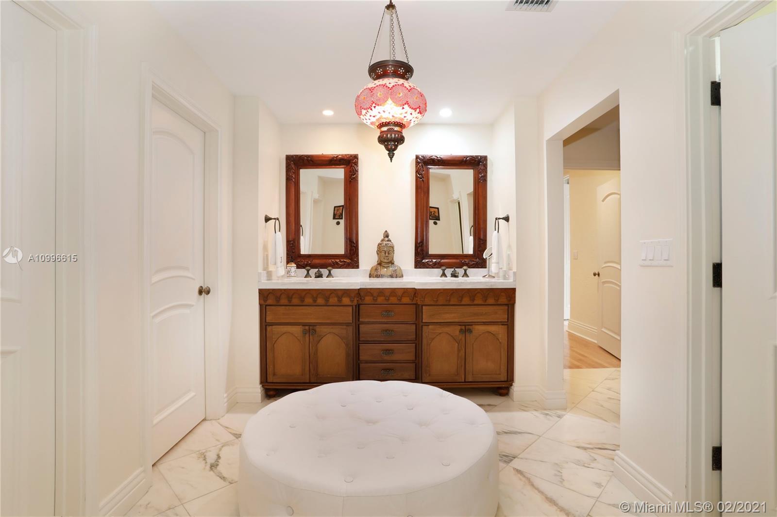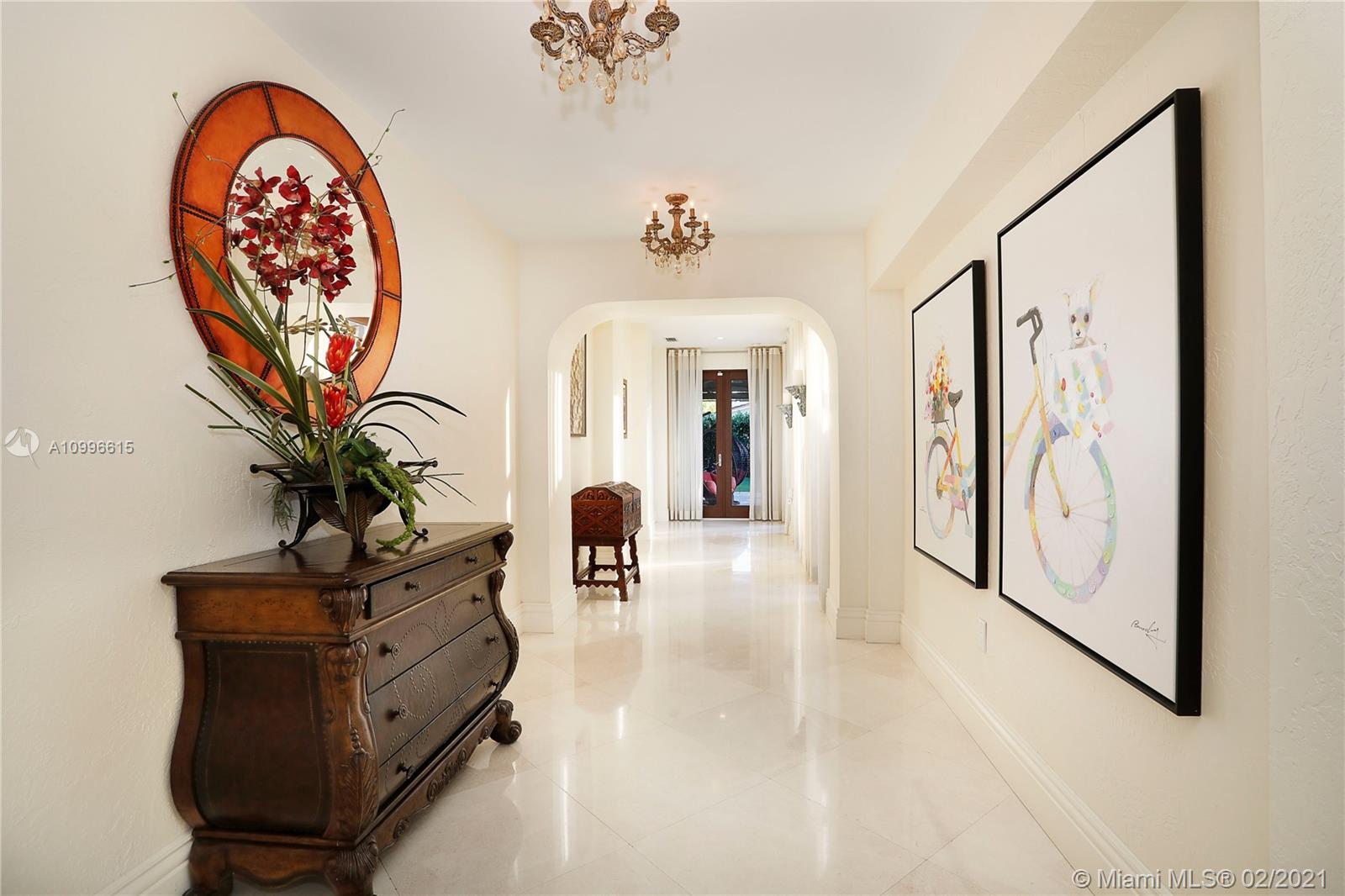Astonishing Old Spanish 4/4.5 main house, detached guest 1/1 & game room w/ 1 bath. The home features gorgeous high ceiling foyer, Desert Bloom marble floors from Dubai, impact windows and Turkish tumbled limestone fireplace. Stunning gourmet kitchen with Turkish stone counters, Sub-Zero, Miele and Wolf appliances. Large master has separate sitting area, Carrara Gold marble bath/spa & custom closets. Moroccan door handles w/ matching hinges. Fully equipped outdoor summer kitchen w/ Bull appliances, granite countertop, synthetic wood decking, and aluminum roof pergola all built in 2018. The pool & Jacuzzi area is spectacular, outdoor flooring has new pavers & artificial grass throughout. There is also a putting green area. This is a wonderful family home perfect for entertaining.