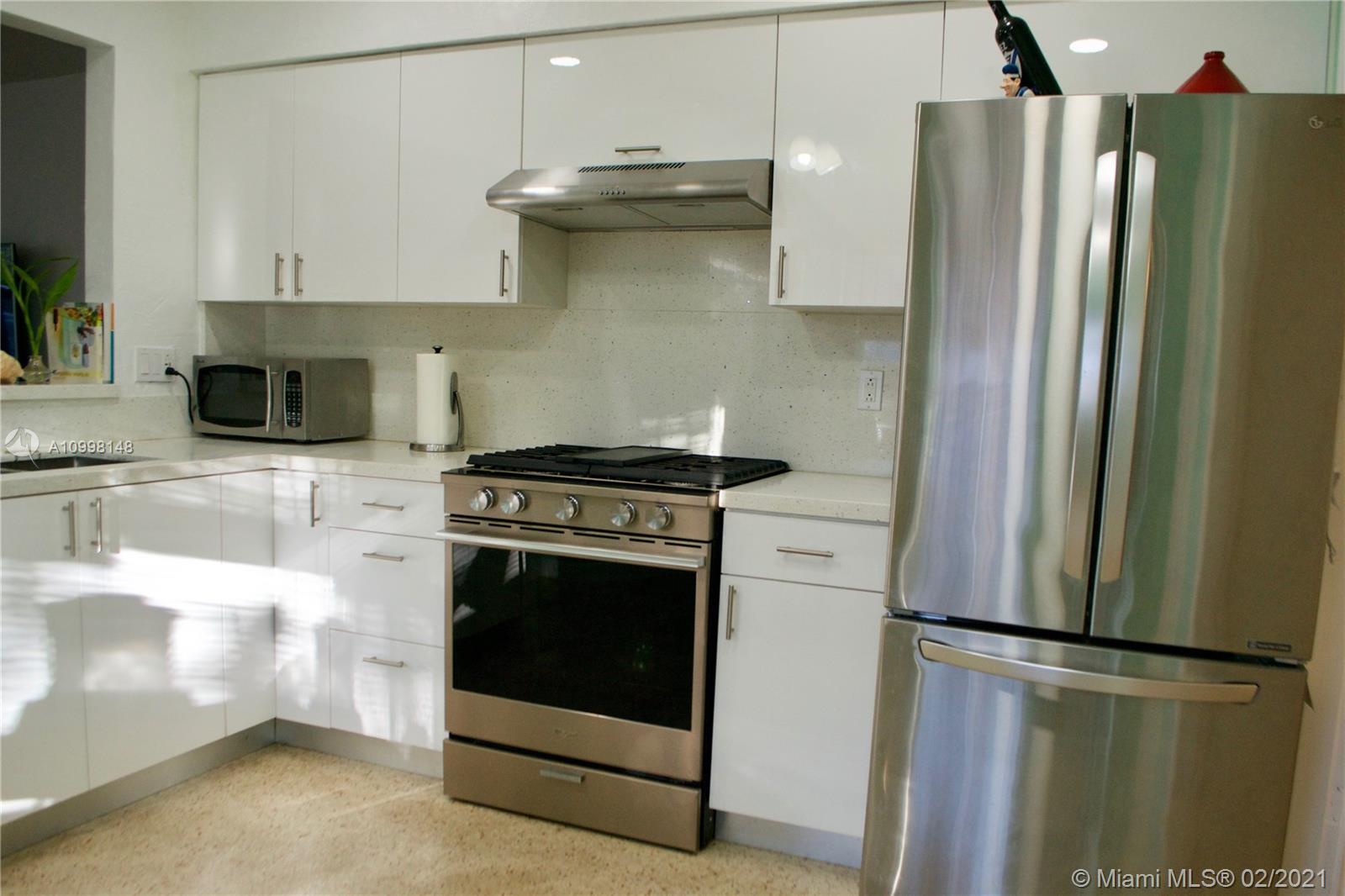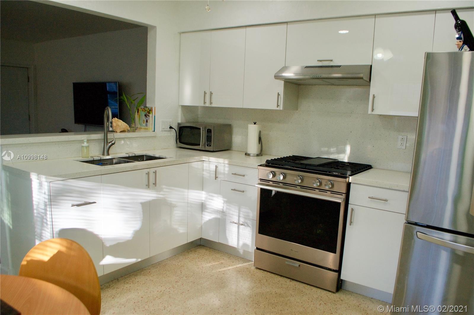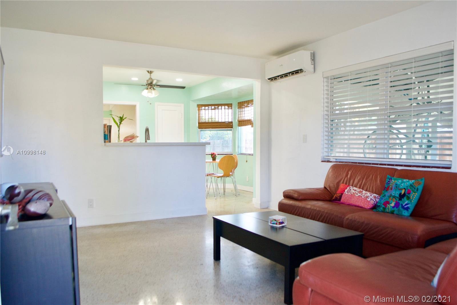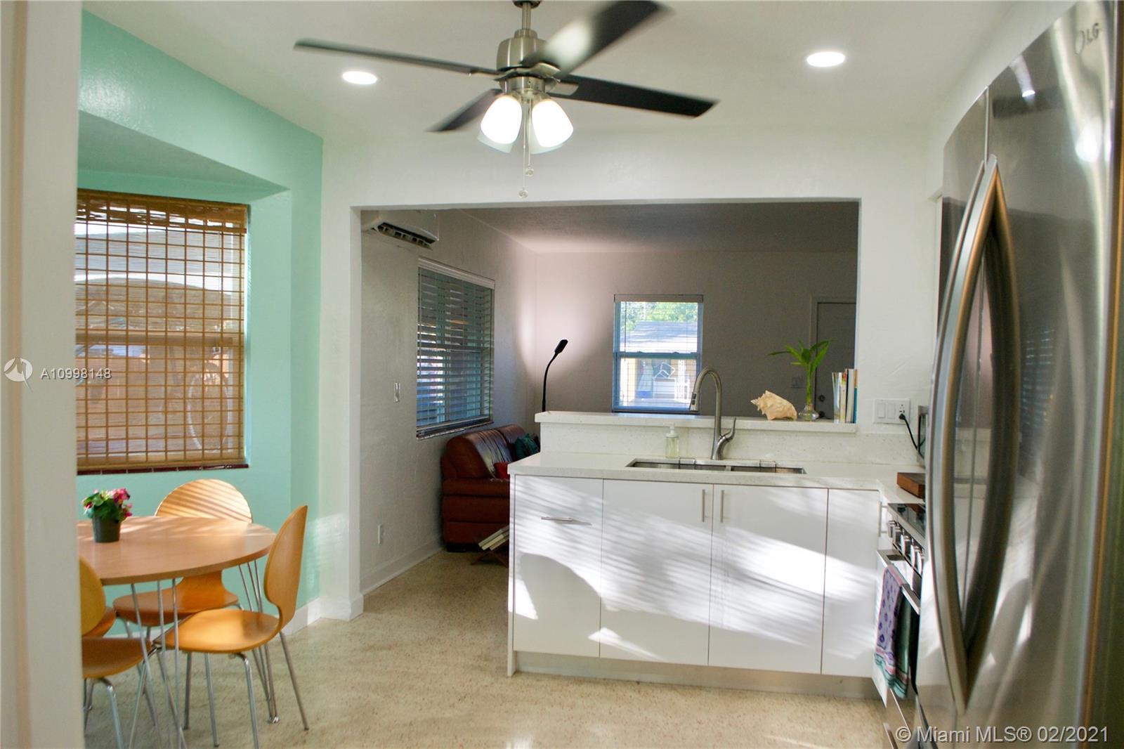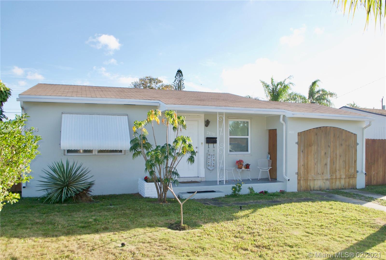 Delightful, Mid century charmer sitting on over 8000sq ft, a stones throw from downtown Hollywood! Terrazzo floors, open kitchen, high end S.S. appliances & sparkling white quartz counters, adorable, bay window bump out, eat in dinning area. Bonus florida room/den! large carport that is part of the original roof line for ez conversion to third bedroom or garage. Newer Windows and A/C, roof replaced 2007, septic system and drain field replaced 2011. New Gas stove and hot water heater, impact doors, hurricane rated shutters for all windows, hip roof (insurance discount) Super efficient mini split a/c, system with heat and dehumidifier! *LOW FPL bill* ground water fed sprinkler system with electric well pump (free water for landscaping and garden) *FLOOD ZONE X* No flood insurance needed!