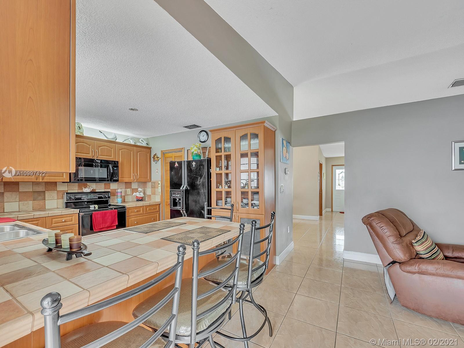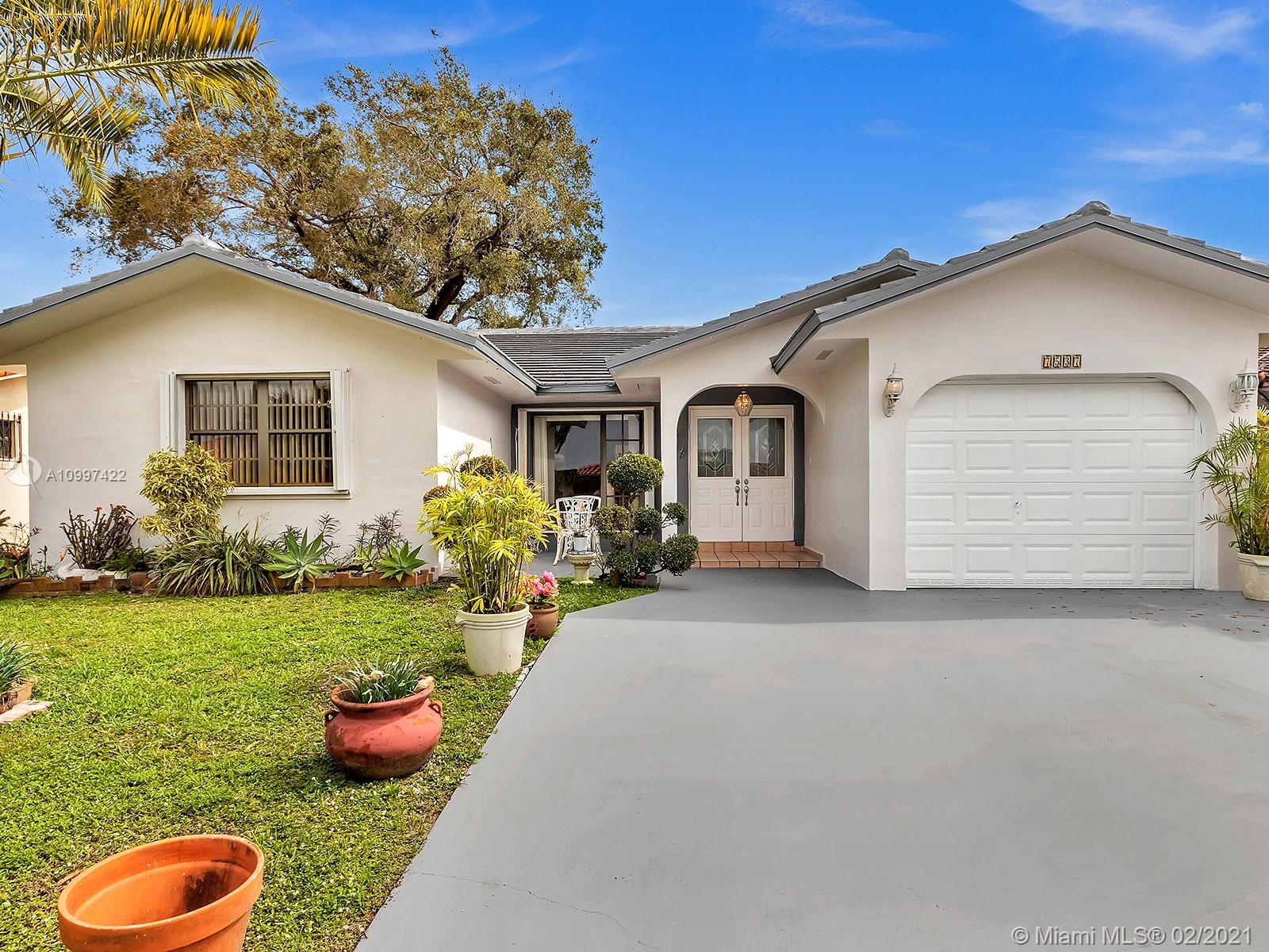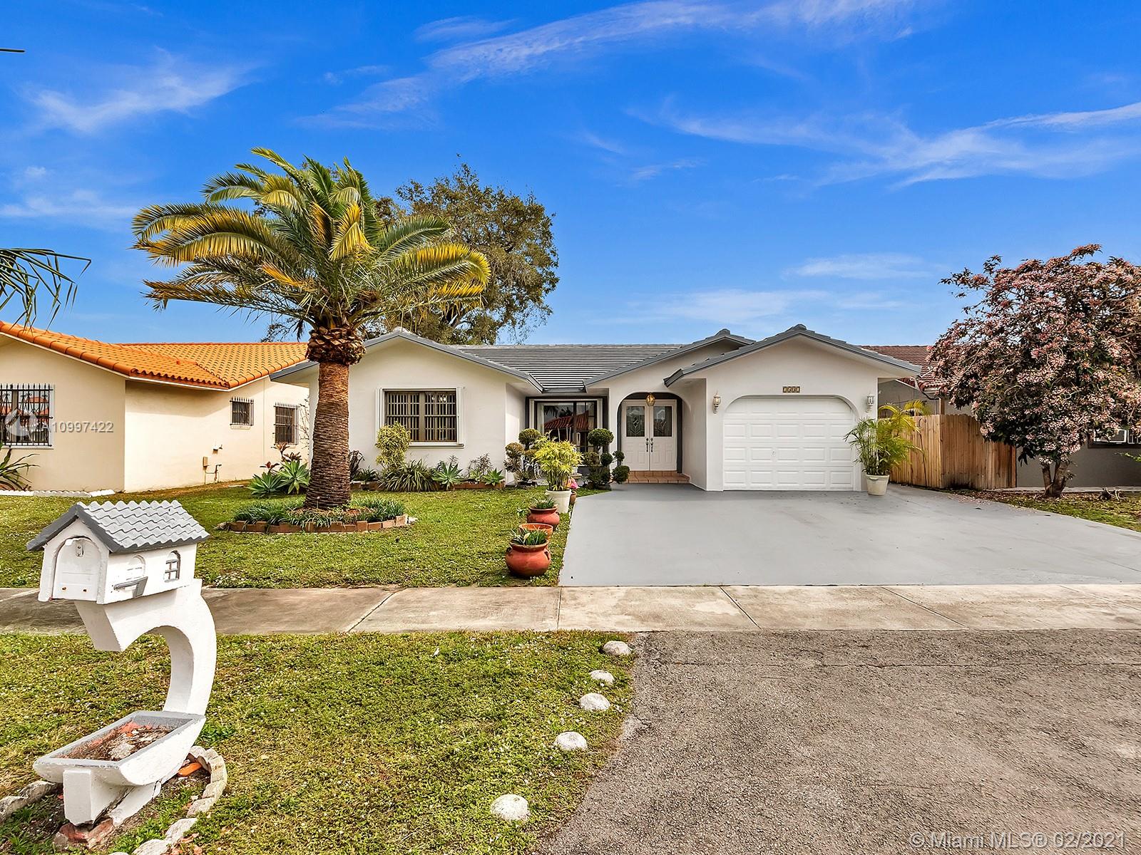 Watch sunsets from the front porch in this move-in ready home located minutes away from the Gratigny, shops & Miami Lakes. Home is located in a quite dead-end street, safe for children to play outside. Features new tile roof, freshly painted exterior, covered back patio into the yard, updated kitchen & appliances, master walk-in closet, & tile throughout the home. Large living & dining room. New Roof & AC is 4 years old. Drive-way fits 3 to 6 cars & has a one car garage. Laundry located inside garage that includes a side door to the exterior. Water/Sewer is from City of Hialeah & has new plumbing-no cast iron. Electricity is underground. Accordion shutters. Owner Occupied, showings by appointment only with 24 hour notice. Please book using ShowingTime. Buyers Realtor must accompany Buyer.