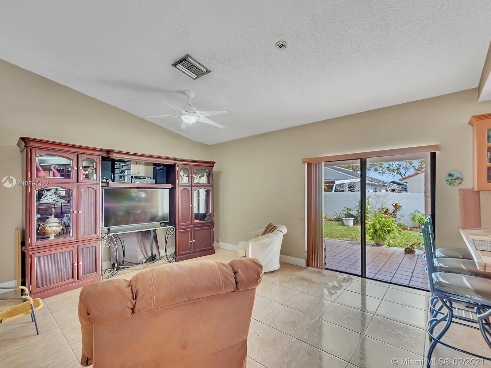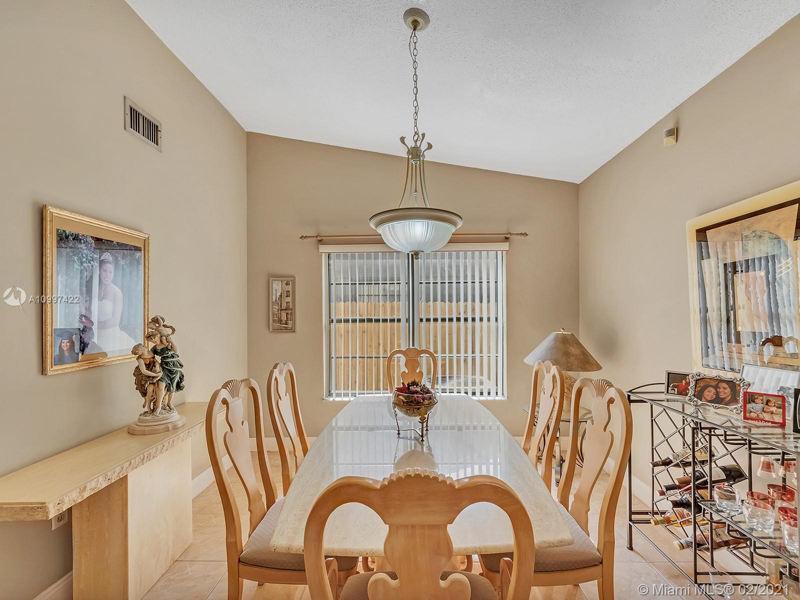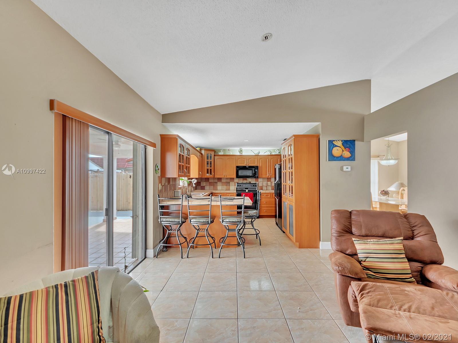 Watch sunsets from the front porch in this move-in ready home located minutes away from the Gratigny, shops & Miami Lakes. Home is located in a quite dead-end street, safe for children to play outside. Features new tile roof, freshly painted exterior, covered back patio into the yard, updated kitchen & appliances, master walk-in closet, & tile throughout the home. Large living & dining room. New Roof & AC is 4 years old. Drive-way fits 3 to 6 cars & has a one car garage. Laundry located inside garage that includes a side door to the exterior. Water/Sewer is from City of Hialeah & has new plumbing-no cast iron. Electricity is underground. Accordion shutters. Owner Occupied, showings by appointment only with 24 hour notice. Please book using ShowingTime. Buyers Realtor must accompany Buyer.