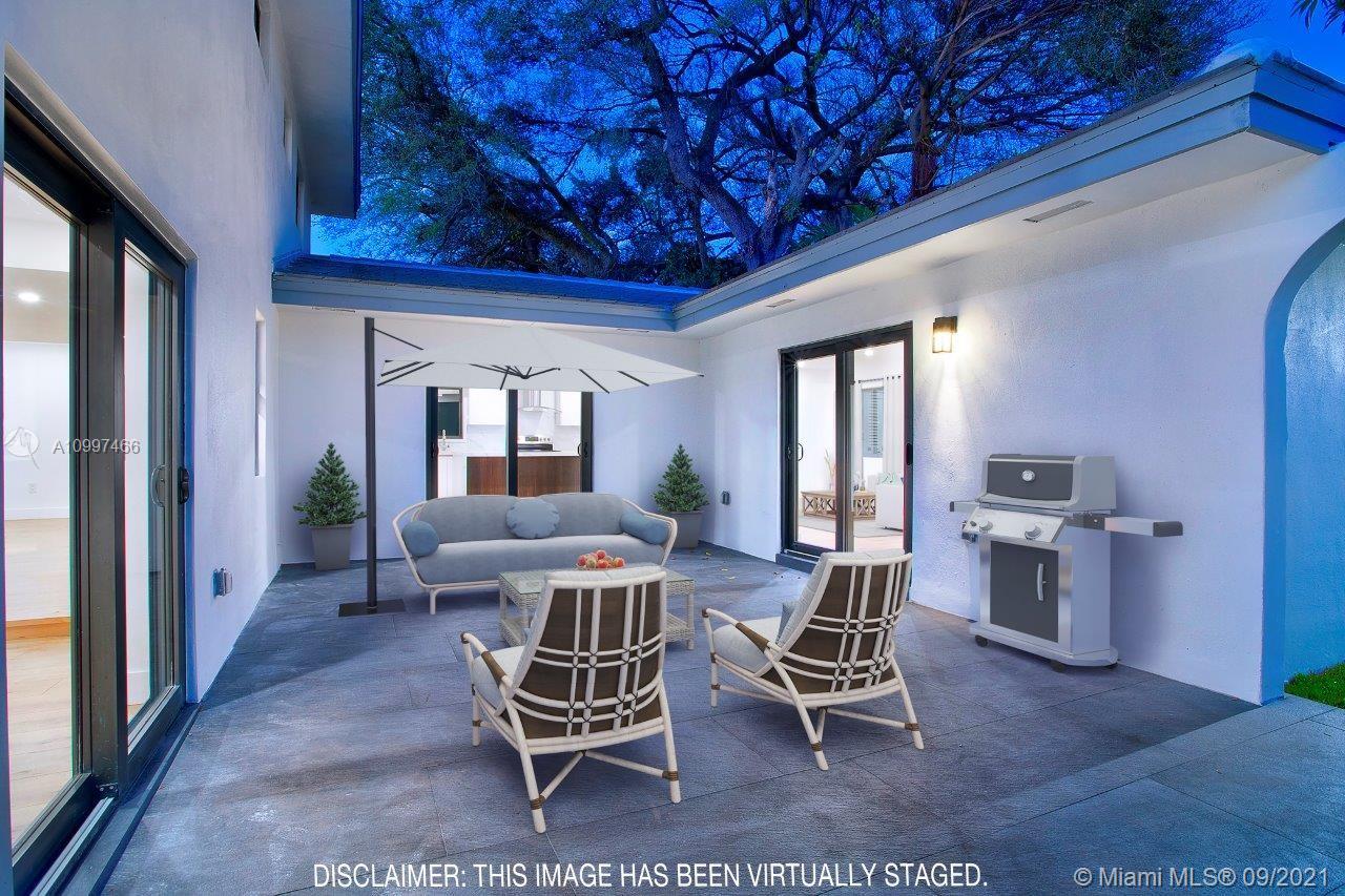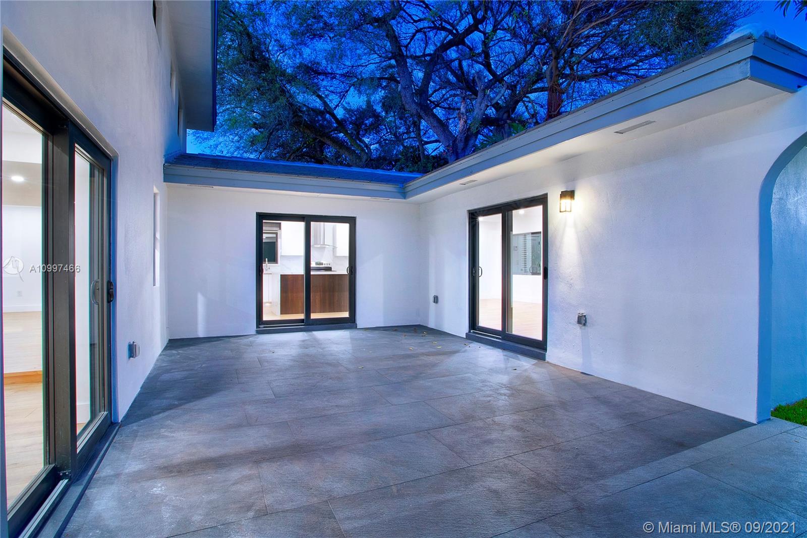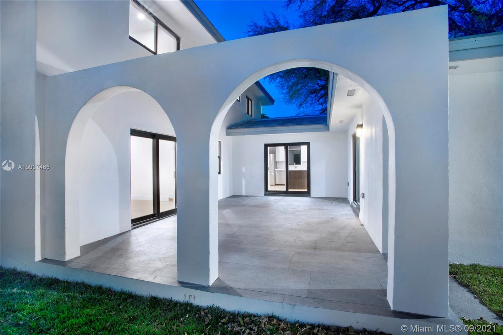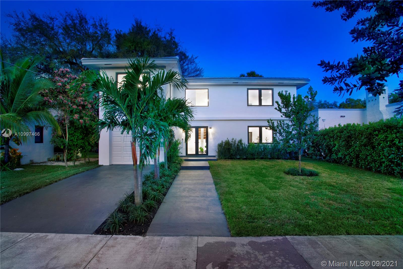 This fully renovated modern style 2-story 3 bedroom/2.5 bathroom + 1 car garage home is nestled on a quiet street in North Coral Gables with practically all new features. From a new roof to all impact doors & windows, new & unique bathroom details, new gorgeous floors throughout & a central open patio, you'll see it is ready to move-in! The foyer's focus is a glass railing staircase leading you to the 2nd level featuring a bar area & custom built-in cabinetry. The Master en-suite is airy with a custom walk-in closet & a bathroom with dual sinks. The downstairs floor plan has flowy spaces including a formal dining room & living room, redesigned island kitchen with s/s appliances & quartz countertops, an oversized family room & a half-bath. This is a great home to enjoy for years to come.