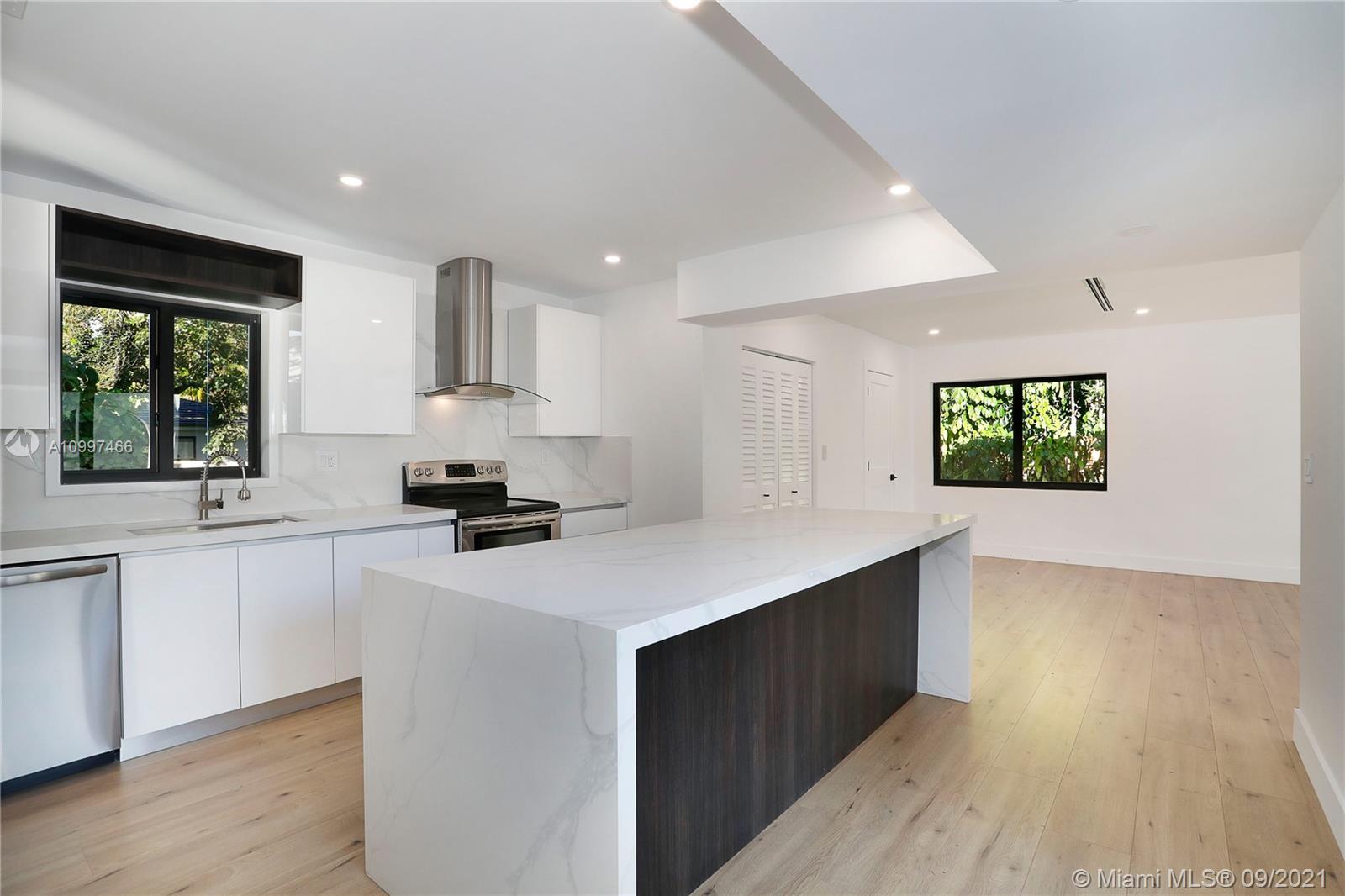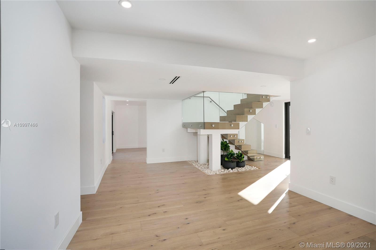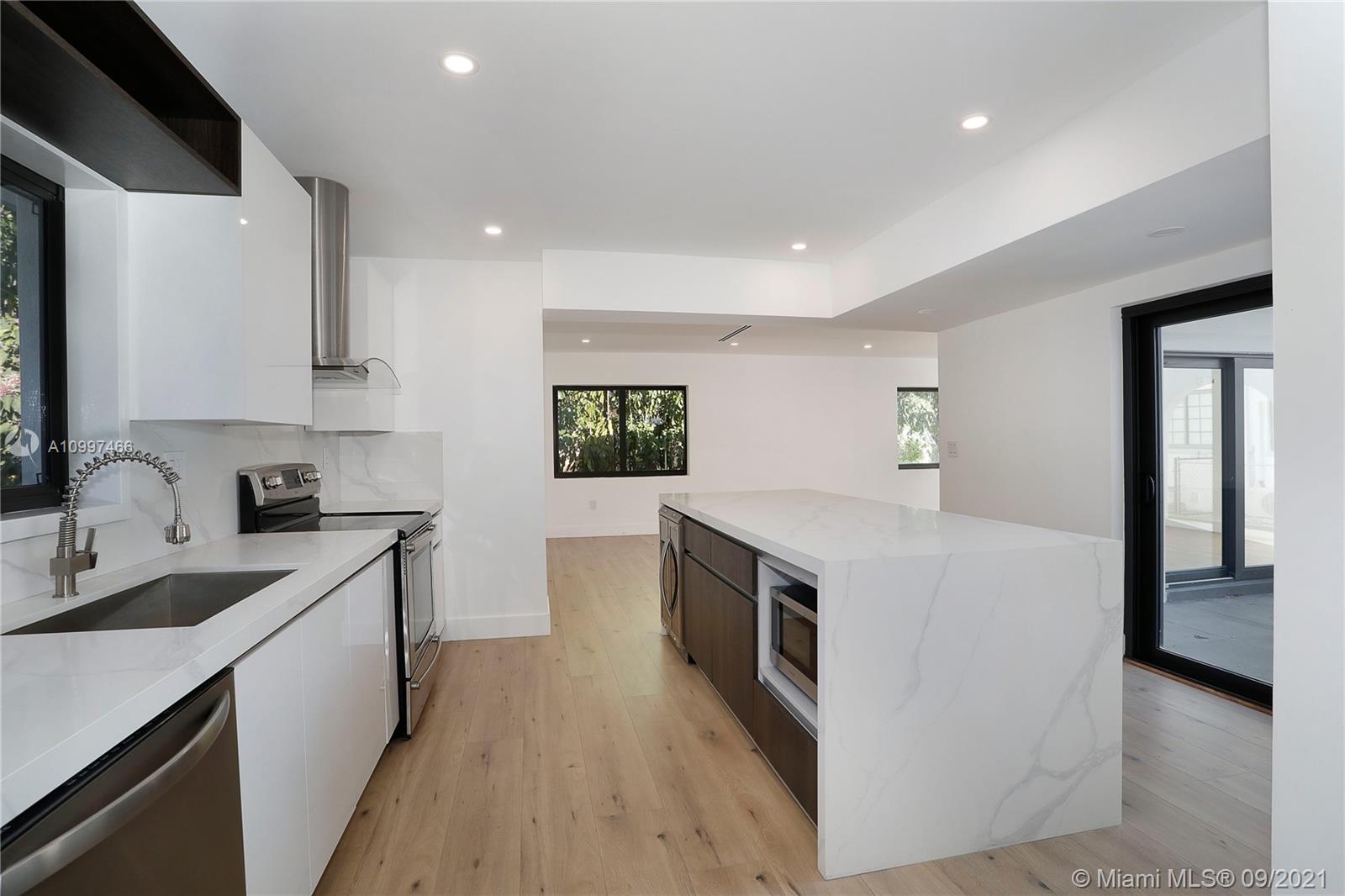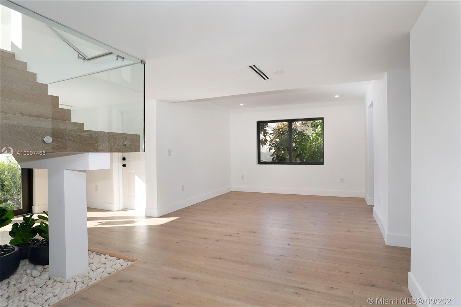 This fully renovated modern style 2-story 3 bedroom/2.5 bathroom + 1 car garage home is nestled on a quiet street in North Coral Gables with practically all new features. From a new roof to all impact doors & windows, new & unique bathroom details, new gorgeous floors throughout & a central open patio, you'll see it is ready to move-in! The foyer's focus is a glass railing staircase leading you to the 2nd level featuring a bar area & custom built-in cabinetry. The Master en-suite is airy with a custom walk-in closet & a bathroom with dual sinks. The downstairs floor plan has flowy spaces including a formal dining room & living room, redesigned island kitchen with s/s appliances & quartz countertops, an oversized family room & a half-bath. This is a great home to enjoy for years to come.