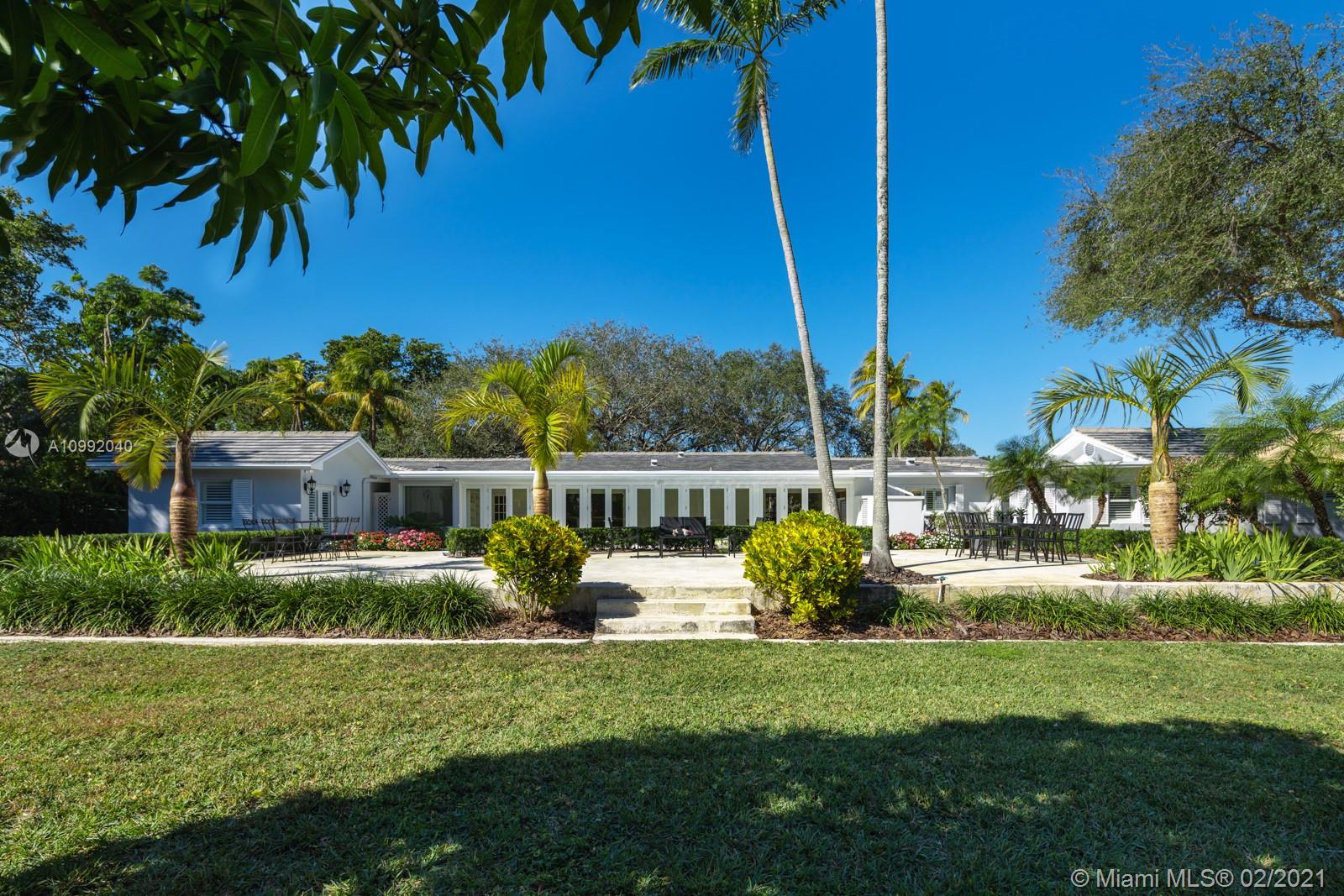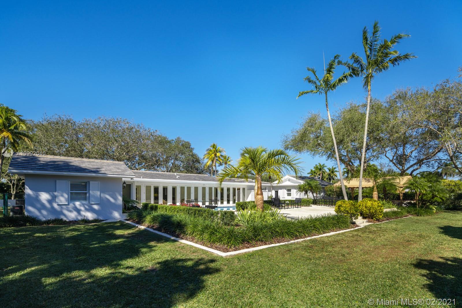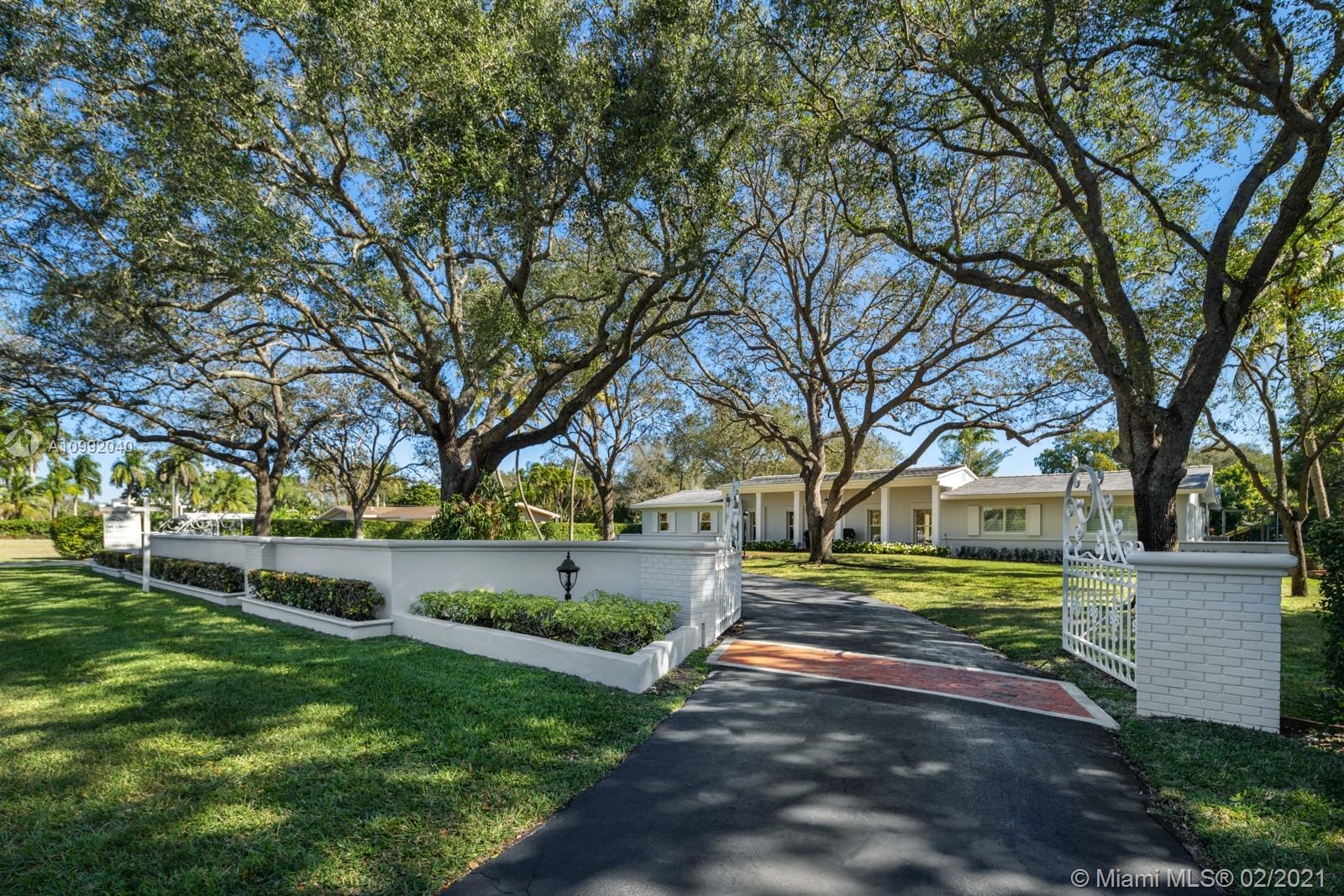 This pristine and gated home is located on an acre of land in Pinecrest. As you enter the property the driveway is lined with Oak trees and lush landscaping. This stunning home features a chef’s kitchen, expansive Florida room with incredible backyard views, family room with tons of storage and a gym/office with its own entrance. The spacious master bedroom has abundant closet space, a sitting room with French doors that lead to the beautiful backyard and a newly remodeled spa-like master bath. The expansive backyard has a sparking pool and gorgeous landscaping with a covered patio area with lighting and fans perfect for outdoor dining. The home has surround sound speakers inside and out, hurricane impact windows and doors, security system with cameras, 2 car garage and more!