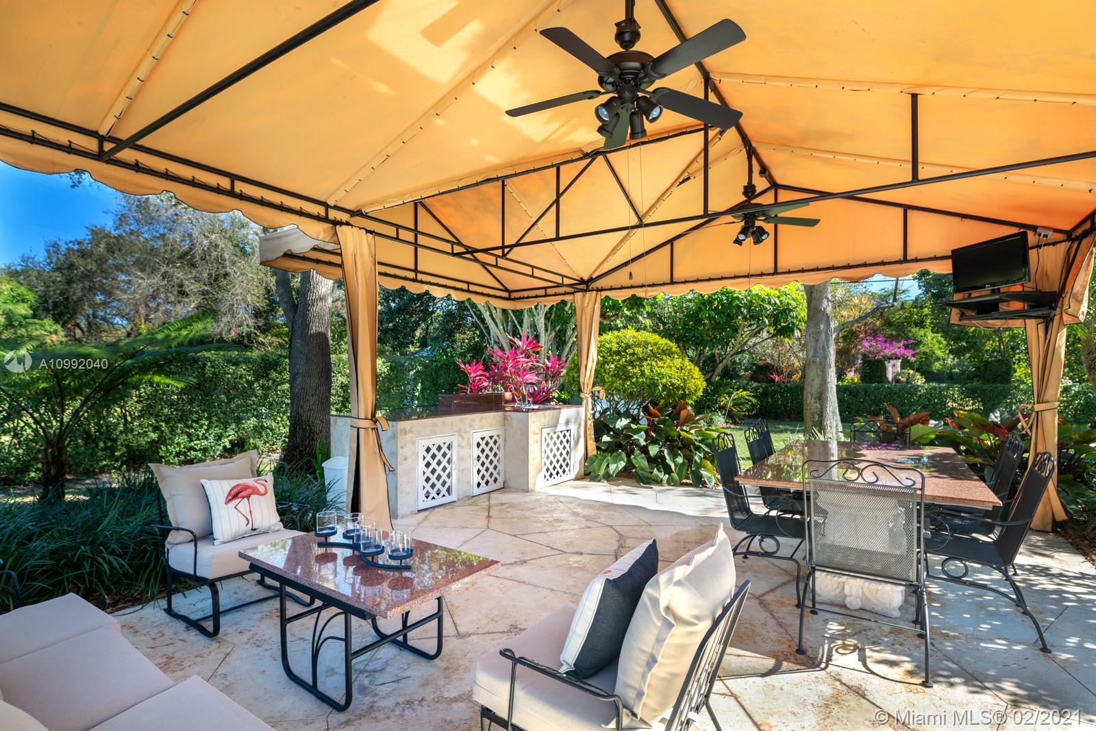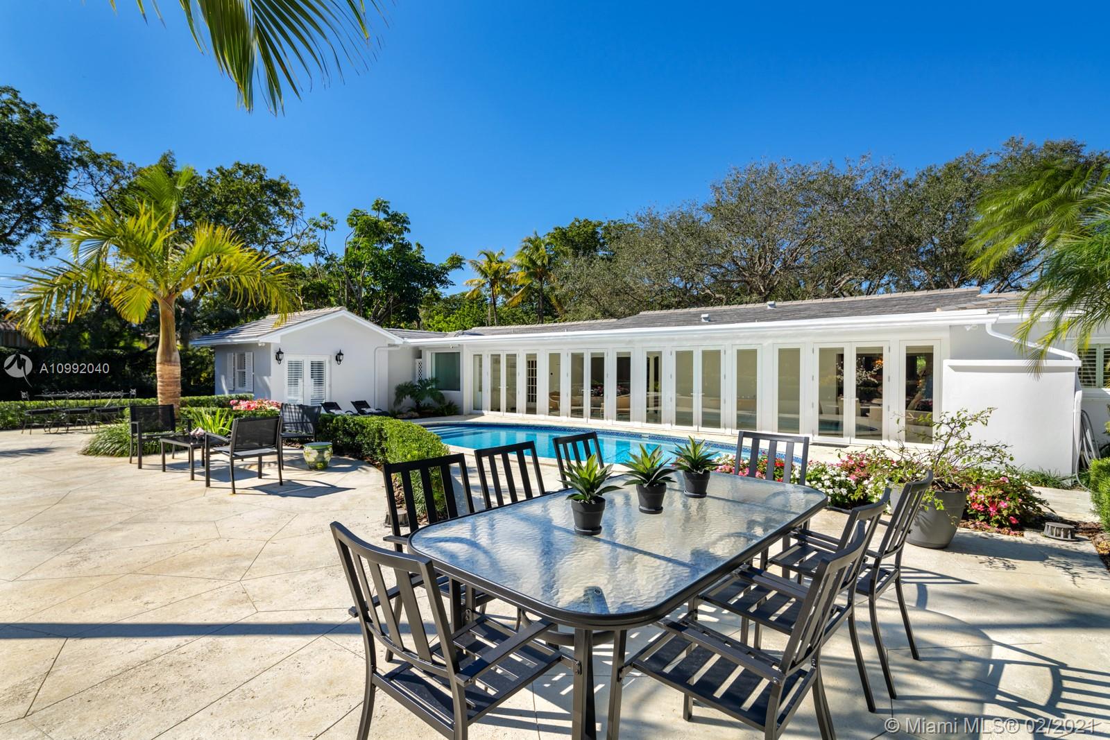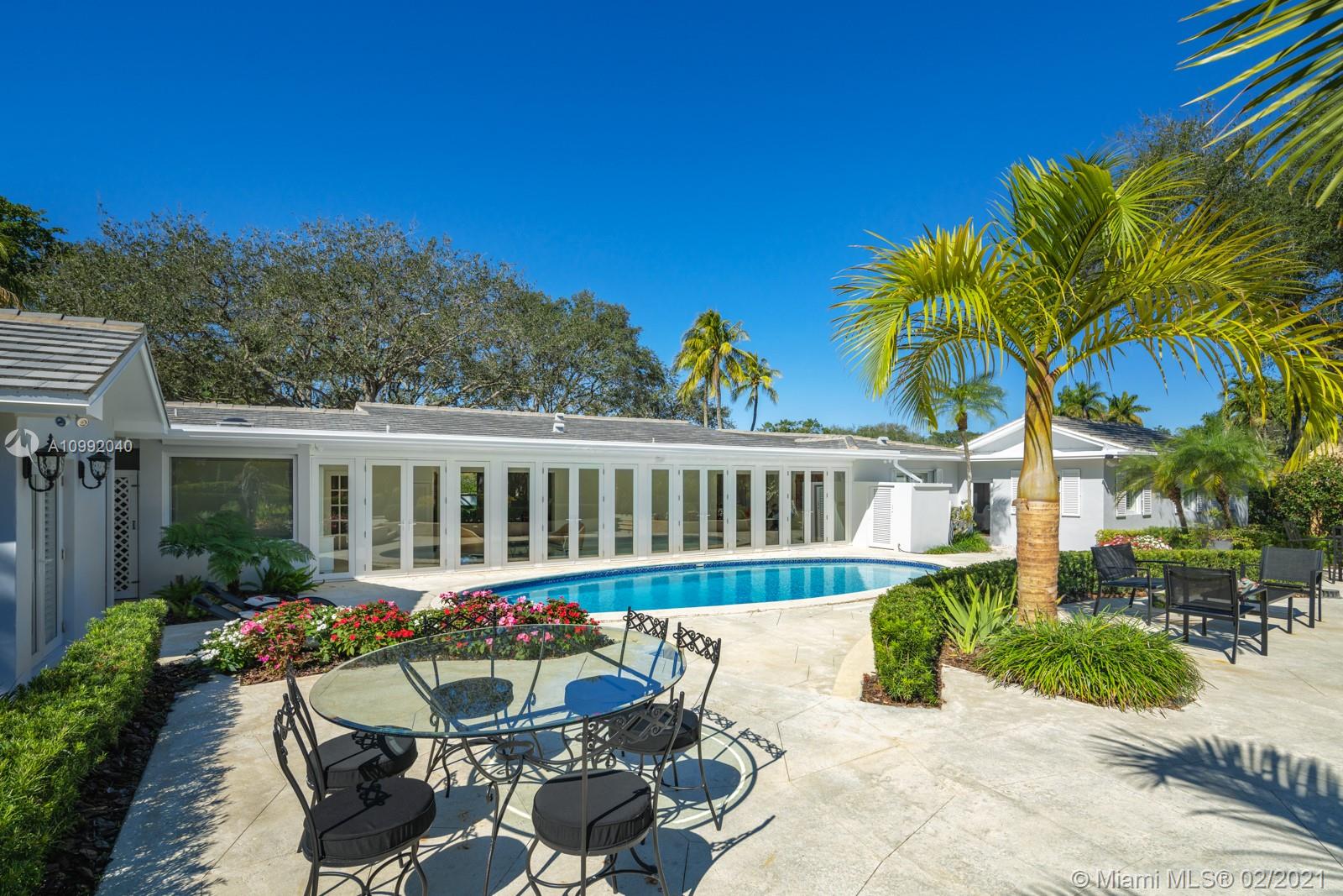 This pristine and gated home is located on an acre of land in Pinecrest. As you enter the property the driveway is lined with Oak trees and lush landscaping. This stunning home features a chef’s kitchen, expansive Florida room with incredible backyard views, family room with tons of storage and a gym/office with its own entrance. The spacious master bedroom has abundant closet space, a sitting room with French doors that lead to the beautiful backyard and a newly remodeled spa-like master bath. The expansive backyard has a sparking pool and gorgeous landscaping with a covered patio area with lighting and fans perfect for outdoor dining. The home has surround sound speakers inside and out, hurricane impact windows and doors, security system with cameras, 2 car garage and more!