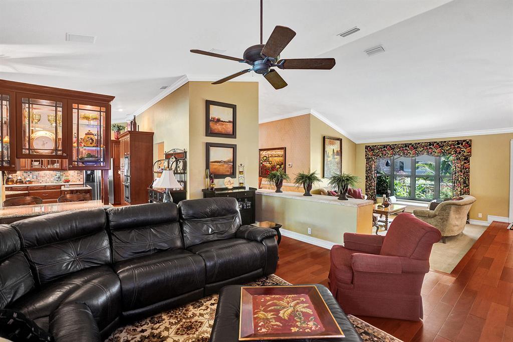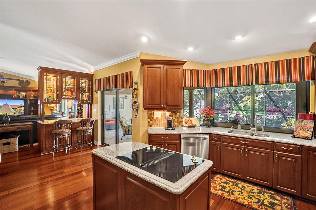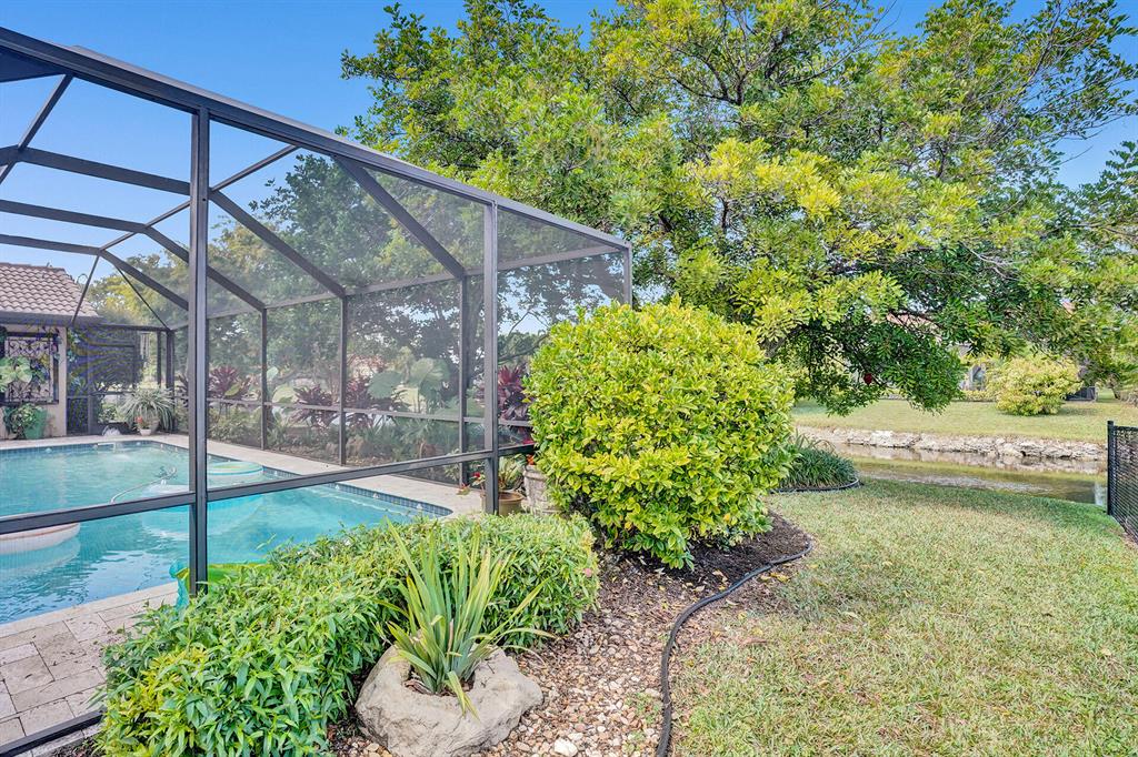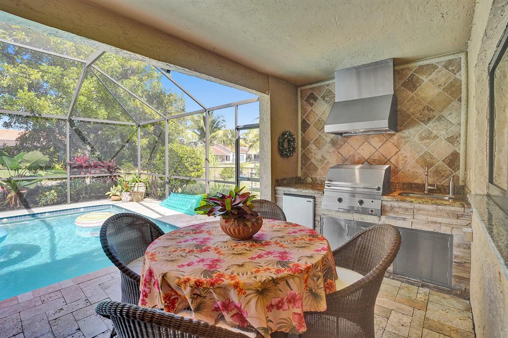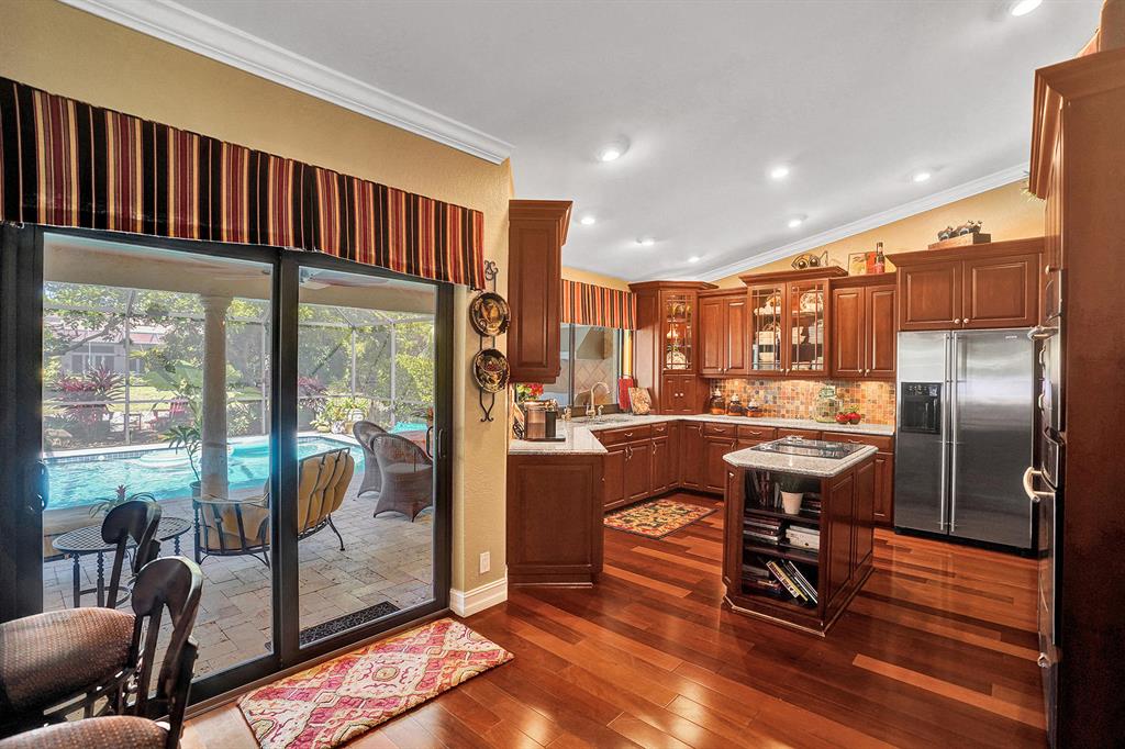 Don't miss your chance to live in the highly sought after Pine Ridge. This home has it all starting with a large oversized open concept living space that has Brazilian Cherry wood floors throughout the living areas. A gourmet cook dream kitchen with custom built cabinets granite counters and Jenn-Aire appliances. Hurricane impact windows & doors that open onto a large screened in patio and pool with stunning travertine pavers & custom built Summer Kitchen. Need time to relax? Enjoy the amazing garden areas in the front & back of the home ! Schedule your appointment today before it's gone!