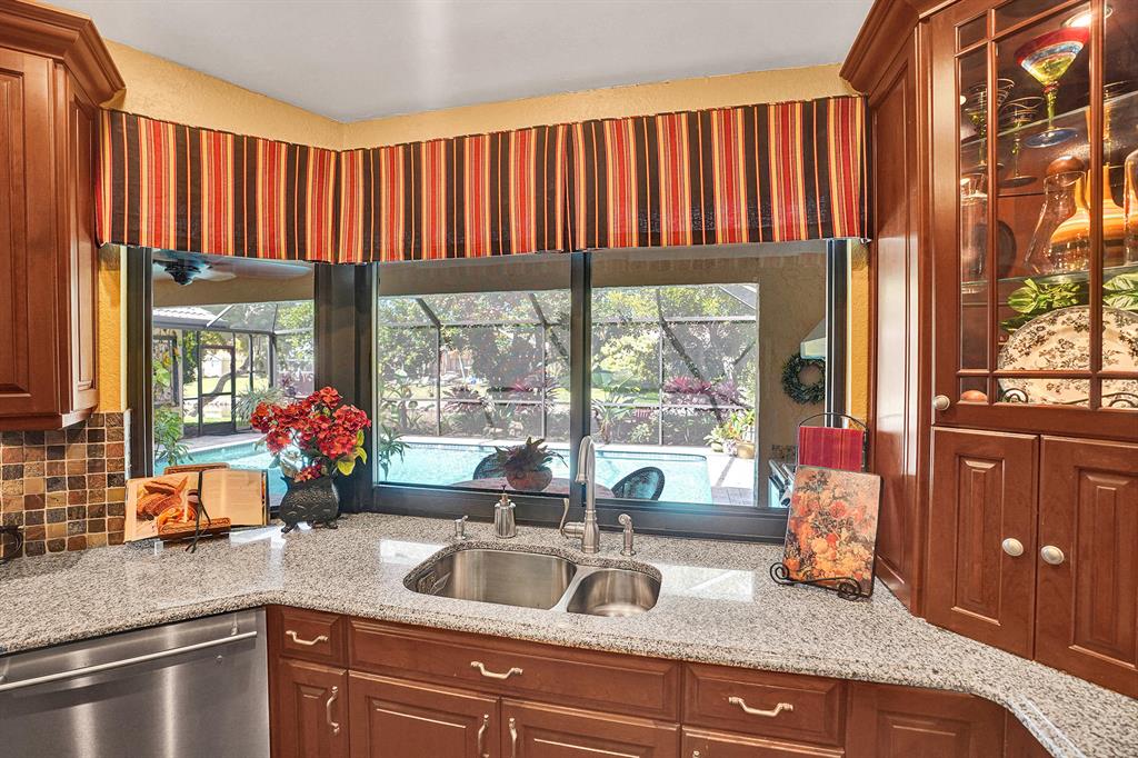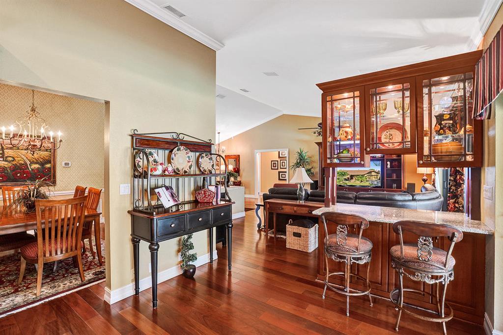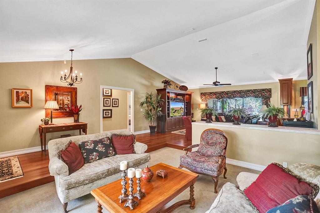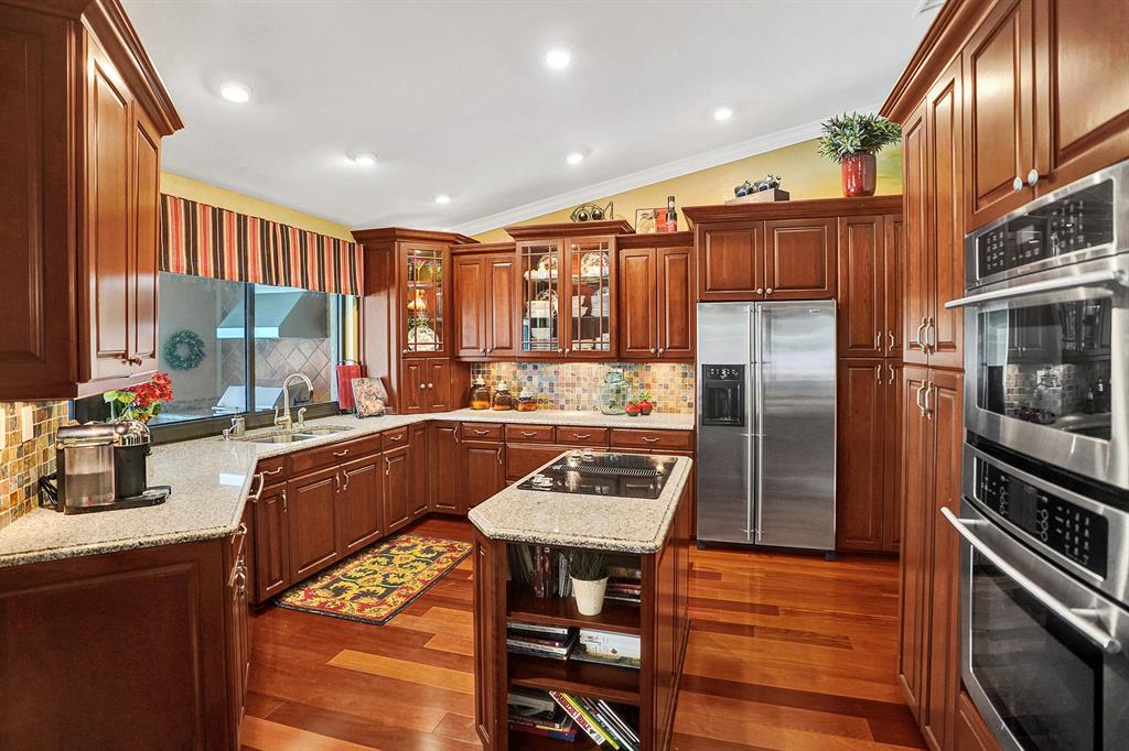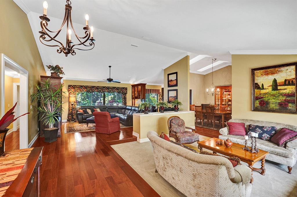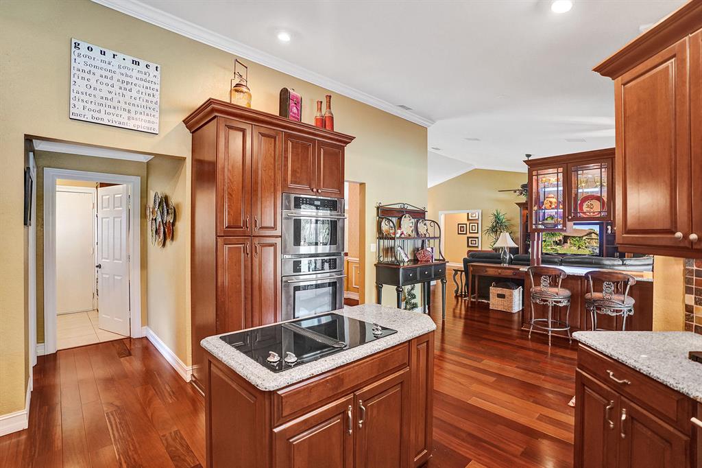 Don't miss your chance to live in the highly sought after Pine Ridge. This home has it all starting with a large oversized open concept living space that has Brazilian Cherry wood floors throughout the living areas. A gourmet cook dream kitchen with custom built cabinets granite counters and Jenn-Aire appliances. Hurricane impact windows & doors that open onto a large screened in patio and pool with stunning travertine pavers & custom built Summer Kitchen. Need time to relax? Enjoy the amazing garden areas in the front & back of the home ! Schedule your appointment today before it's gone!