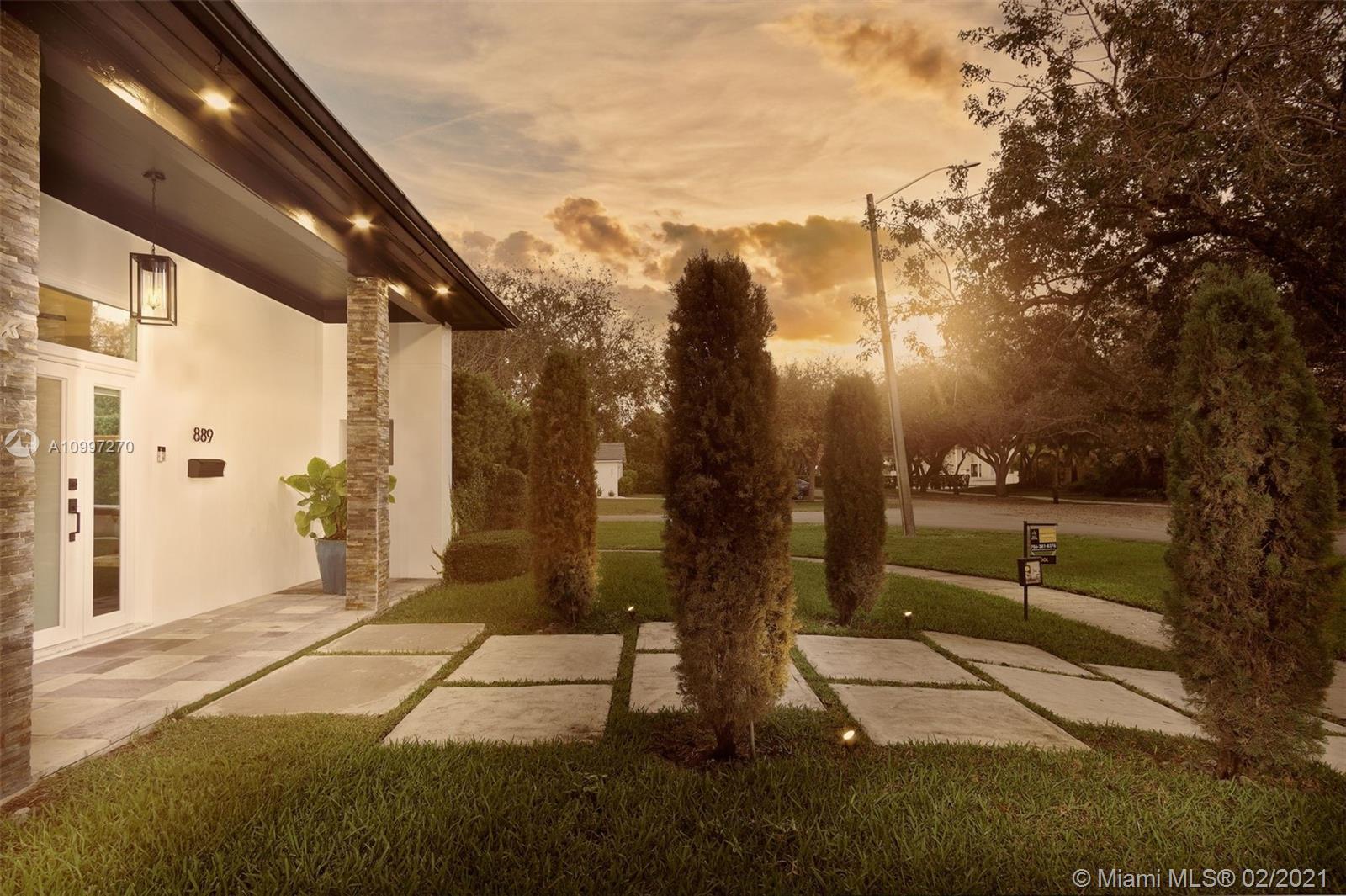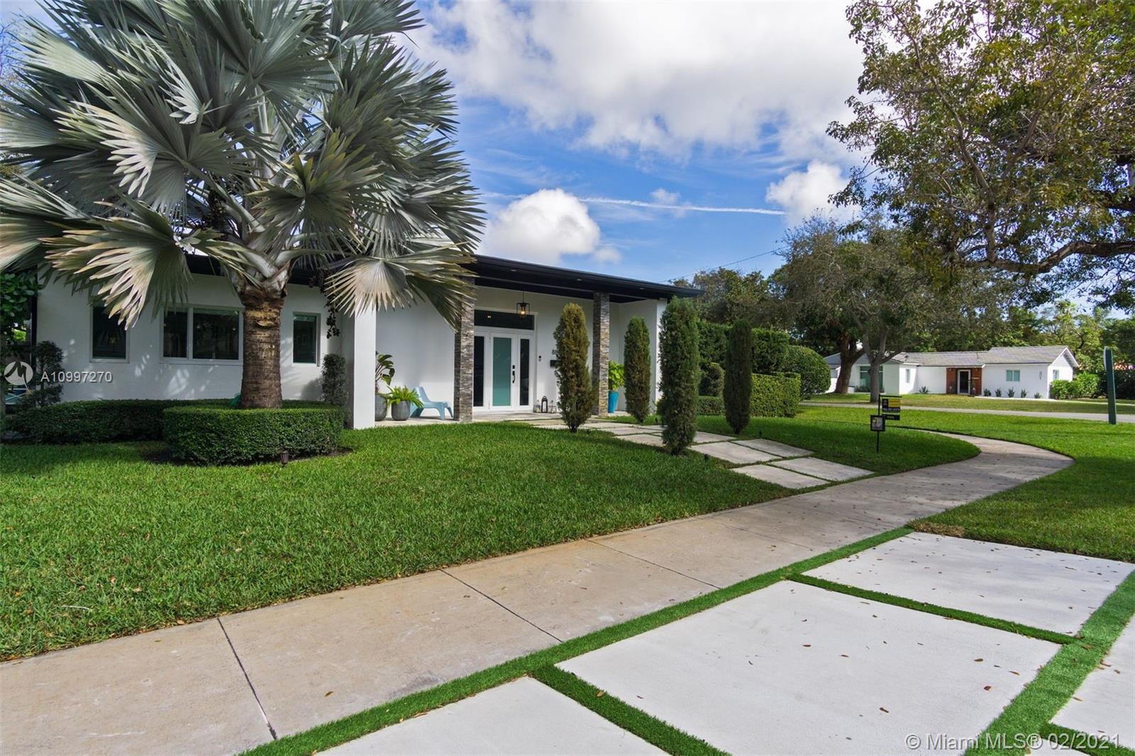 CORNER LOT...4 BEDROOM+4 FULL BATH, MID CENTURY MODERN HOME IN MIAMI SHORES. OPEN CONCEPT LIVING SPACES WITH HIGH CEILINGS-ALL SURROUNDING DELIGHTFUL HEATED POOL & SPA. PRIVATE YARD ENCLOSED WITH BEAUTIFULLY MANICURED HEDGES & MOSQUITO SPRAY SYSTEM... GREAT FOR ENTERTAINING! EAT-IN KITCHEN...STAINLESS STEEL APPLIANCES, QUARTZITE COUNTER TOPS WITH LED LIGHTING. BIG LIVING ROOM & DINING ROOM...GREAT NATURAL LIGHT. MASTER BEDROOM HAS WALK-IN CLOSET, EN-SUITE BATHROOM WITH SHOWER & JACUZZI TUB. 4TH BEDROOM COULD BE USED AS IN LAW QUARTERS, DEN/OFFICE. 1 CAR GARAGE/STORAGE. NEWER ROOF, IMPACT WINDOWS & DOORS. FRESHLY PAINTED EXTERIOR WITH SMART PHONE OPERATED LED RECESS LIGHTS. BRAND NEW DRIVEWAY. WALK TO COUNTRY CLUB, REC-CENTER, GOLF COURSE, AQUATIC CENTER & THE BAY.