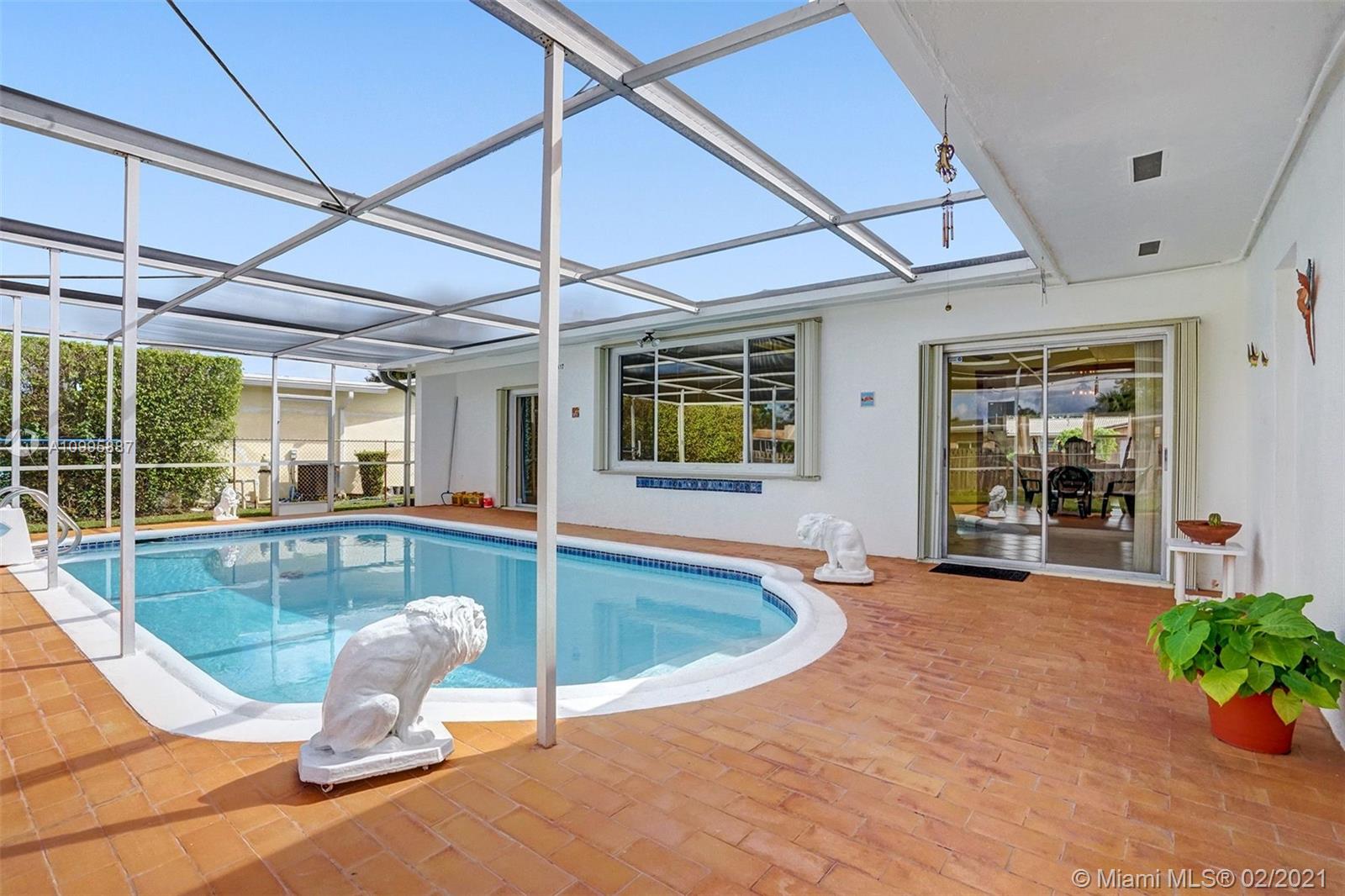 LIFETIME HOME IN A BEAUTIFUL SETTING! Great location in HOLLYWOOD HILLS, surrounded by homes with beautiful lawns and delivering high walkability scores. This beauty features 3 beds/2 baths, formal living room, formal dinning room, 260 SQFT family room, screened-in pool, open porch and one car garage. Circular driveway providing ample parking space for gatherings. Great size master bedroom with walk-in closet and large master bathroom. Storm ready with accordion shutters, underground utilities and impact windows in the living room area. In addition, 2017 non-impact windows, 2020 pool re-surfaced and equipment, 2020 washer, 2020 dishwasher, 2006 tile roof, 2014 flat roof, stamp concrete pool deck, CITY SEWER, security system and A/C under service contract. DON’T DREAM A DREAM, BUY ONE!