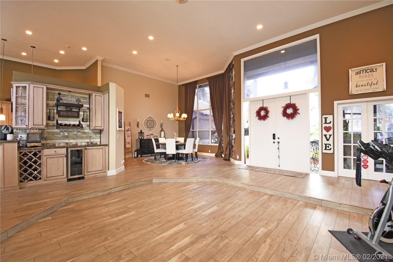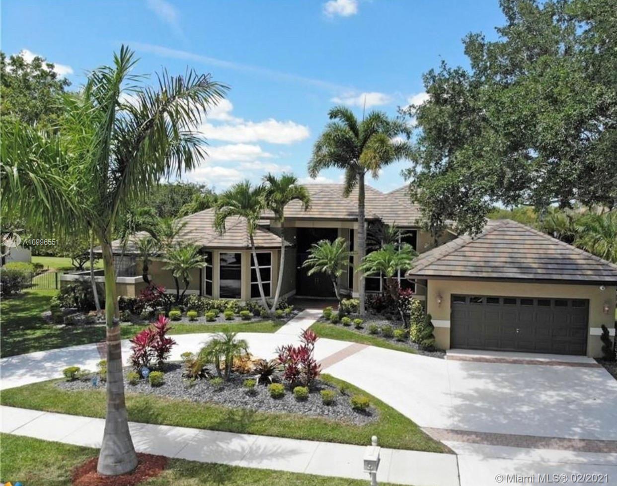 Gorgeous home in the heart of Weston's Palm Island. This spacious 4 bedroom 3 bathroom palace with 3 way split floor plan that screams pride of ownership. Large picture windows allows tons of natural light to shine in. Beautiful separate office with useful built-in cabinetry and sunken living room area with wet bar. Kitchen features wood cabinets/tile back-splash/granite/stainless appliances and useful cooking island for gourmet creations.Tremendous family room/vaulted ceilings and newer roof is only 2 yrs old young. 2 car garage. Sparkling pool area with covered patio, 3 ceiling fans and partial water view of the lake from back yard make this gem a special place to call home. Secure guard gated community with walking distance to A rated schools. Call for private screenings.