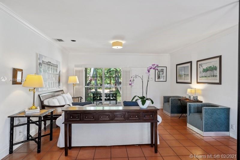 Amazing opportunity to live on prestigious La Gorce Golf Course. Gorgeous views and walking distance to Country Club. This three bedroom, three bathroom home has an open floor plan with abundant natural light. Large galley kitchen with wood custom cabinetry, granite countertops and Thermador commercial oven, stainless steel appliances and snack counter. Charming spaces with wonderful views enjoyed from almost every room. Patio area with trellis perfect for entertaining. Great neighborhood close to shops, restaurants, beaches, hospital, parks and A+ schools.