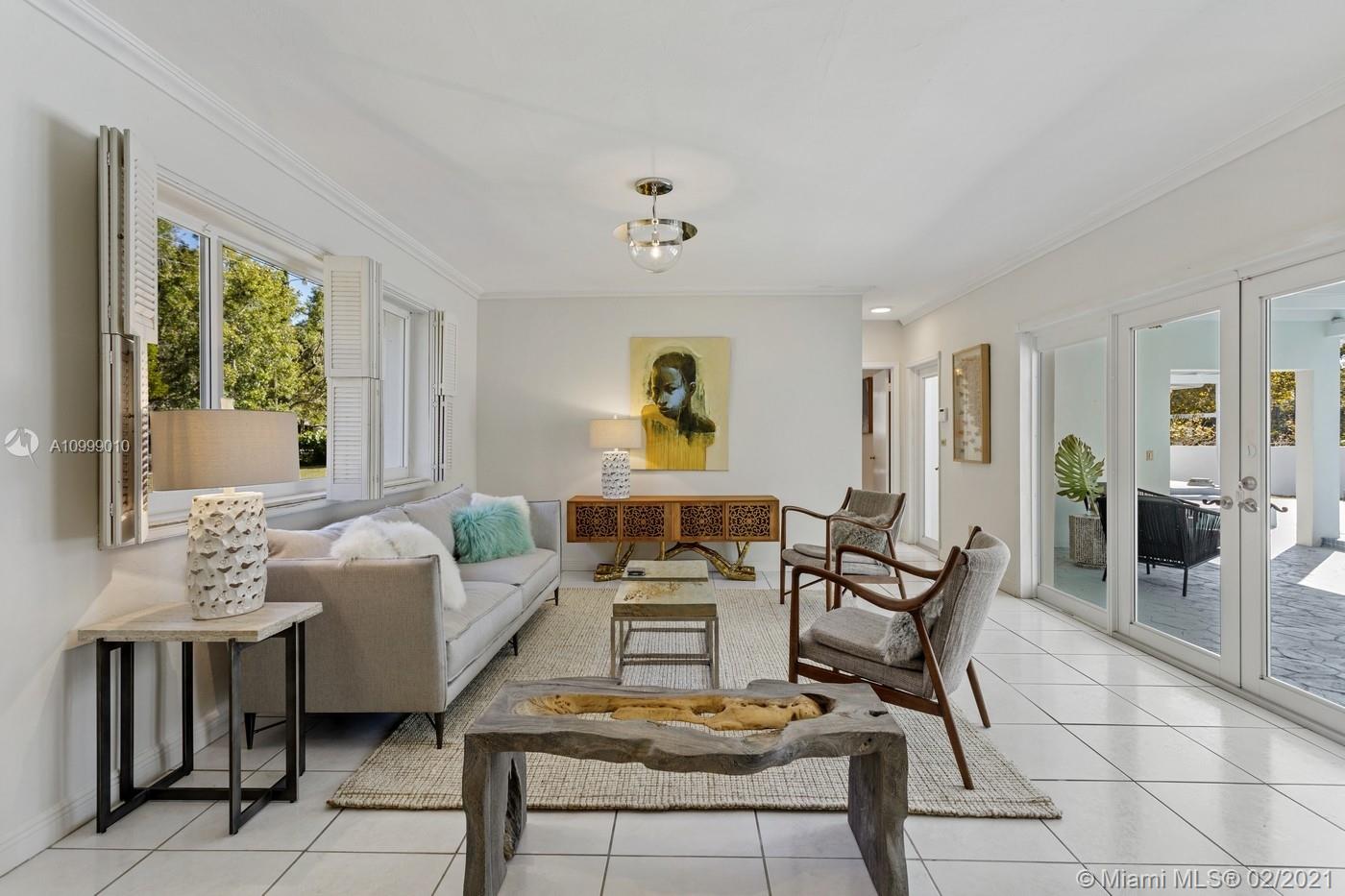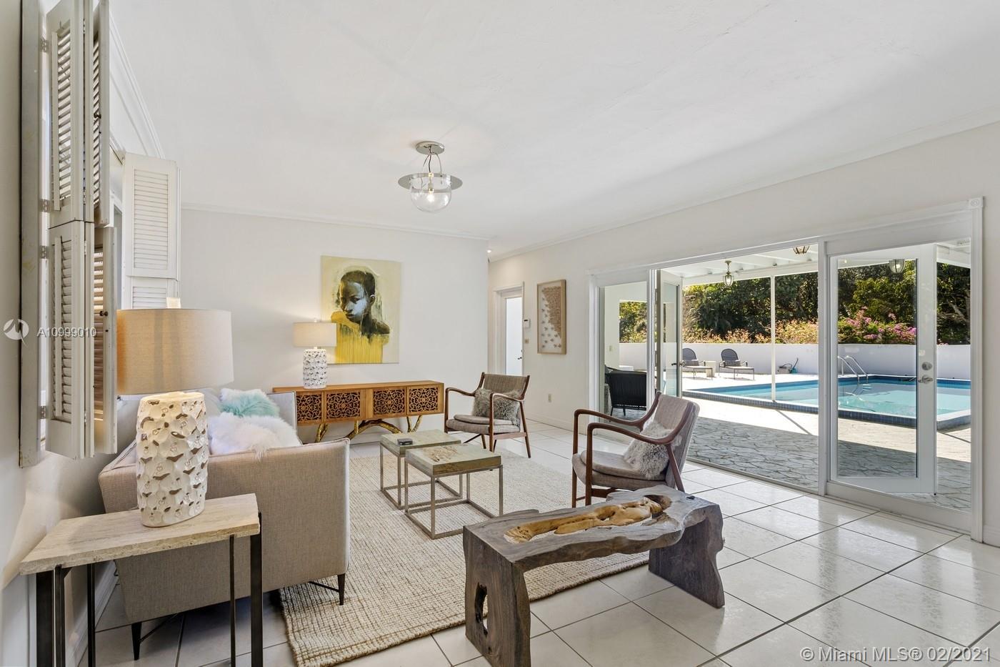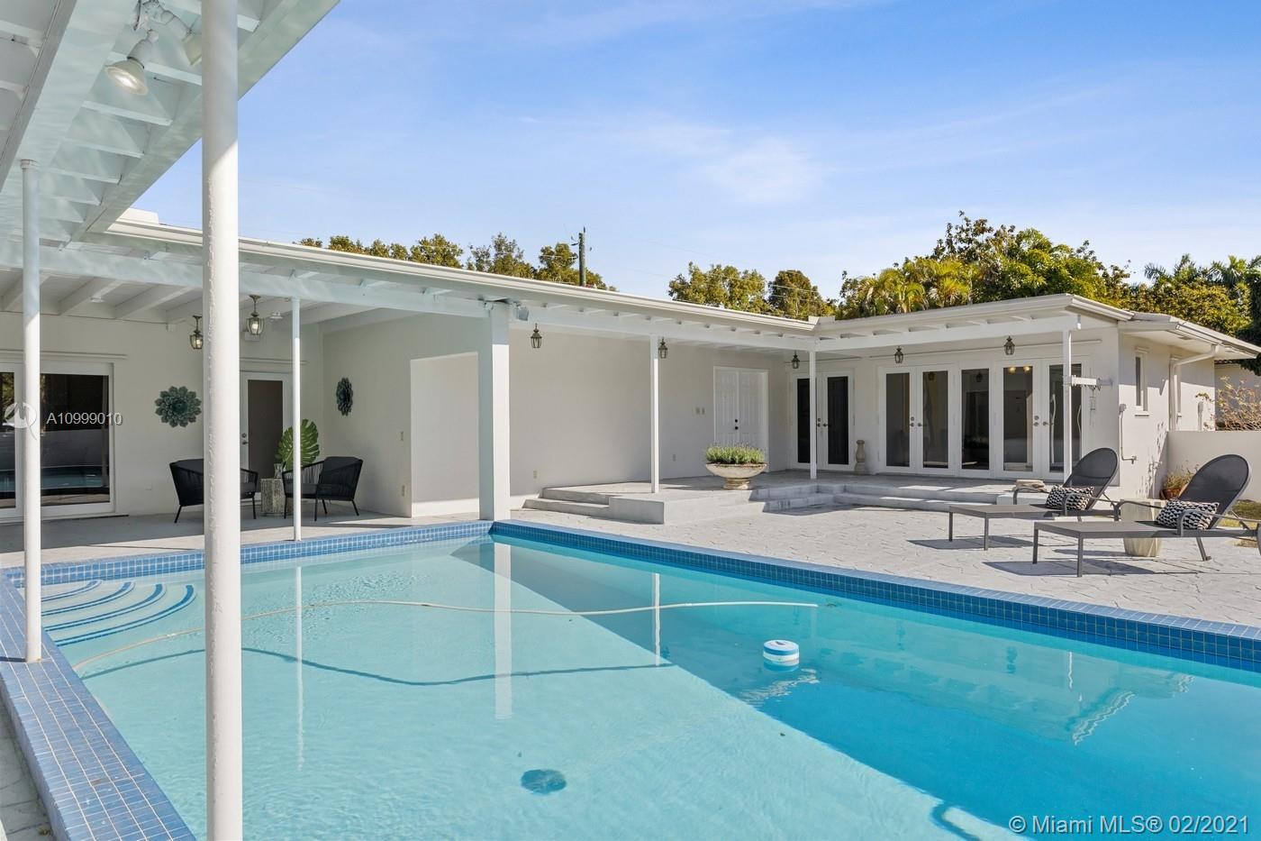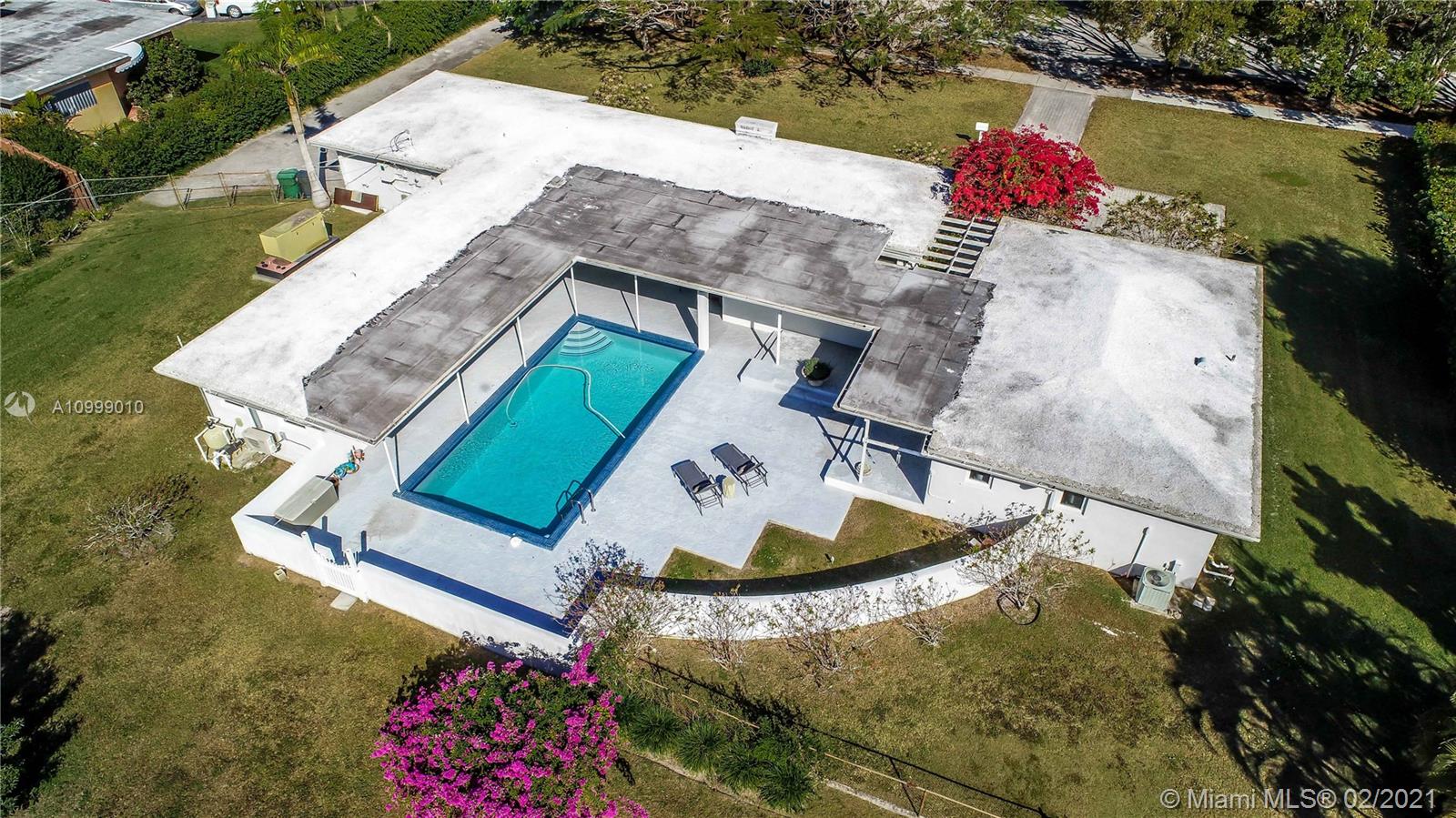 Beautifully Positioned on over 38000 sq.ft. of land, this throwback MIMO Style home will captivate your imagination. A Double door entry leads to a private courtyard embraced by a Cozy Casita and an “L” shaped Main House, each are focused on the pool patio with views from most rooms. An open-air exterior breezeway connects the two structures while providing ample opportunity for true indoor/outdoor living. You will find this “Courtyard Home” warm, inviting & sumptuously private. The main house with a split bedroom plan, has 2 bedrooms 2 baths and an eat-in Kitchen. The Casita is complete with a living room, a separate bedroom and a full bathroom. There is a 2 car side-entry garage, impact windows & doors & a whole house generator. Architects, Developers and creatives will love this home!