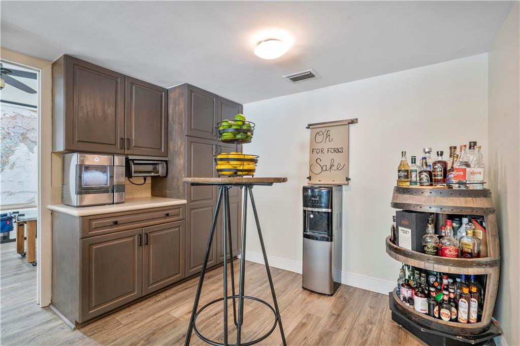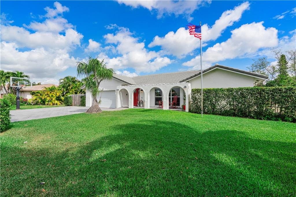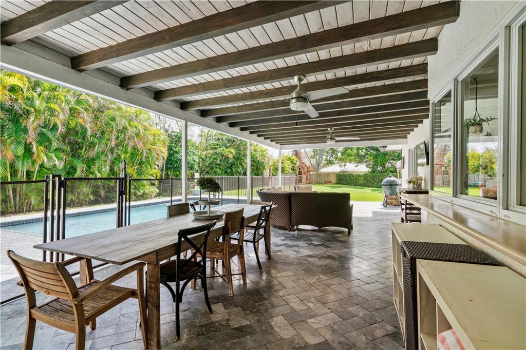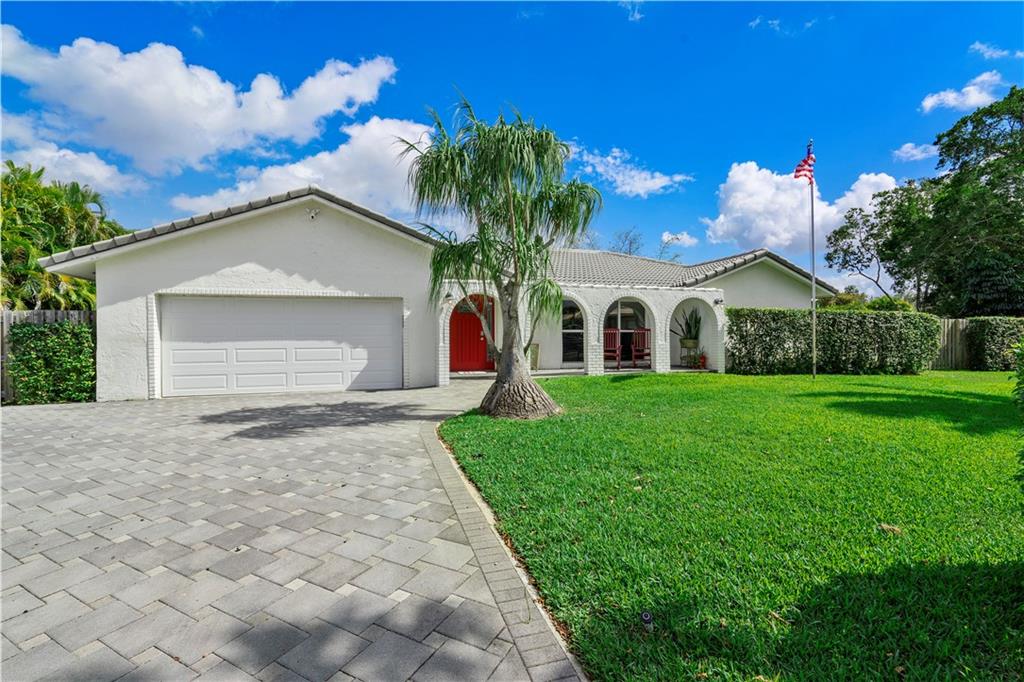 NO HOA! - great schools - cul-de-sac, turn-key 5 bedroom 3 full bath with a beautiful Southern Charm. This home is fully renovated with new flooring throughout, custom closets in all bedrooms, hurricane impact windows and doors throughout, 2015 ac unit, updated kitchen with wood cabinets, corian countertops with a pass through to the patio and stainless steel appliances, huge covered patio with a brand new heated salt water pool with sun shelf and expanded marble herringbone patterned deck, expanded 8 car paver driveway and front porch on nearly a half acre fully fenced and fully private lot! Use it for a wiffle ball field or any sport, a children's play area, etc... Storage shed, child pool gate, children's swing set and garage refrigerator are included in the sale. See Broker Remarks