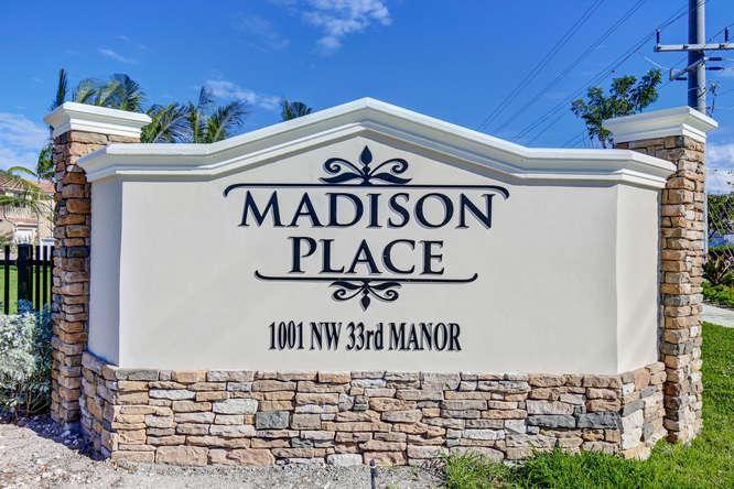 Beautifully kept Mediterranean style townhome in the gated community of Madison Place. Spacious 3/2/1 newer construction built by D.R. Horton in 2017. Upgrades include quartz counter tops, designer cabinetry, stainless steel appliance package, impact glass windows, 9' ceilings, and a low HOA of $98 per month! Madison Place features a pool and cabana, gazebo and kiddies tot lot. This beautiful townhome is a great value in the Pompano Beach area with easy access to highways and shopping.