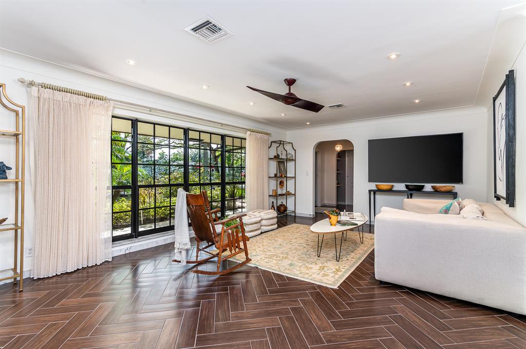 Nestled by majestic oak trees on one of the largest lots in Historic Old Floresta sits this renovated 4 bedroom plus office pool home basking in an abundance of natural light. Combining both indoor and outdoor living with warm textural elements this timeless East Boca jewel features 4,426 total square feet all on one level. Throughout this open and airy floor plan you will find porcelain tile in living areas, a new gourmet kitchen complete with center island, granite counter tops, Viking range, and a built-in Miele coffee system. The master suite set amongst the manicured gardens has been graciously expanded to include a large walk-in closet and full bath adorned with Italian marble, soaking tub and glass encased shower. Enjoy quiet moments or easy entertaining all year long by the heated