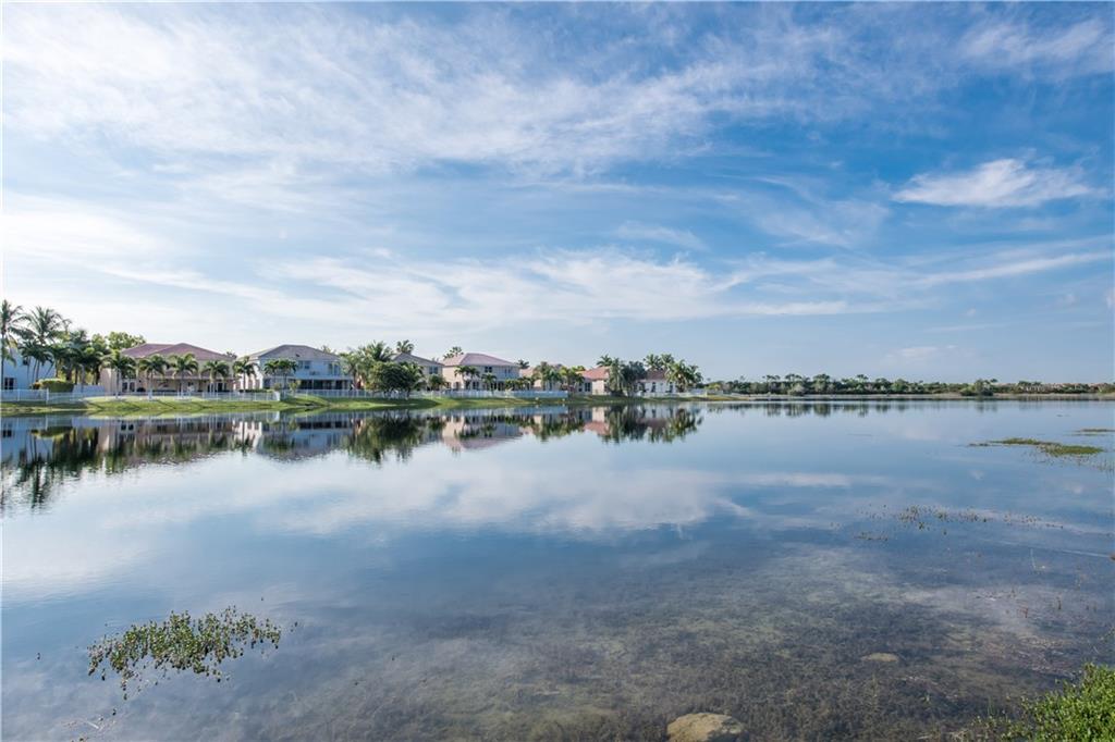 Magnificent floor plan. Upgraded kitchen with granite countertops and SS appliances overlooking a great view of the amazing new oversized pool and lake. Big master bedroom with sitting area and big balcony. New laminate wood floors, fenced backyard, accordion shutters, solar water heater, new A/C units. Association fee includes basic cable,internet and gated community.