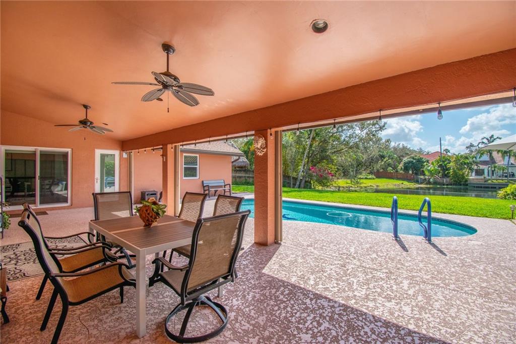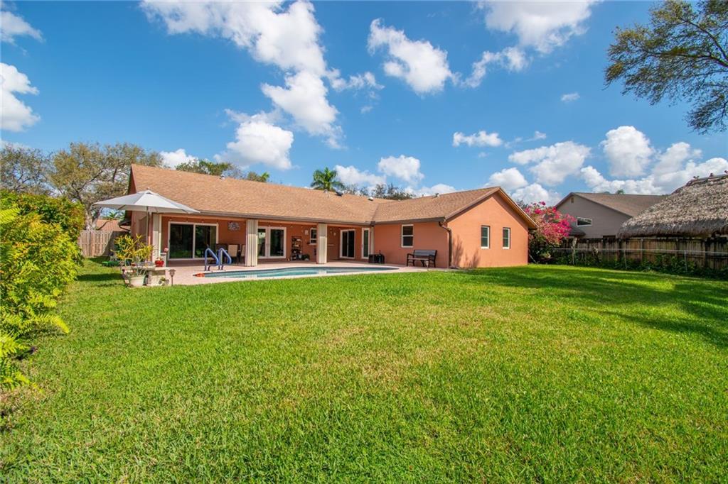 Spectacular Ranch House in the sought after neighborhood of Rock Creek with a private cul-de-sac location, large patio, pool and beautiful lake views! This lovely red brick 4 bedrooms, 3 baths and 2 car garage with circular driveway features over 14,000 SF Lot, offering plenty of space for entertaining outdoors and spacious covered patio which you can conveniently access from the master bedroom, family room or dining room, also offers a pass through window from the kitchen. Beautiful updated kitchen with wood cabinets, nice counters tops, tile backsplash & s/s appliances. Hurricane double glass entry doors. All windows & doors upgraded to HIGH IMPACT. Newer TRANE AC. Central vacuum, Laundry room , 3 zone sprinkler. Water softener system. Fully fenced yard. Low HOA and A+ rated schools!