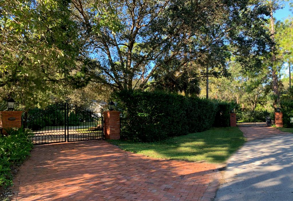 Welcome to Caloosa, Palm Beach Garden's Premier Equestrian Community. Old Chicago brick drive takes you through two ornamental gates which lead to a beautifully treed 5.15 acre lot. Tucked back off a cul d'sac shared with one other house, the completely hedged parameter of the property provides the ultimate in privacy and a natural sanctuary with over 50 native trees including 15 mature live and laurel oaks draped with Spanish moss, Slash Pines, Sabal Palms, Red Cedars and a fragrant butterfly garden. A birders paradise from owls to giant sand cranes. This spacious and light-filled 4 bedroom, 2 bath home features a 400 SF Office/Bedroom with private entry that can easily be converted into a guest suite or perfect as a home office for remote working.