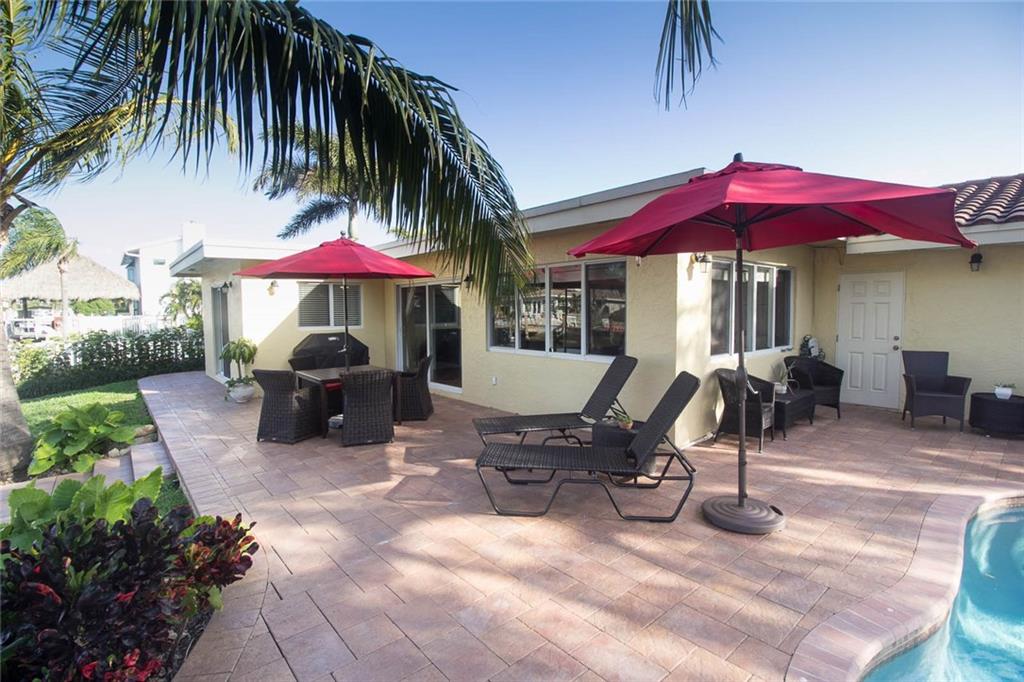 Private 75 ft waterfront home with 4 beds / 3 baths. Split Layout. Heated pool/spa. New seawall cap, pilings, and dock. No fixed bridges. Just Minutes to Hillsboro inlet. Impact windows and doors. Spacious floor plan. Large bedrooms. Master bedroom features: walk-in closets, ensuite bath with shower and separate tub. Tile floors throughout common areas, carpet in bedrooms. Home also has a great guest bedroom with private bath (currently setup as home office). Back yard is a wonderful oasis with large patio and spa featuring a waterfall to a free-form pool. Lush landscaping. Spacious family room and separate dining area. Wonderful natural light. Home has been properly maintained and cared for by current owners. Convenient location. Only minutes to beach, dining or downtown Fort Lauderdale.