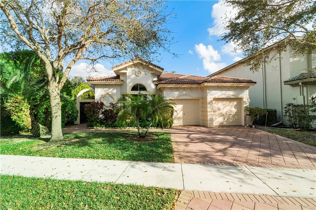 Highly sought out 1 story home in Heron Bay, unique lot w/ neighbors only on 1 side and rare Model, . .Rod iron gate entry, leading to front door, extra large private screened patio with fountain or can just be decorative w/plants, 4 bdrms, 3 baths, Mahogany wood in 2nd bdrm with en-suite bath, lots of windows overlooking patio, beautiful Italian tile, living rm has a working fireplace, shutters, garage has epoxy flooring, Parkland Schools and A rated, comm has 2 club houses, gym in north club house, tennis courts, biking etc, lots of activites.. Showing to start Sat. 2/20