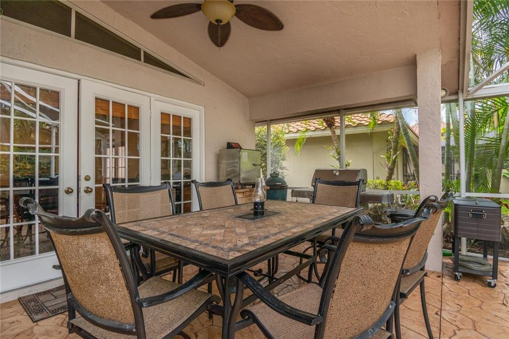 Bright and beautiful tree lined streets as you enter the gated neighborhood of Captiva Cay to this single story 3 bed 3 bath sun filled haven with a 2 car garage. Private updated kitchen w/ an island. Granite counters, wood cabinets, wine fridge, SS appliances and plenty of storage that overflows into the dining room which could be perfect as a family room, entertainment room, class room endless ideas. Sizable family room with French doors direct you to the private screened patio perfect for entertaining. Deluxe master suite has a walk in closet equipped with built in shelving. Spacious master bath with a separate shower and soaking tub which leads you to a grand private screened patio with plenty of space to sit back, relax and unwind! The perfect place to call home!