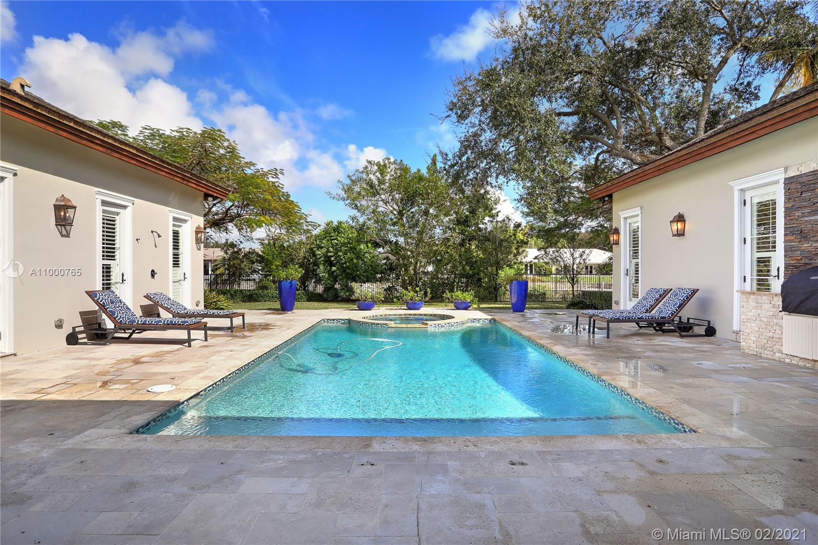 Boating or golf? Take your pick at this stunning, 2007-built & recently renovated home that is on the waterway & across the street from the Riviera golf course. The 6 BR, 5.5 BA property, on walled & gated 24,258 SF lot w/ 150’ on the water, features soaring wood-beamed ceilings, gorgeous finishes, & perfect entertaining spaces. Inside find the stunning formal liv & din rms, casual family rm open to dreamy kitchen, + BR w/ full bath that serves as a den overlooking the water! Outside there is a deep patio, built-in grill, sparkling pool w/ spa, & boathouse w/ huge deck on top! Spacious primary ste w/ beautiful BA & lge closet, separate guest ste, + 3 more ample BRS. Spectacular details abound: generator, mahogany front dr, impact glass, high-end appliances, & more in the best location!