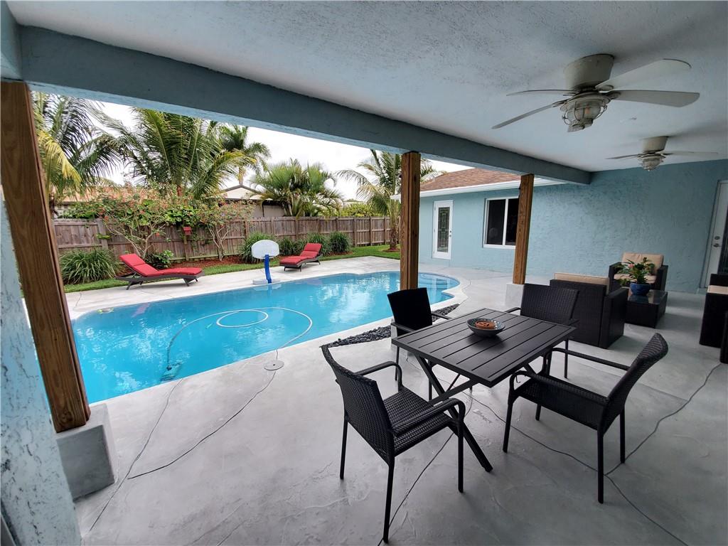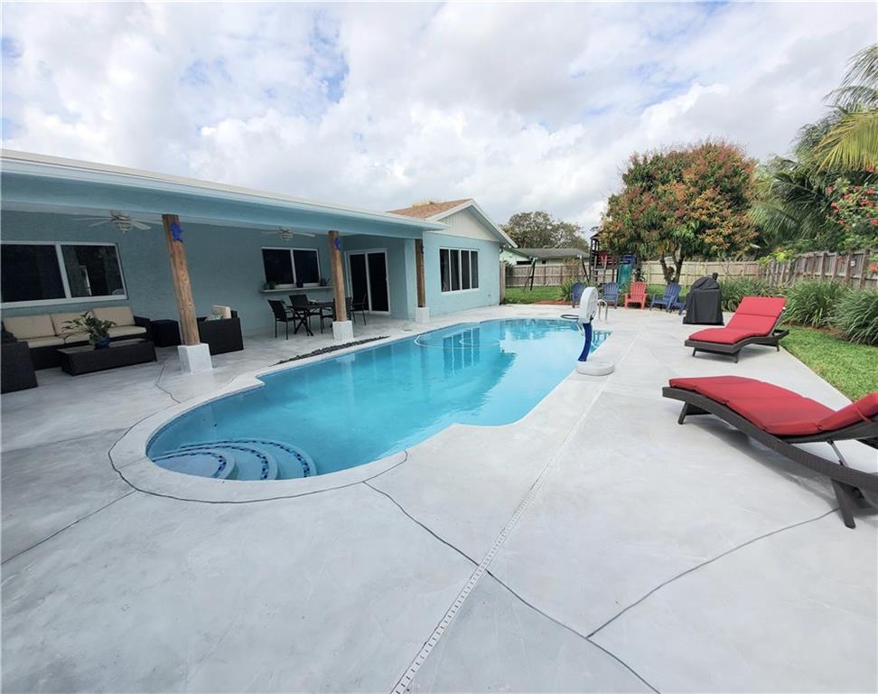 This home is located in very desirable Royal Palm. CUL-DE-SAC location on a nice, mature, tree-lined street. No HOA. Substantially remodeled in and out. IMPACT windows and doors. Bright and open main living area. Too many upgrades to list... even attic insulation added for cooling and energy efficiency. Large lot, fenced yard with plenty of extra room for most any recreational toy. Shed included. Oversized play fort and swing set for the kids and two separate fenced areas for pets off the main yard. Large resurfaced patio and pool. Entertain inside and out. Two mango trees, pineapples and orchids scattered about. Sidewalks throughout the neighborhood. Large park, dog park and schools all within walking distance. Minutes from 595 and everything else Plantation has to offer.
