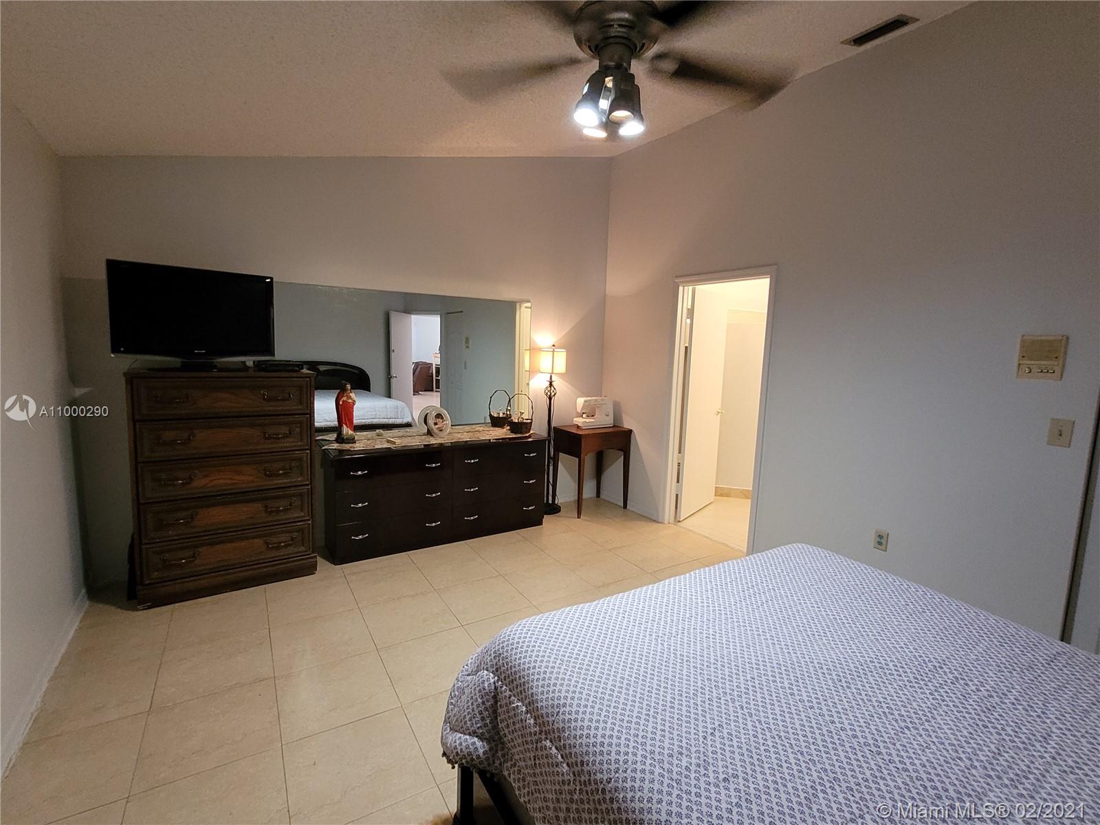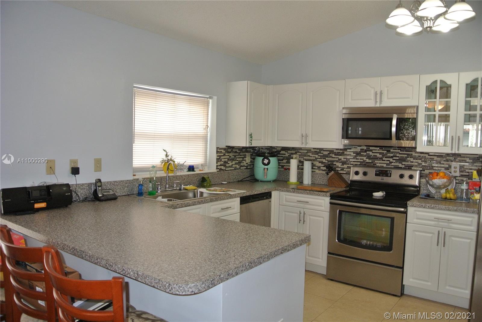 Excellent opportunity awaits, with this lovely home in The Lakes on The Green Community. It is a 3 bedroom, 2 bath house, 2 family rooms, formal living & dining areas, screened porch and 2 car garage. Tile throughout the entire house. The Master Suite, has a walk in closet. Master bathroom has a large shower with sliding glass doors, his & hers sink areas. The Kitchen is equipped with stainless steel appliances . This property is located in a gated & security manned community.