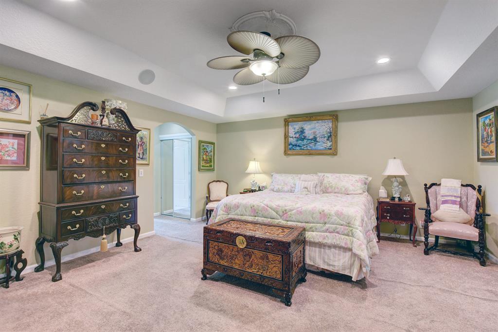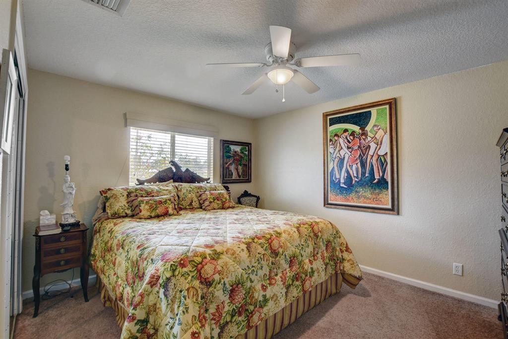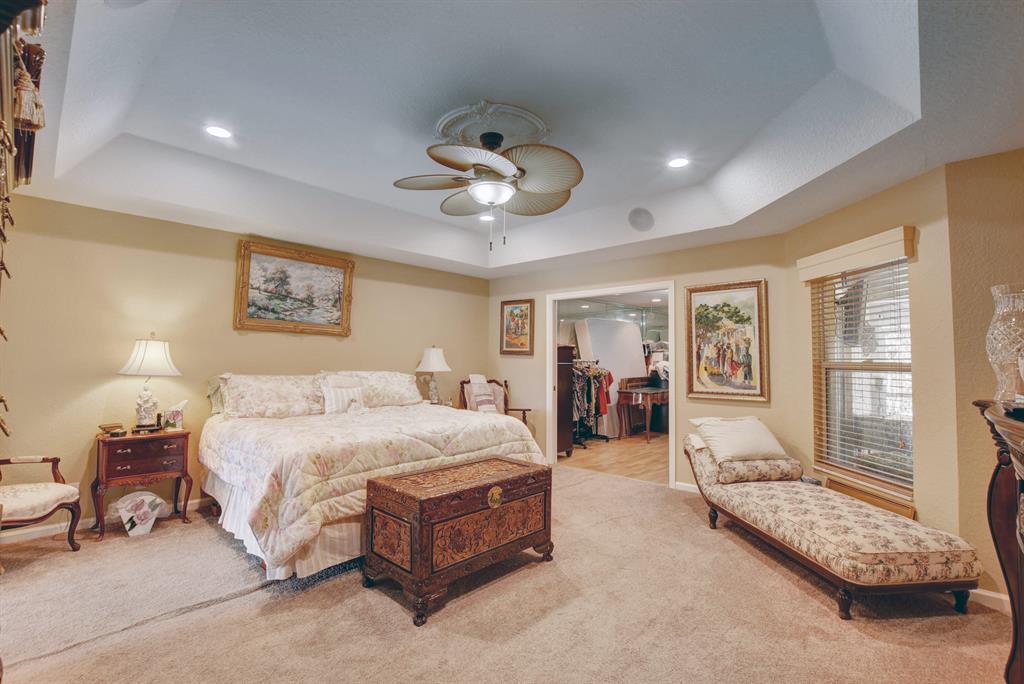 Beautiful custom-built 4-bedroom 3 bath home on lushly landscaped 1.42 acre corner lot bordered by two paved roads.Home features high ceilings with recessed lights, surround sound inside and outside,formal living and dining rooms and large master sitting room. Double etched glass entry leads to an open floor plan, kitchen with granite counters and stainless steel appliances, updated bathrooms and fans in all rooms.House has surveillance cameras and exterior security lights. Domestic well has under 1 year old pump and water softener, sprinklers are on a separate well, New A/C Nov 2020 Large enclosed rear patio overlooks the garden and the private backyard with several fruit trees and a much needed utility shed.Furniture negotiable.Two light fixtures DO NOT CONVEY. NO MORE SHOWINGS 2/21